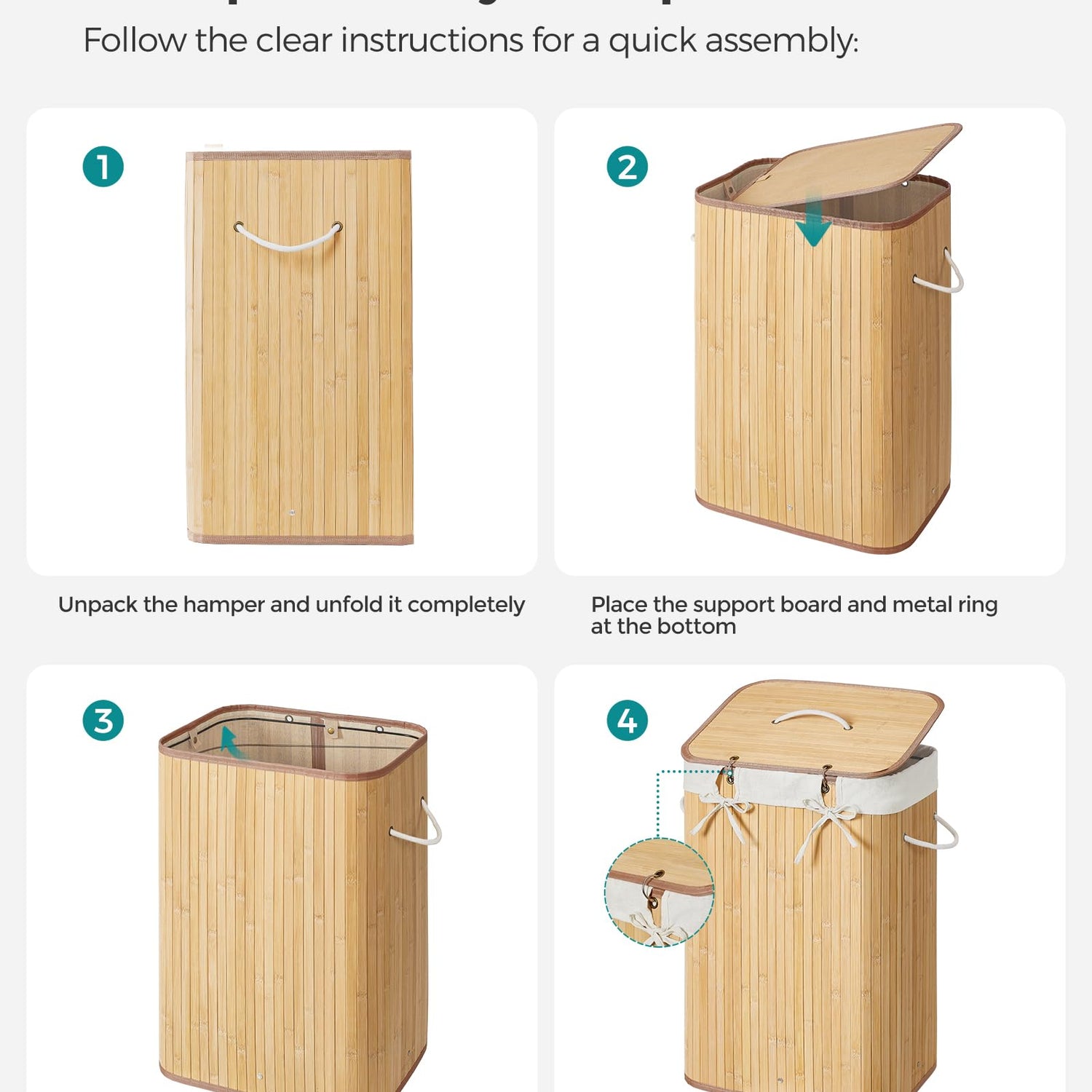 - [Easy to Assemble, Easy to Transport] Thanks to the simple structure and easy-to-follow instructions, this laundry hamper can be assembled in no time. With the cotton handles on the sides, it can be easily transported