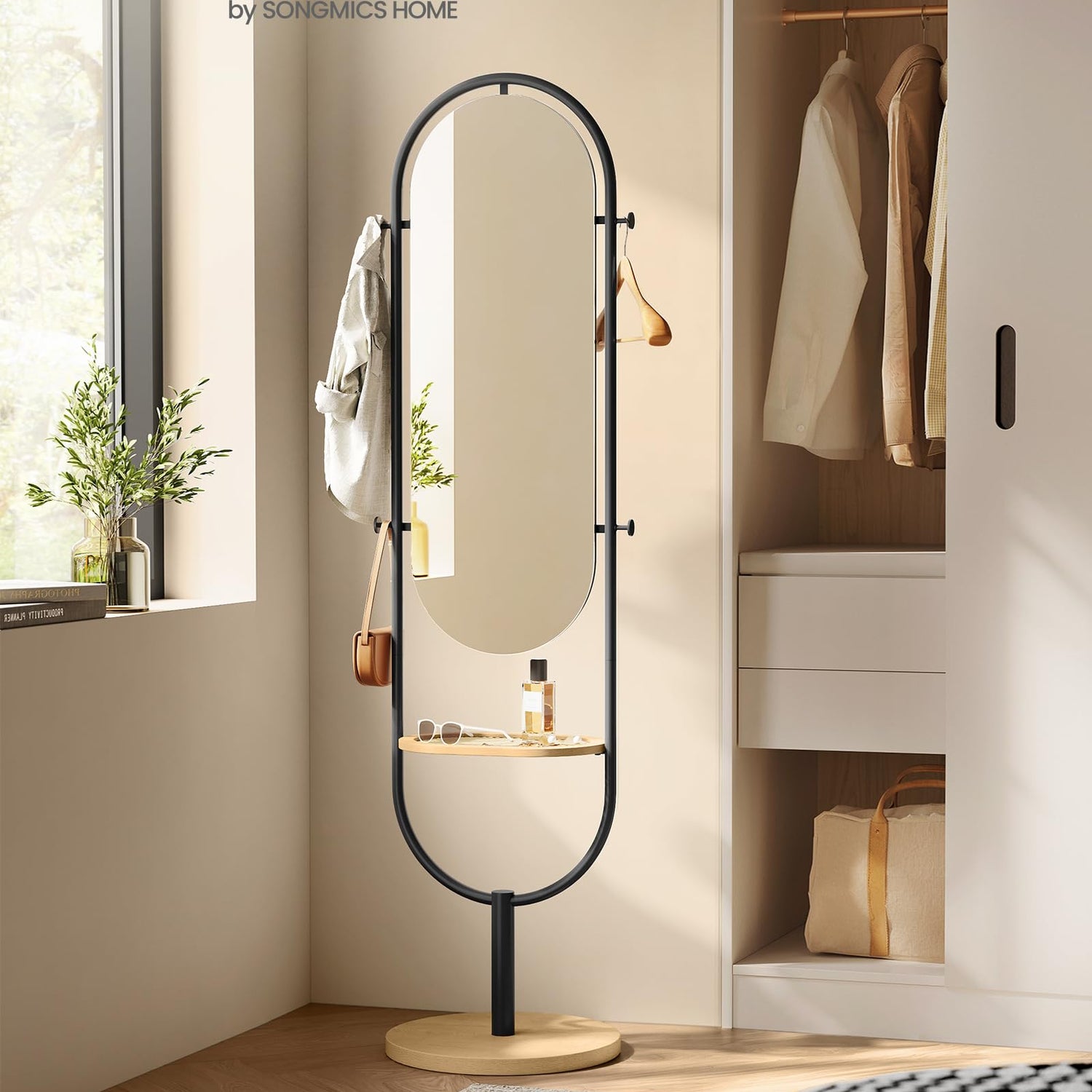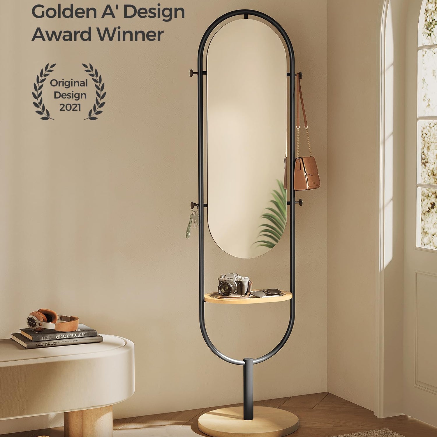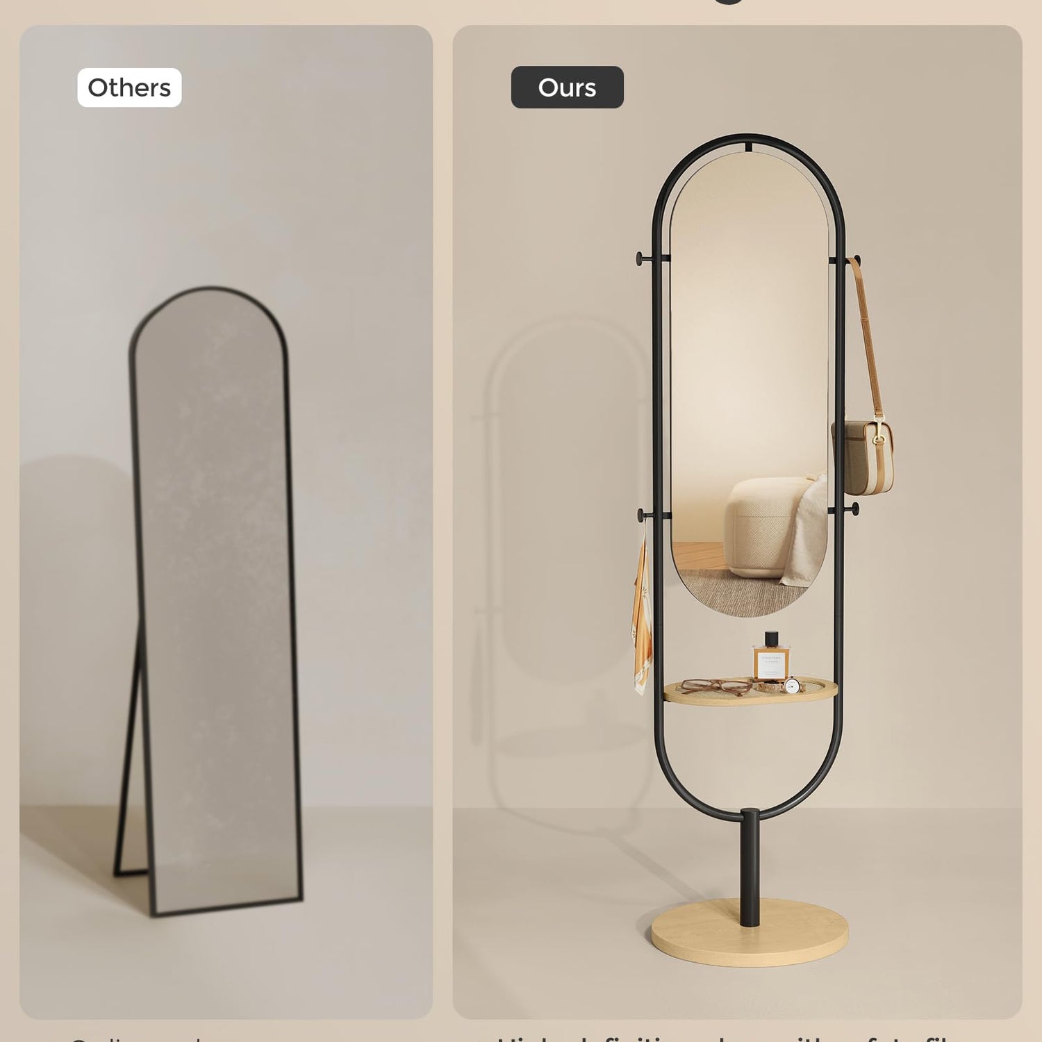 - [3-in-1 Design] This floor mirror offers more than just a stunning reflection—it boasts a tray for organizing your keys and eyeglasses, along with 4 hooks to hold your hats and bags. Experience the fusion of functionality and practicality