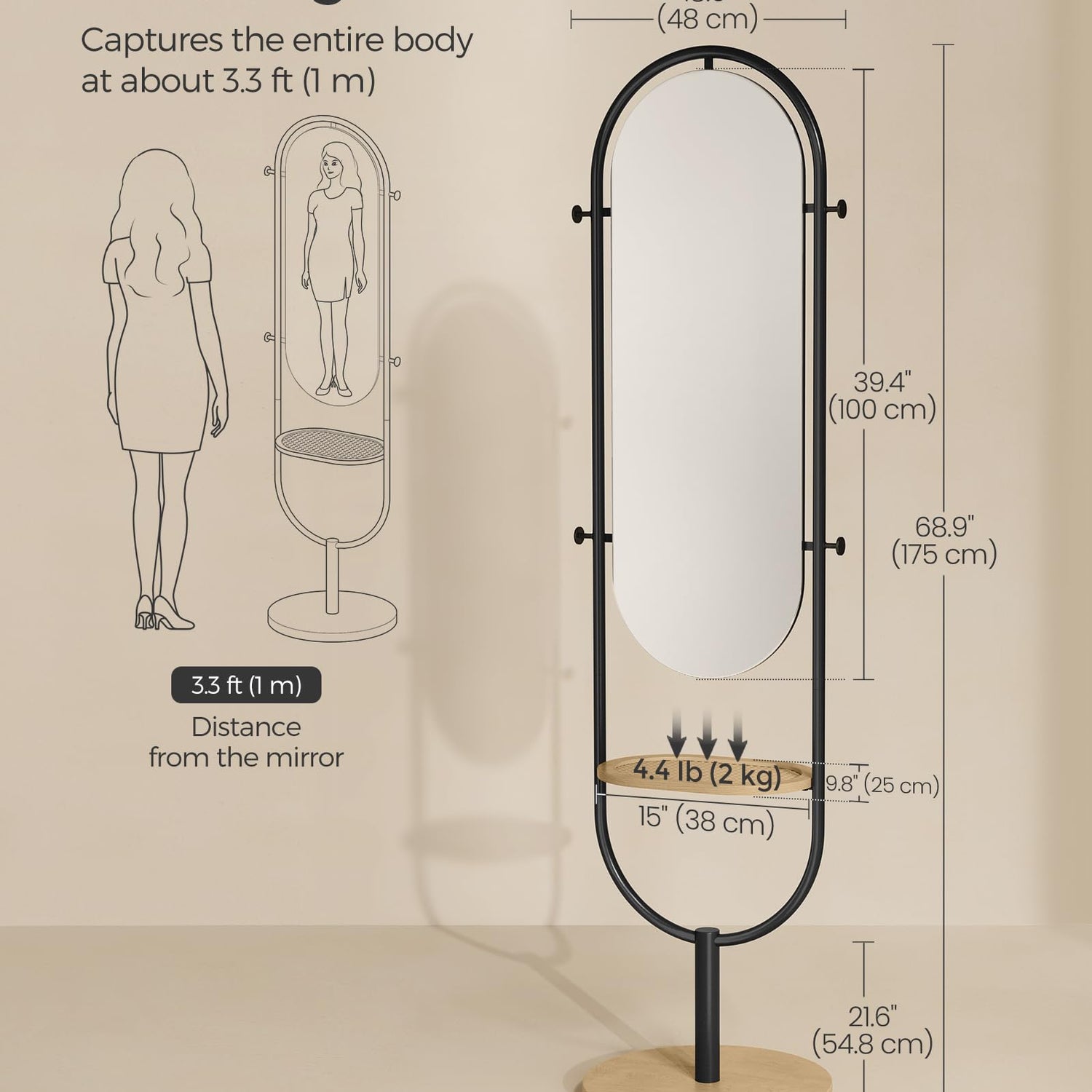 SONGMICS Full-Length Floor Mirror, 3-in-1, Modern Standing Full Body Mirror, Inspired by Original Award-Winning Design, 16.5 x 18.9 x 68.9 Inches, Living Room, Bedroom, Oak Beige and Ink Black