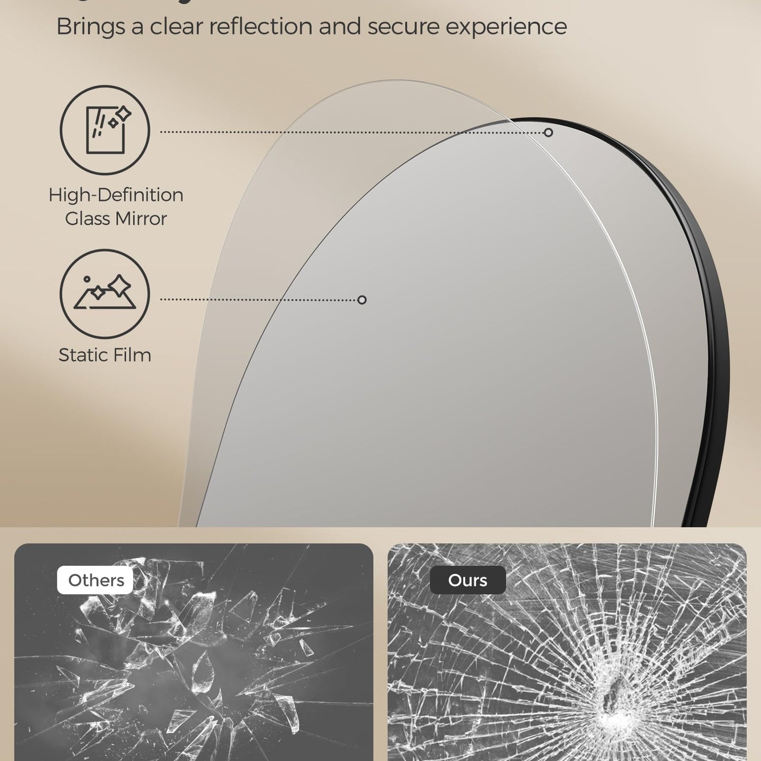 - [Stable and Secure] Featuring a built-in steel frame, the large circular base of the body mirror provides enhanced stability. The anti-tip kit and backed protective film ensure safety for the entire family, providing peace of mind