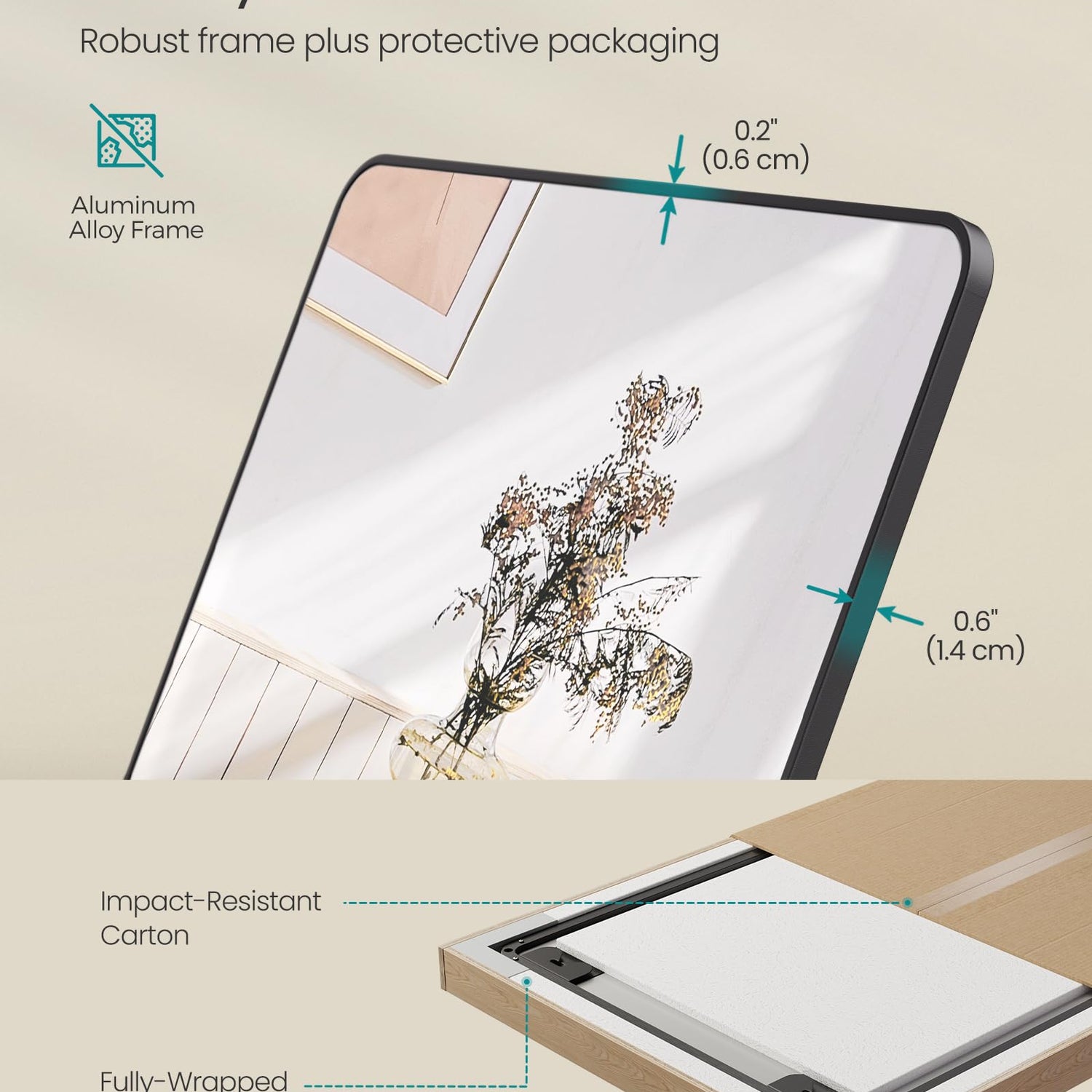 - 【VERSATILE CHARM】Featuring a sleek rectangular frame, this body mirror adds a touch of elegance to your space. It's not just a mirror but also a decorative piece, making it a stylish addition to your bedroom, entryway, living room, and home gym