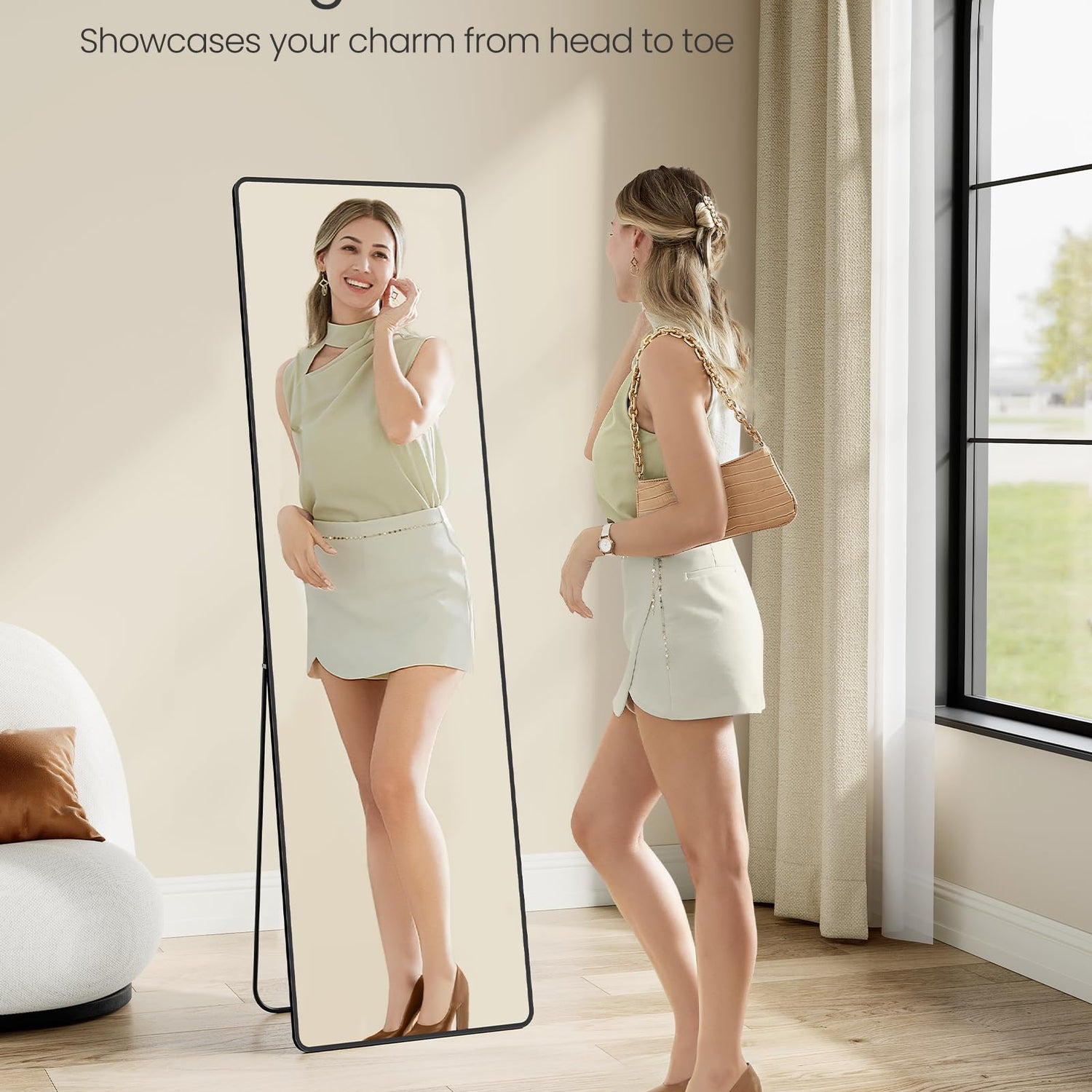 - 【SEE YOURSELF FULLY, PLACE IT FREELY】Our full-length floor mirror measures 63 x 20 inches, providing a complete view of your entire outfit. Whether freestanding or wall-mounted, enjoy a perfect reflection every time
