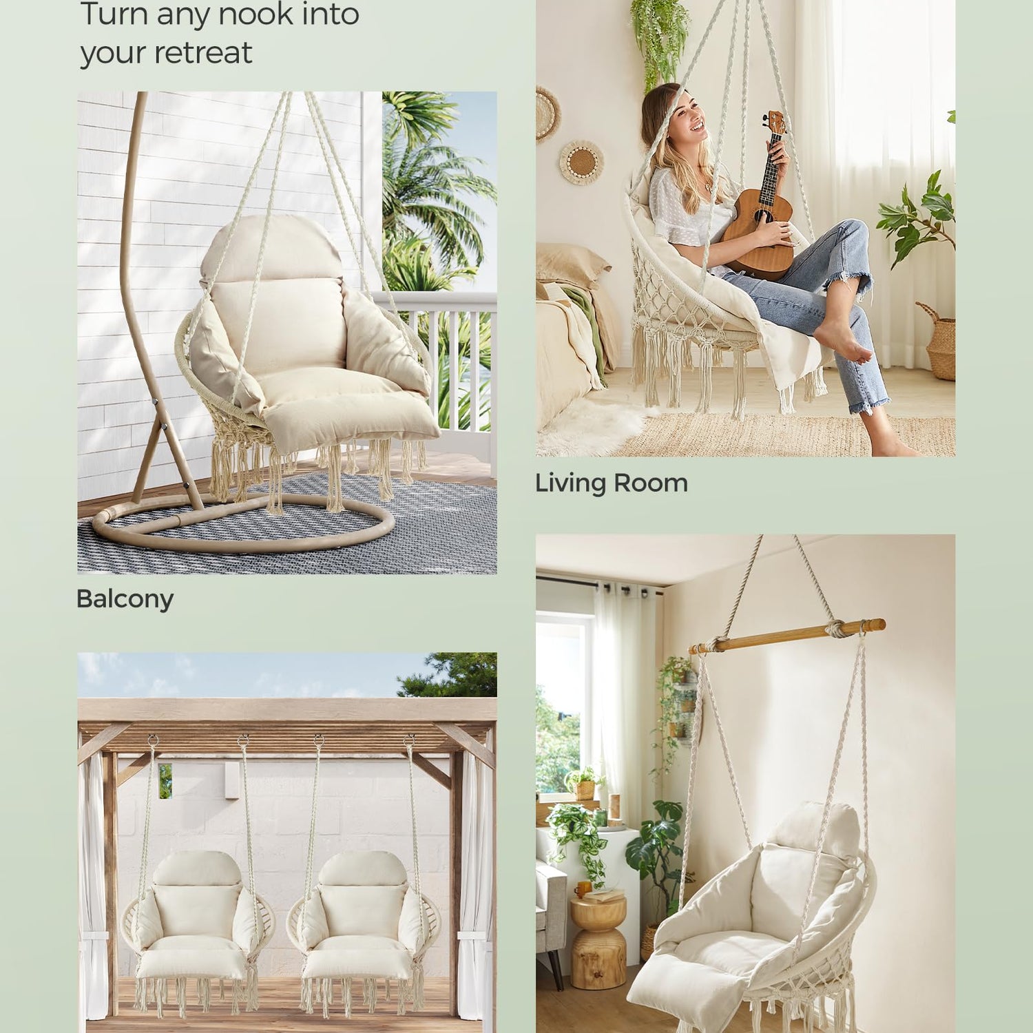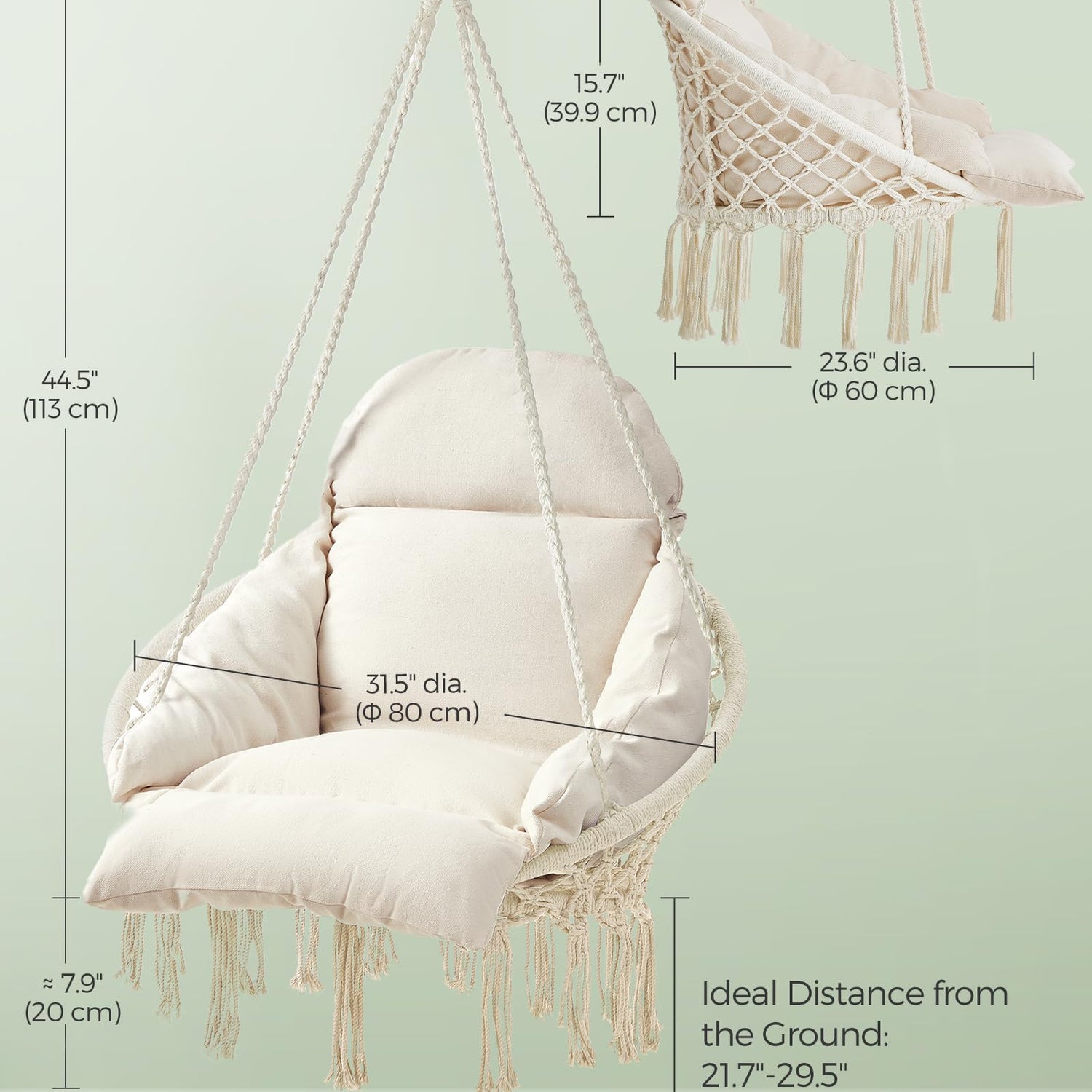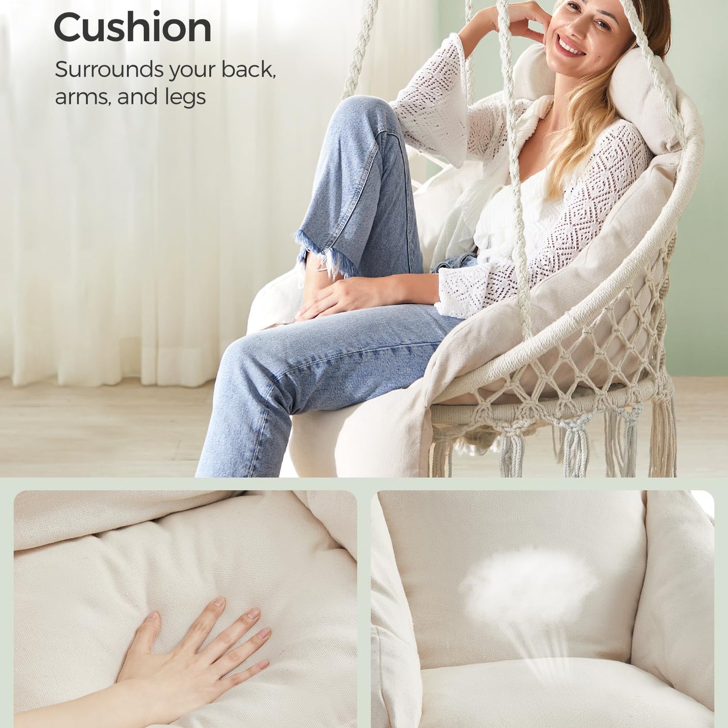 SONGMICS Hanging Chair, Hammock Chair with Large, Thick Cushion, Boho Swing Chair for Bedroom, Patio, Balcony, Garden, Holds up to 264 lb, Accessories Included, Cream White UGDC042M01