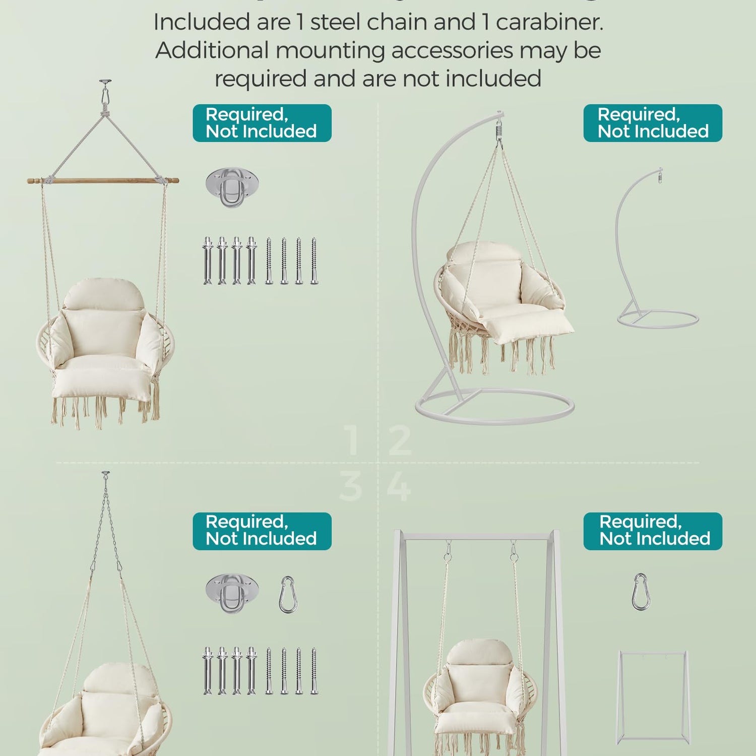 - [Includes Accessories] This hanging chair comes with a steel chain and a carabiner for your convenience. Note that extra accessories may be required for various hanging methods; please prepare them yourself as needed