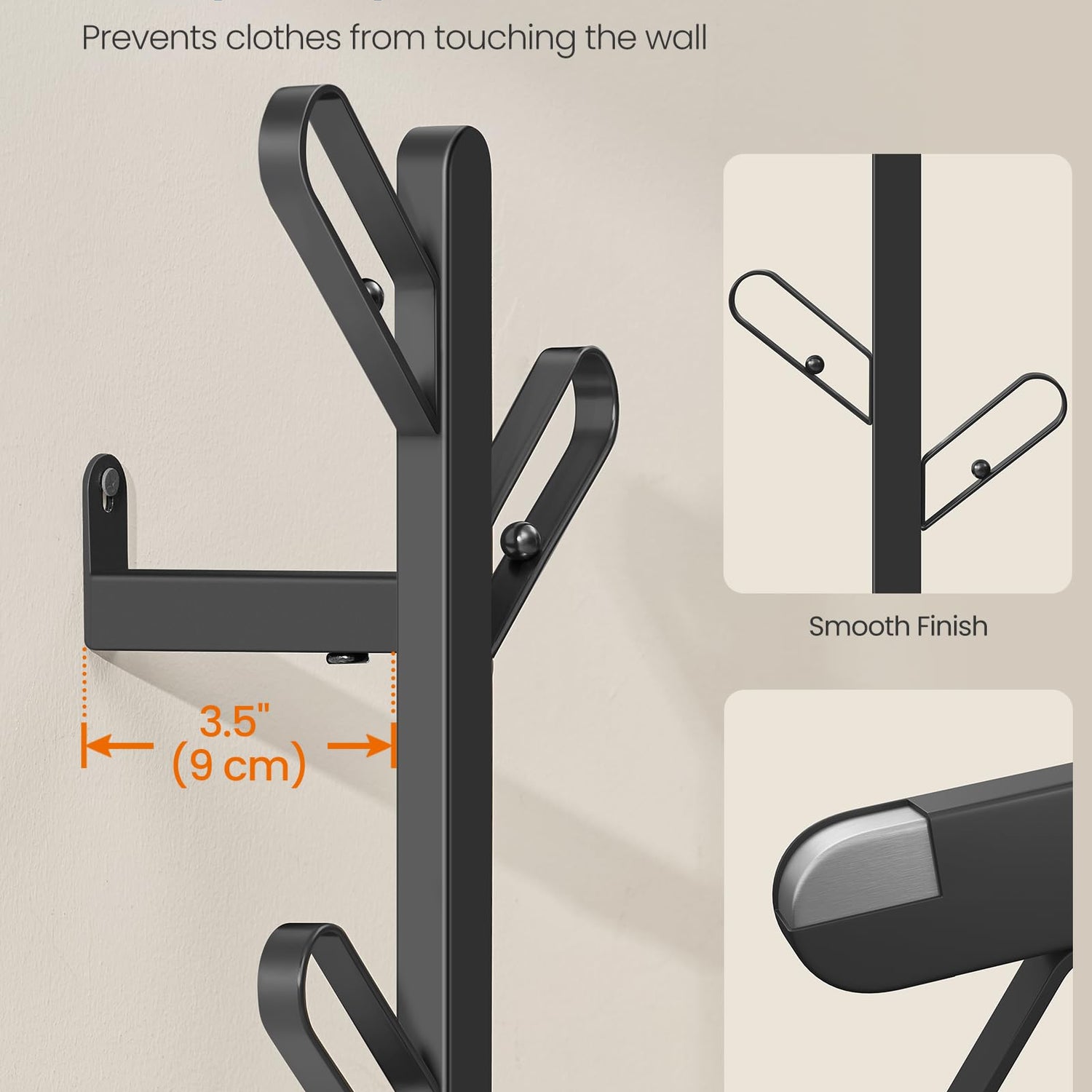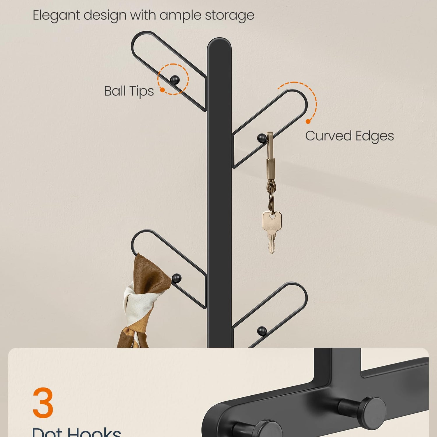 - 【HOOKS WITH CURVED EDGES AND BALL TIPS】The branch-look hooks have curved edges to protect your clothes from damage. The 4 ball tips provide additional hanging space for small items, making this coat rack both safe and spacious