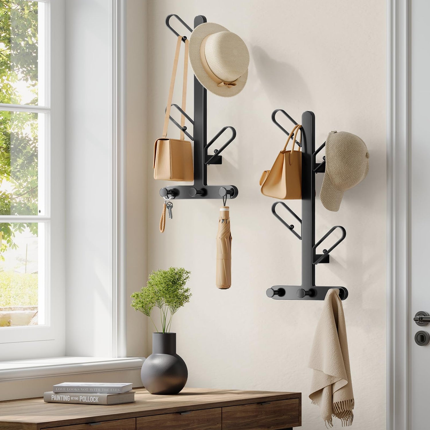 - 【VERSATILE】Ideal for the entryway, living room, or bedroom, each coat rack features 4 branch hooks and 3 dot hooks, perfect for hanging coats, hats, bags, scarves, towels, and more. It helps keep your space tidy and organized