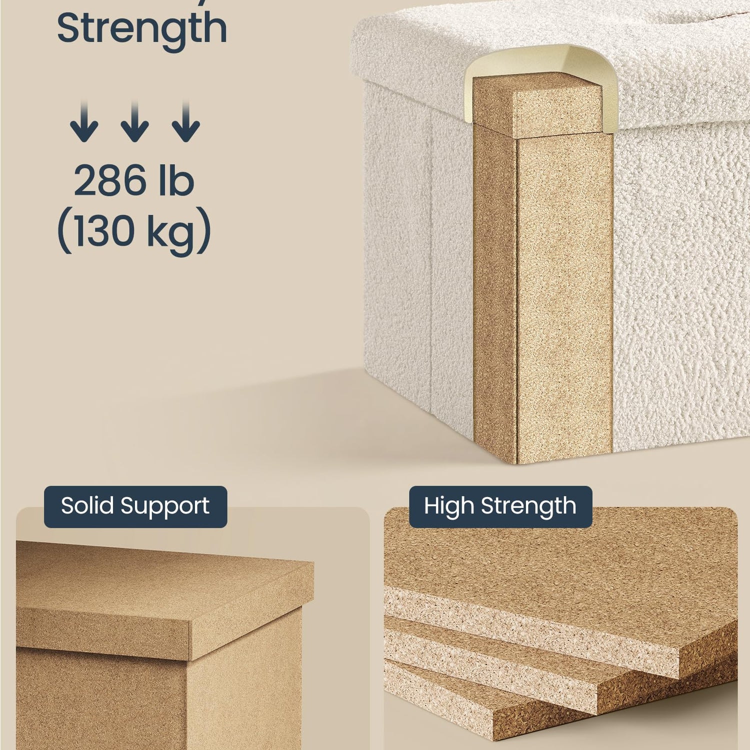 - 【STURDY AND DURABLE】Built with premium MDF panels, this folding ottoman is strong enough to support up to 286 lb (130 kg), making it a reliable seating or storage solution that will stand the test of time