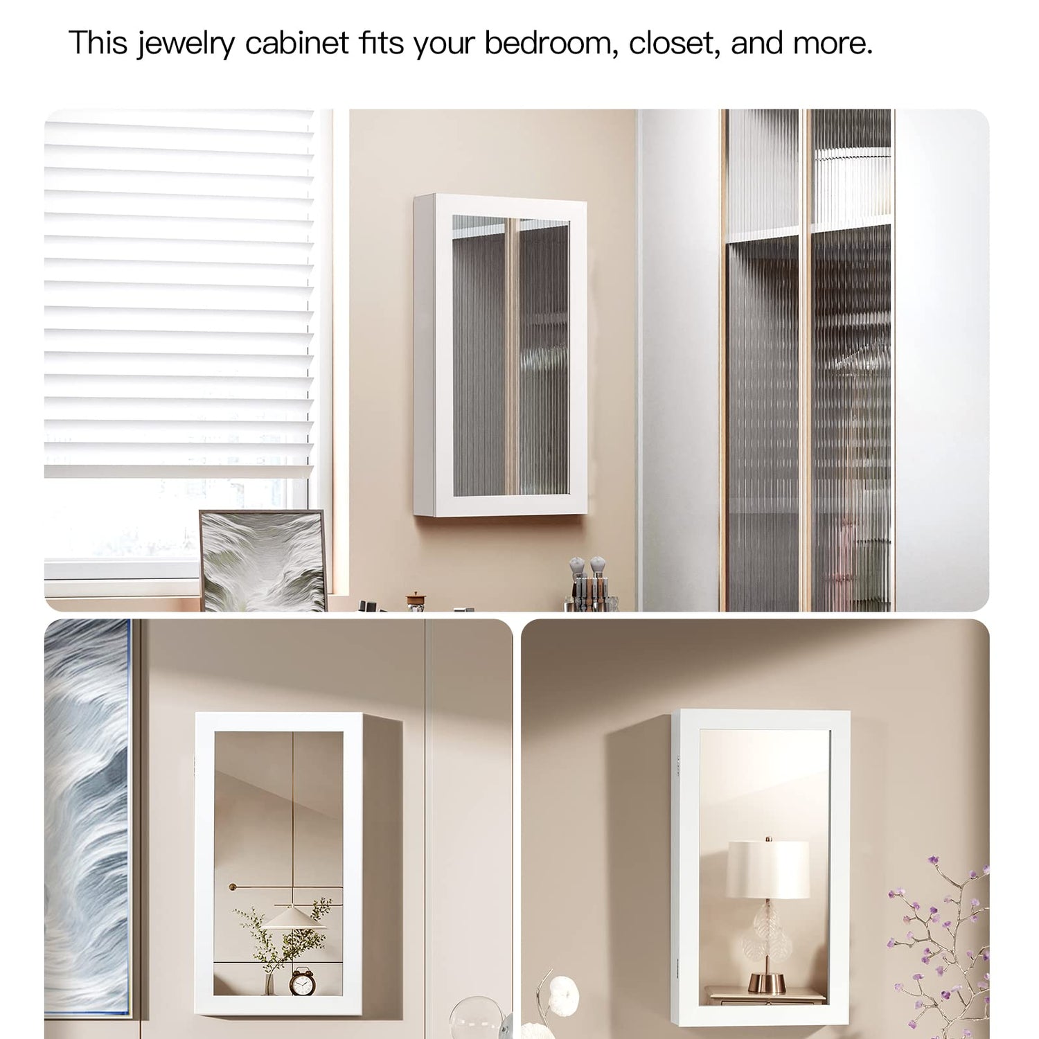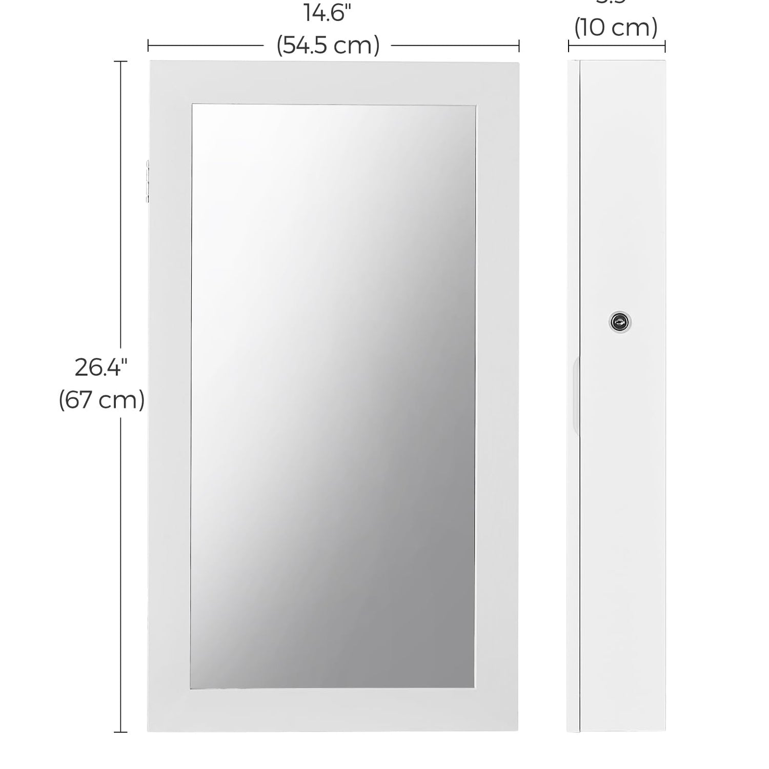 SONGMICS Lockable Jewelry Cabinet Armoire with Mirror, Wall-Mounted Space Saving Jewelry Storage Organizer, White UJJC51WT