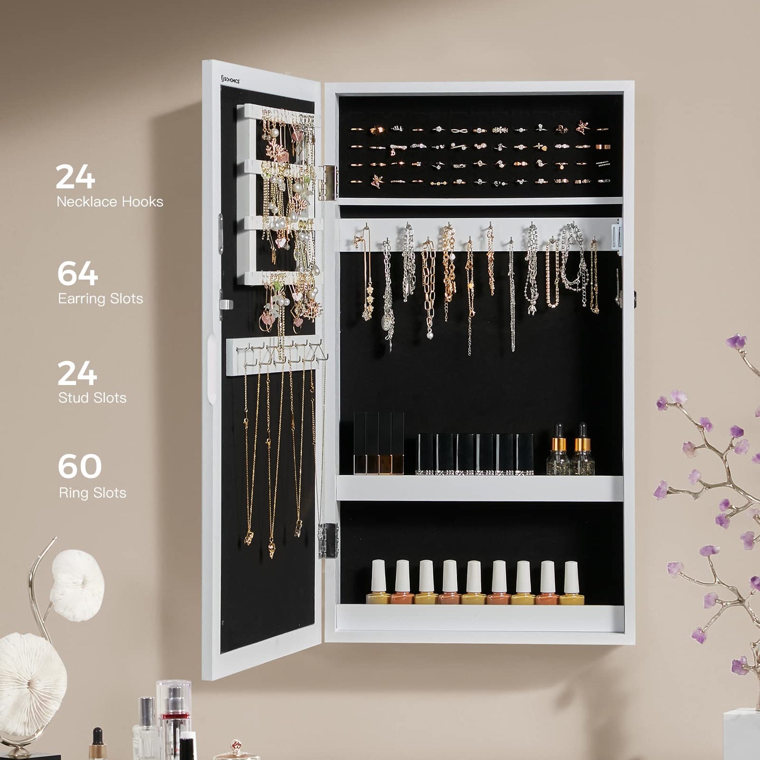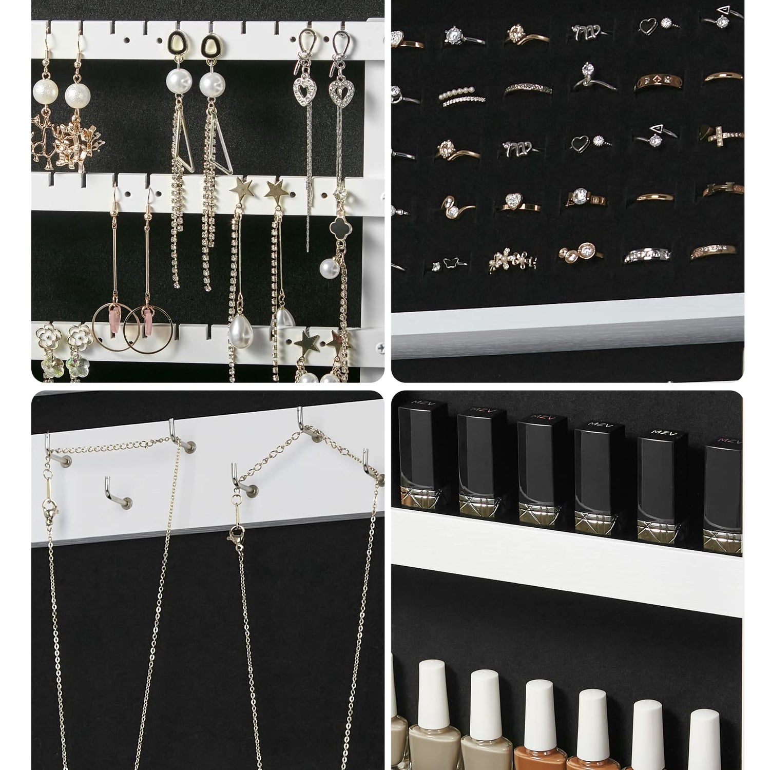 - [Practical Jewelry Cabinet] Boasting more functional areas for various types of jewelry, this jewelry cabinet helps you say goodbye to the lost earrings and tangled necklaces