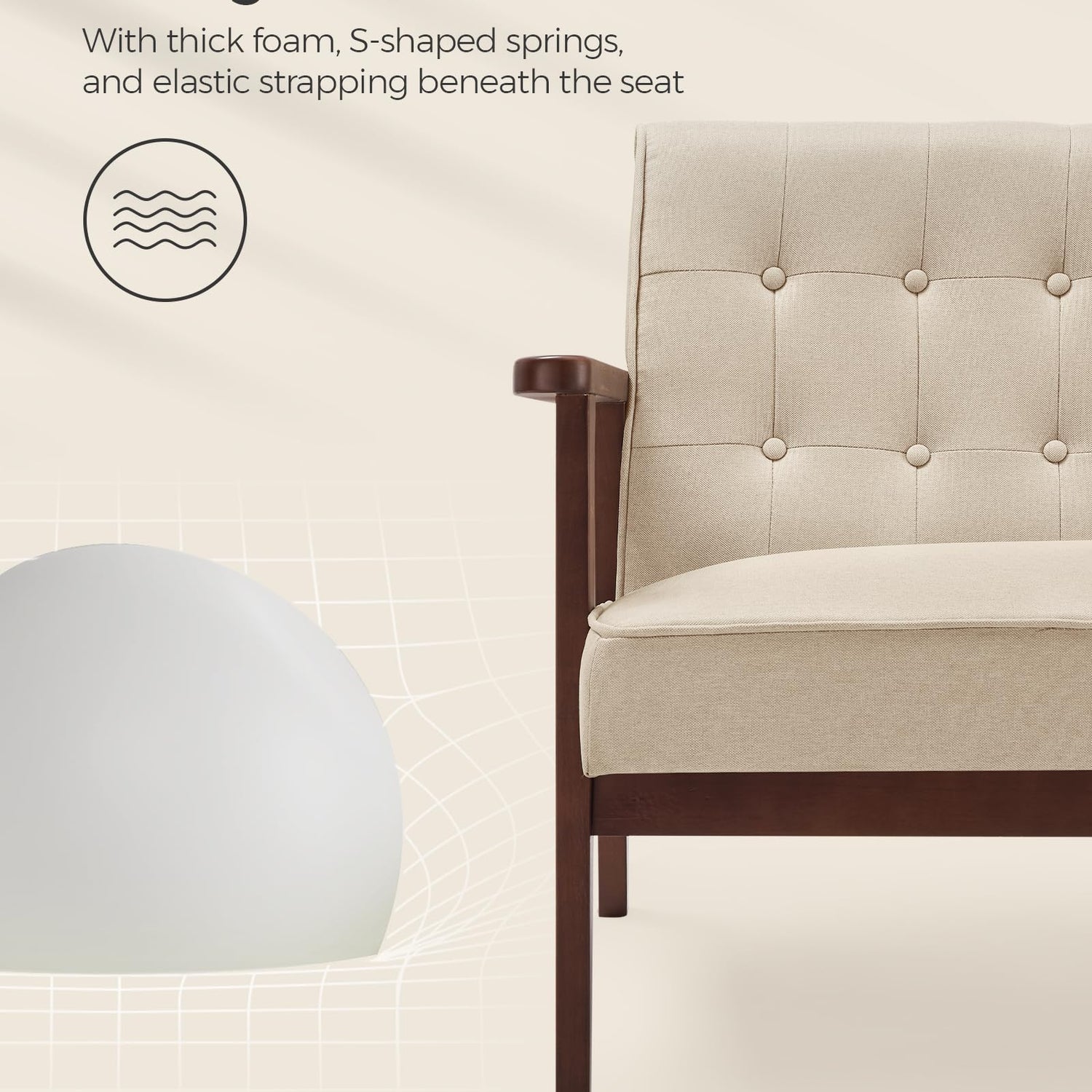 - [Mid-Century Charm] The rubberwood armrests add a touch of natural warmth, while the backrest buckle enhances the overall aesthetic. It isn't just a couch, it's a work of art that adds a dash of elegance to your space