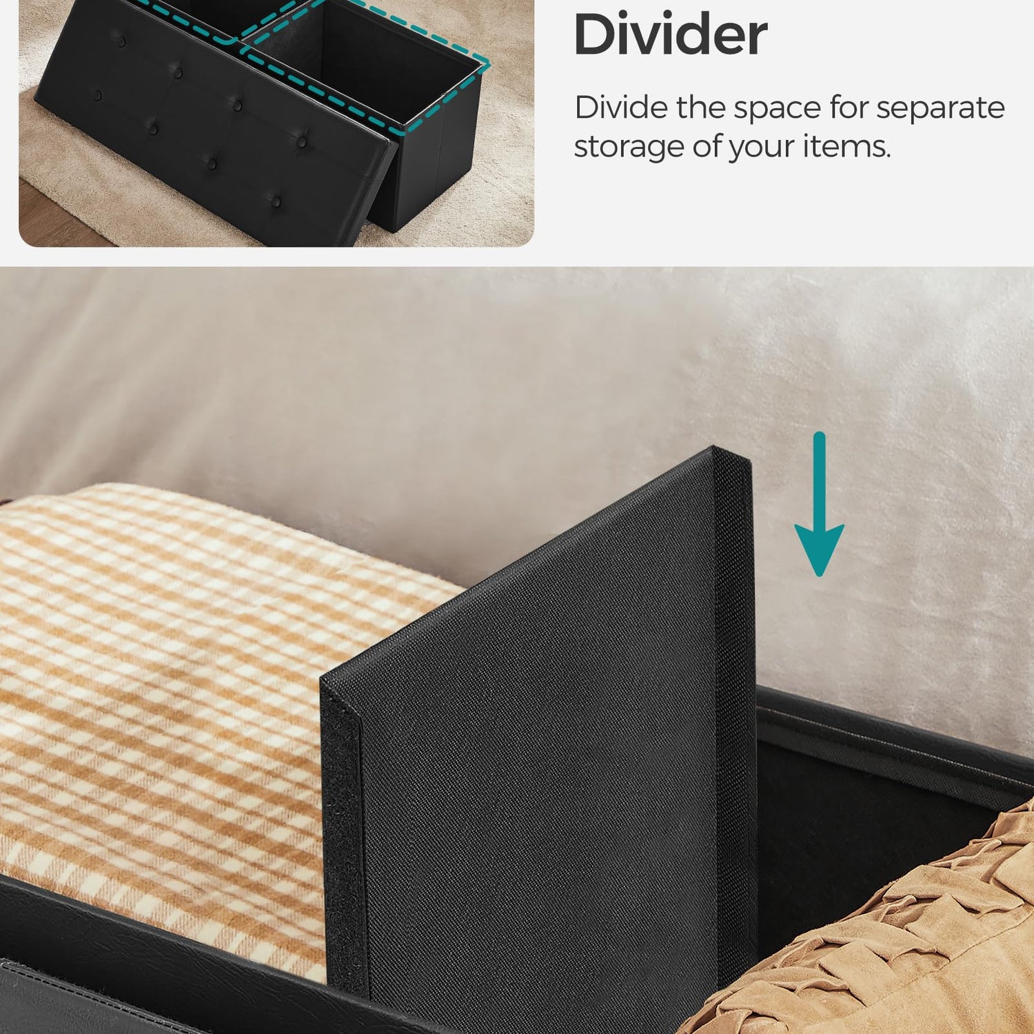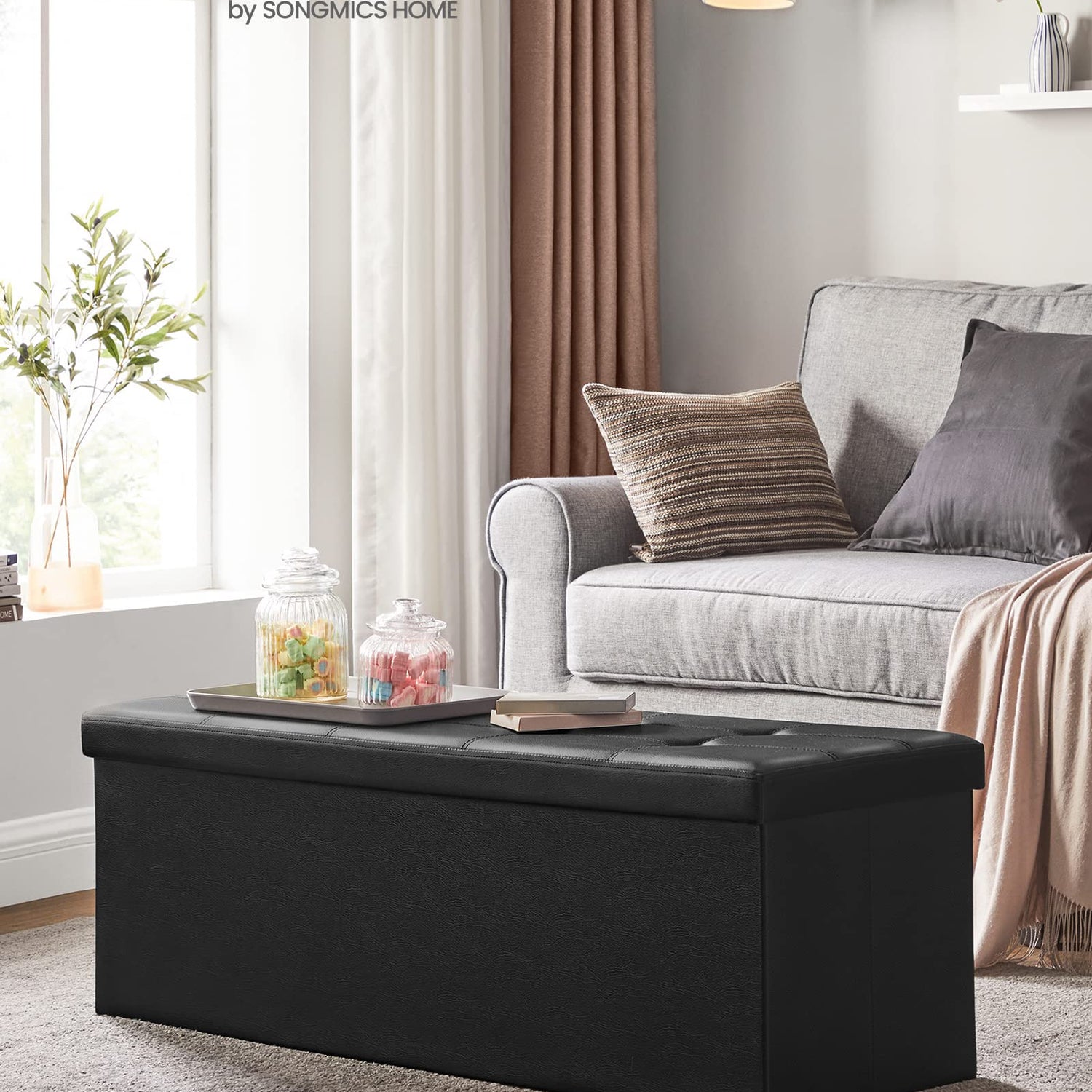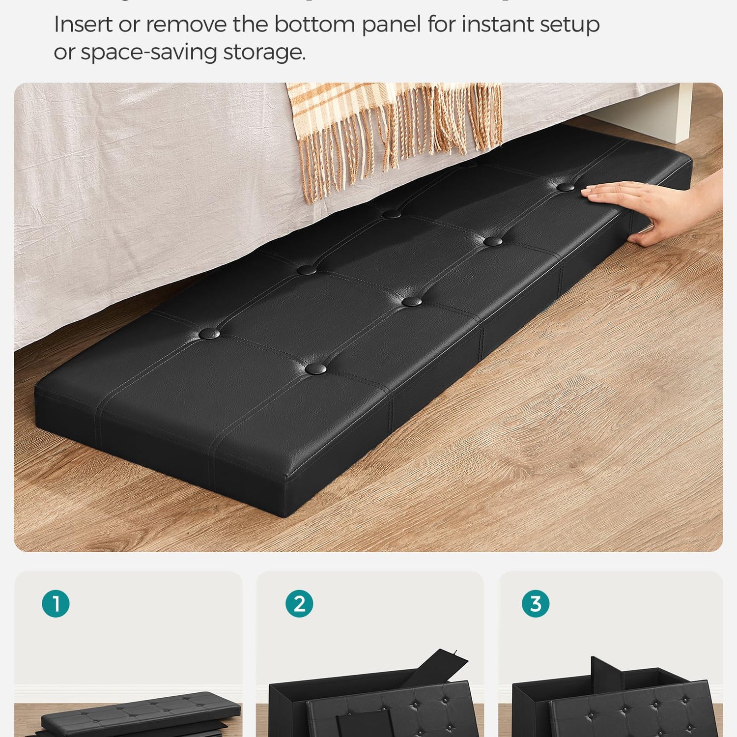 - 【QUICK ASSEMBLY, EASY FOLDAWAY】This storage ottoman from the SONGMICS MAZIE Collection has a foldable design that allows quick setup in seconds by simply inserting the bottom panel. Easily fold and store it under the bed or in a closet when not in use