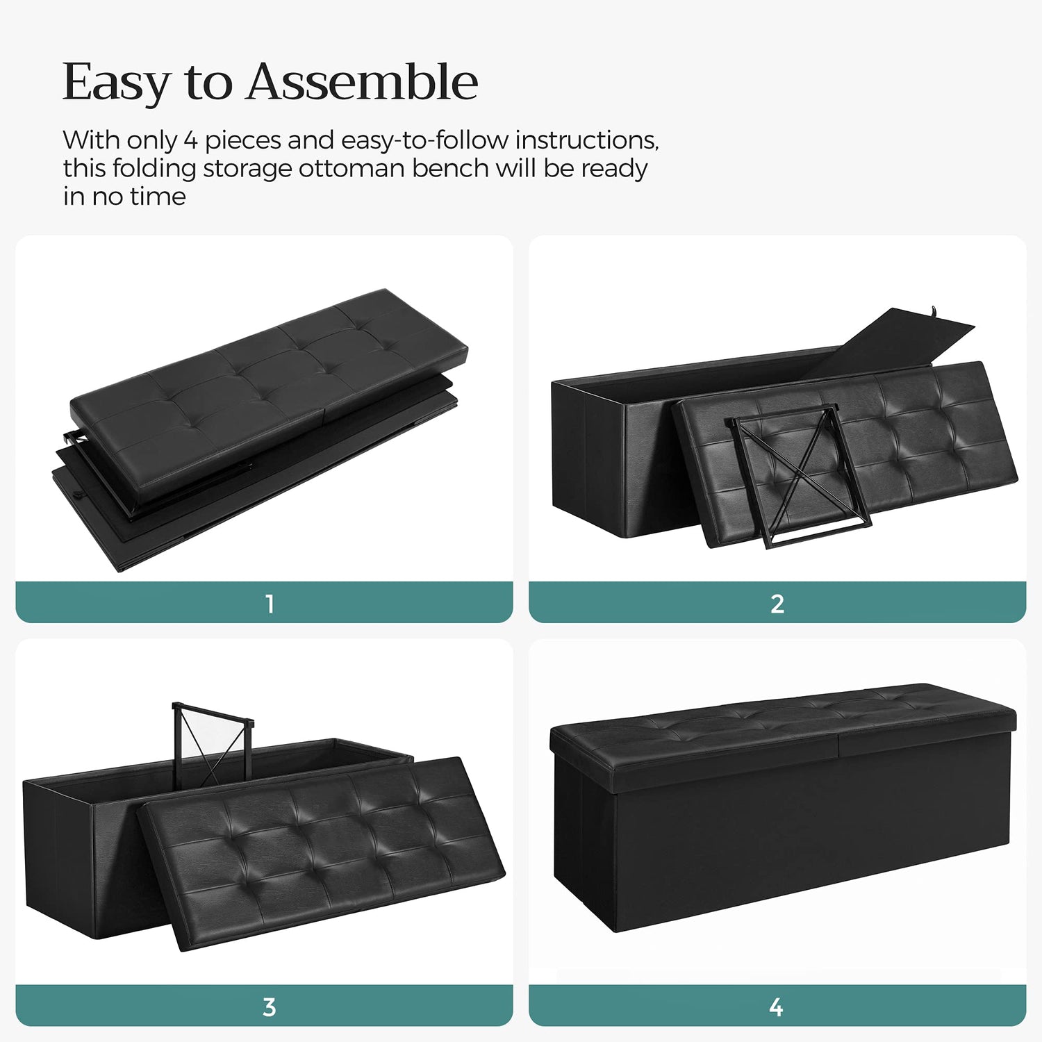 - 【BUILT TO LAST】Featuring sturdy MDF panels for the tops and sides, and a lid reinforced with metal corner guards, the folding storage bench can hold up to 660 lb (300 kg). Its solid construction ensures it will last for years to come