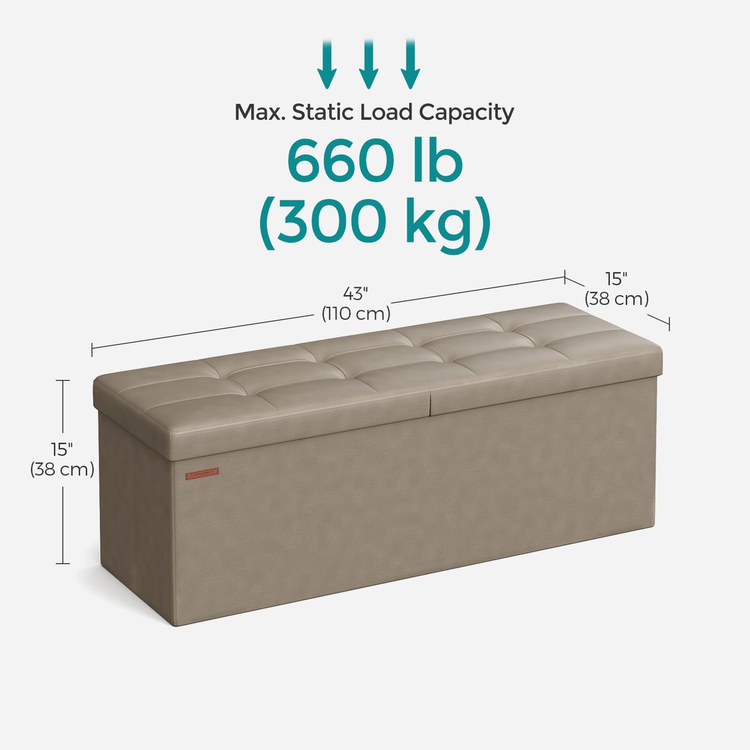 SONGMICS MAZIE Collection - 43 Inches Storage Ottoman Bench with Flipping Lid, Storage Chest with Iron Frame Support, Load 660 lb, for Living Room, Bedroom, Synthetic Leather, Camel Brown ULSF075K03