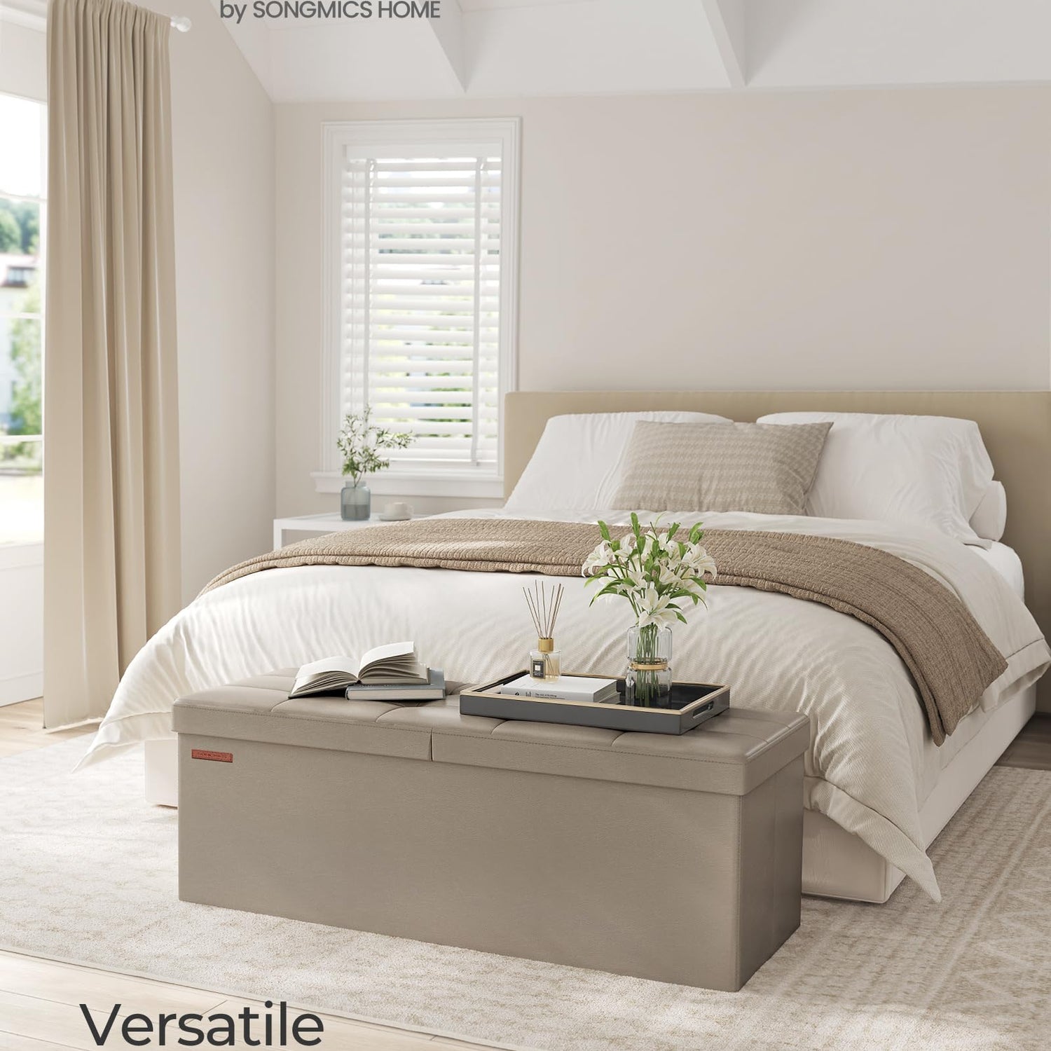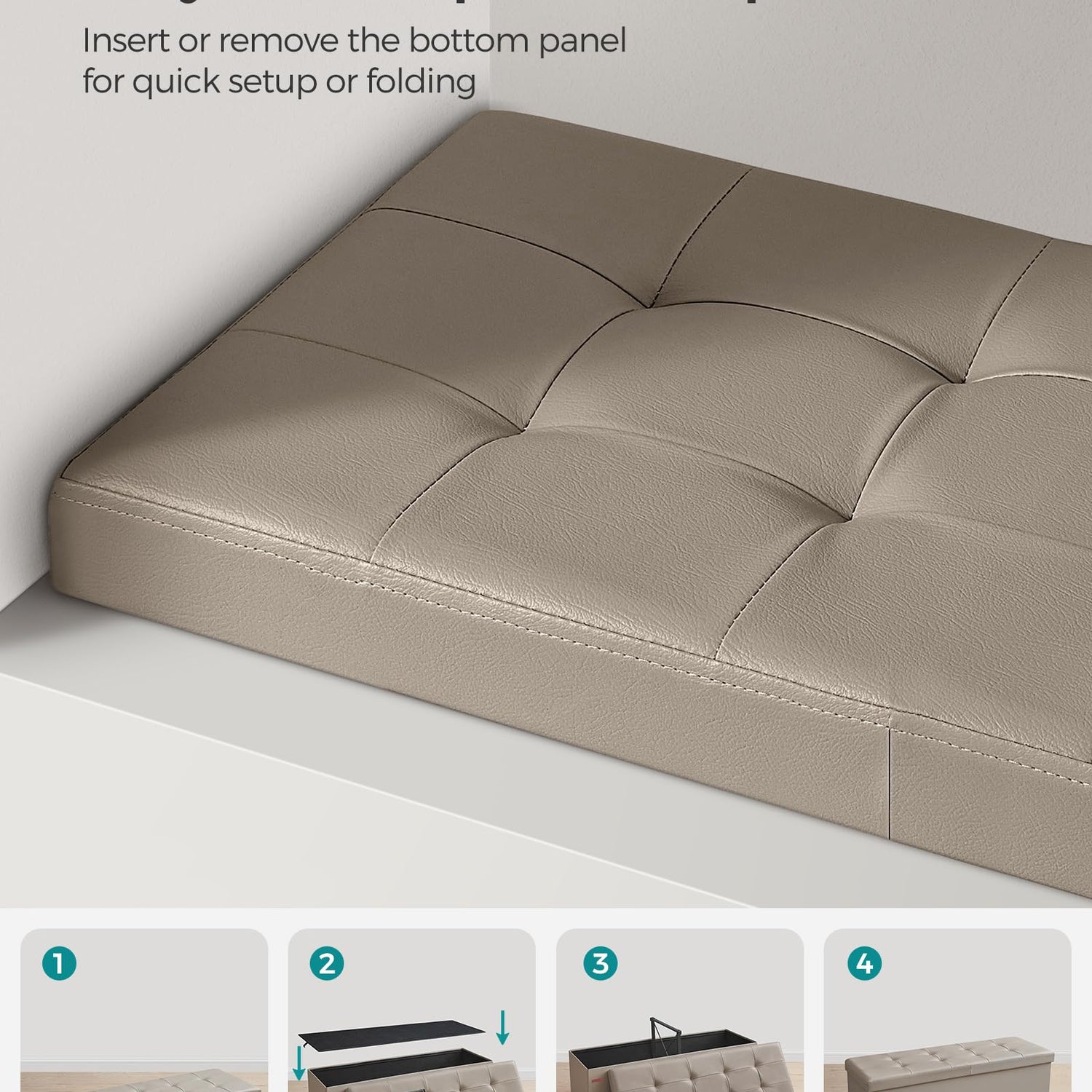 - 【QUICK ASSEMBLY, EASY FOLDAWAY】This storage ottoman from the SONGMICS MAZIE Collection has a foldable design that allows quick setup in seconds by simply inserting the bottom panel. Easily fold and store it under the bed or in a closet when not in use