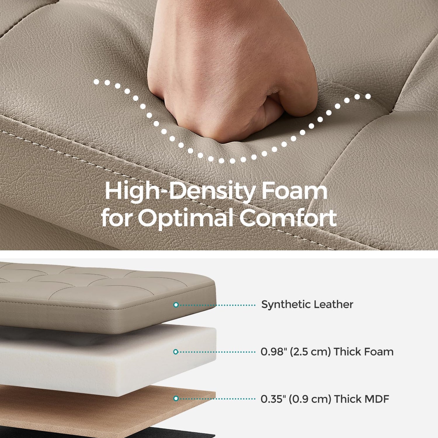 - 【COMFORTABLE SITTING, EFFORTLESS CLEANING】Padded with high-density foam, this storage bench is resistant to deformation, ensuring a soft seating experience. The synthetic leather surface makes cleaning a breeze—just a gentle wipe with a cloth