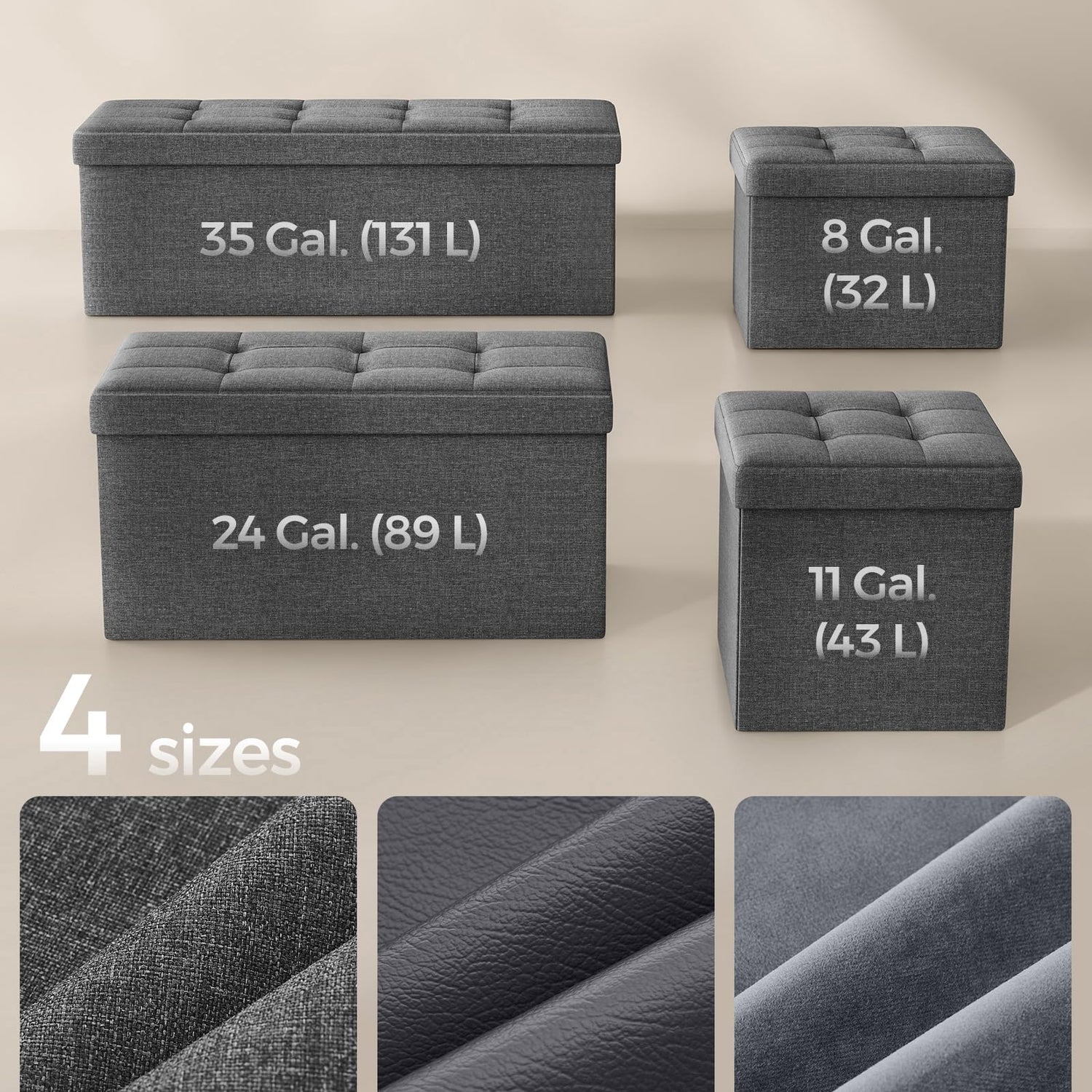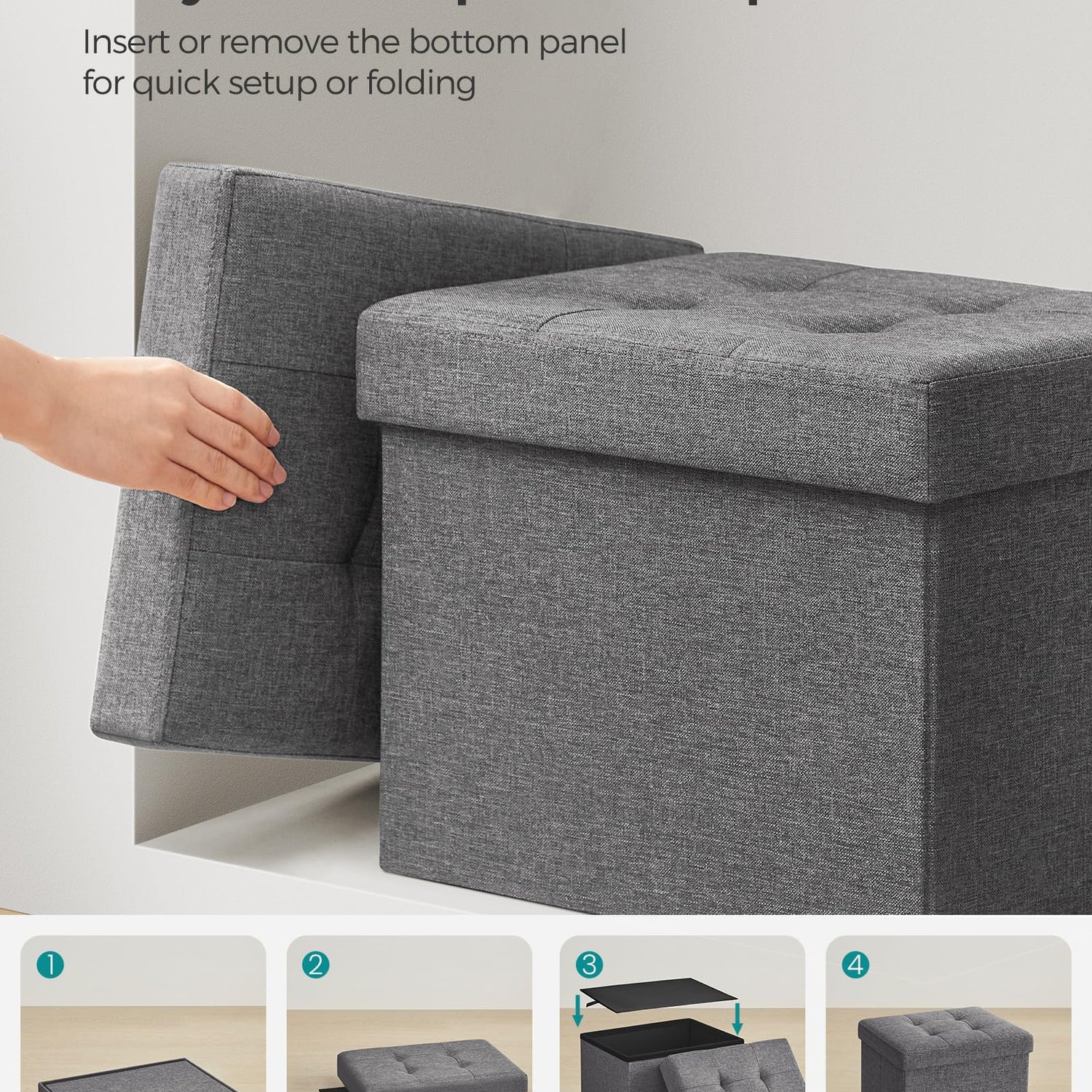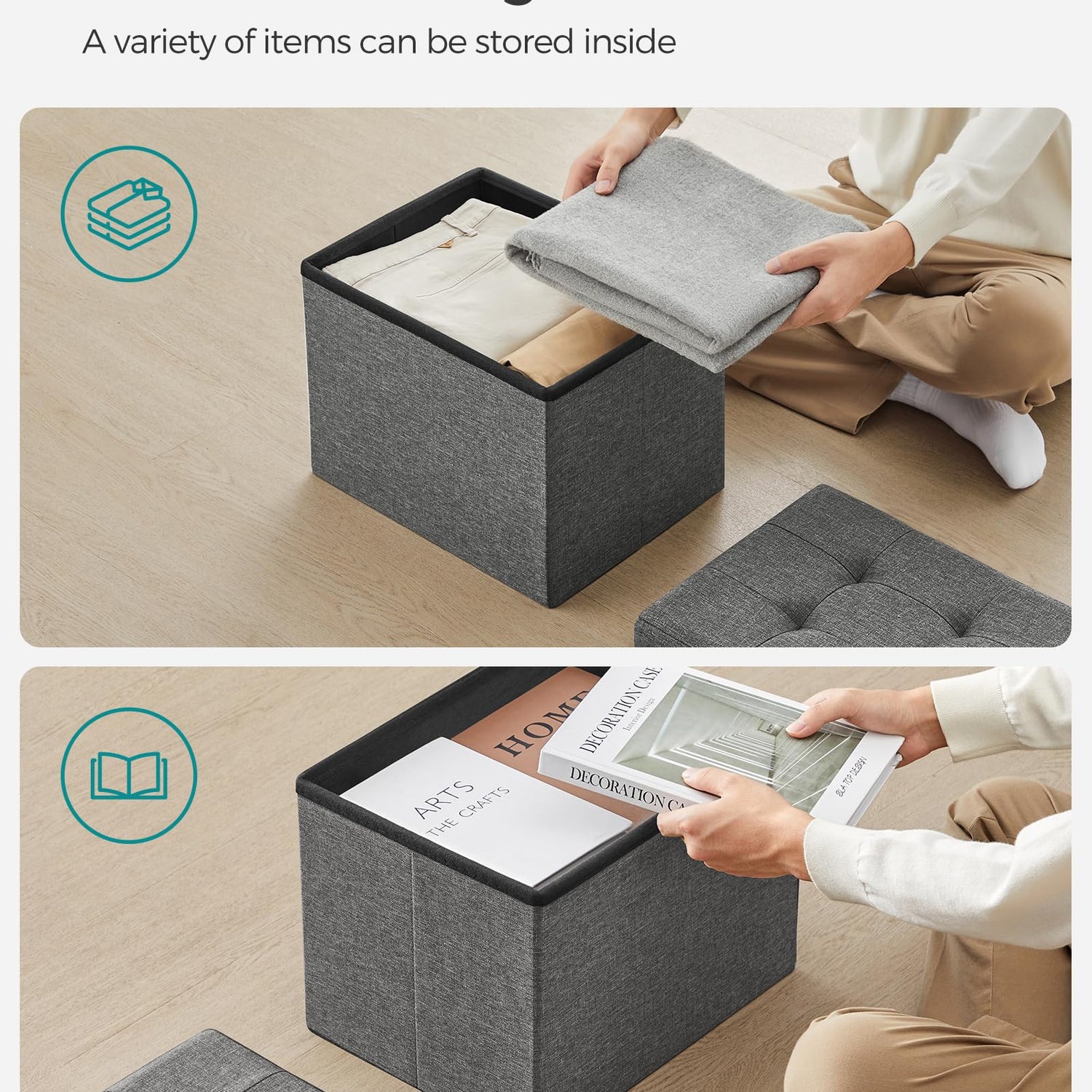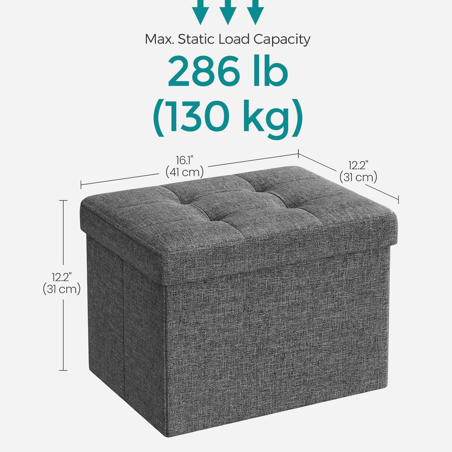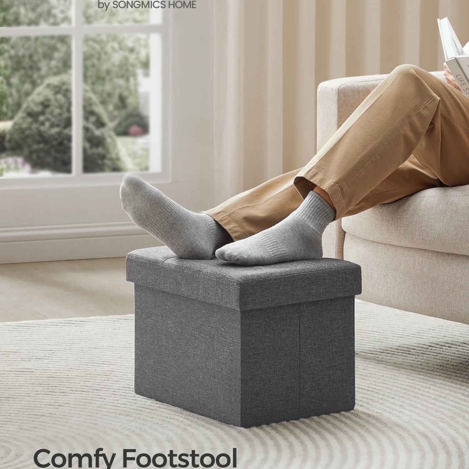 SONGMICS Mazie Collection - Small Folding Storage Ottoman, Foot Rest Stool, 12.2 x 16.1 x 12.2 Inches, 286 lb Load Capacity, for Living Room, Bedroom, Home Office, Dorm, Dark Gray ULSF102G01