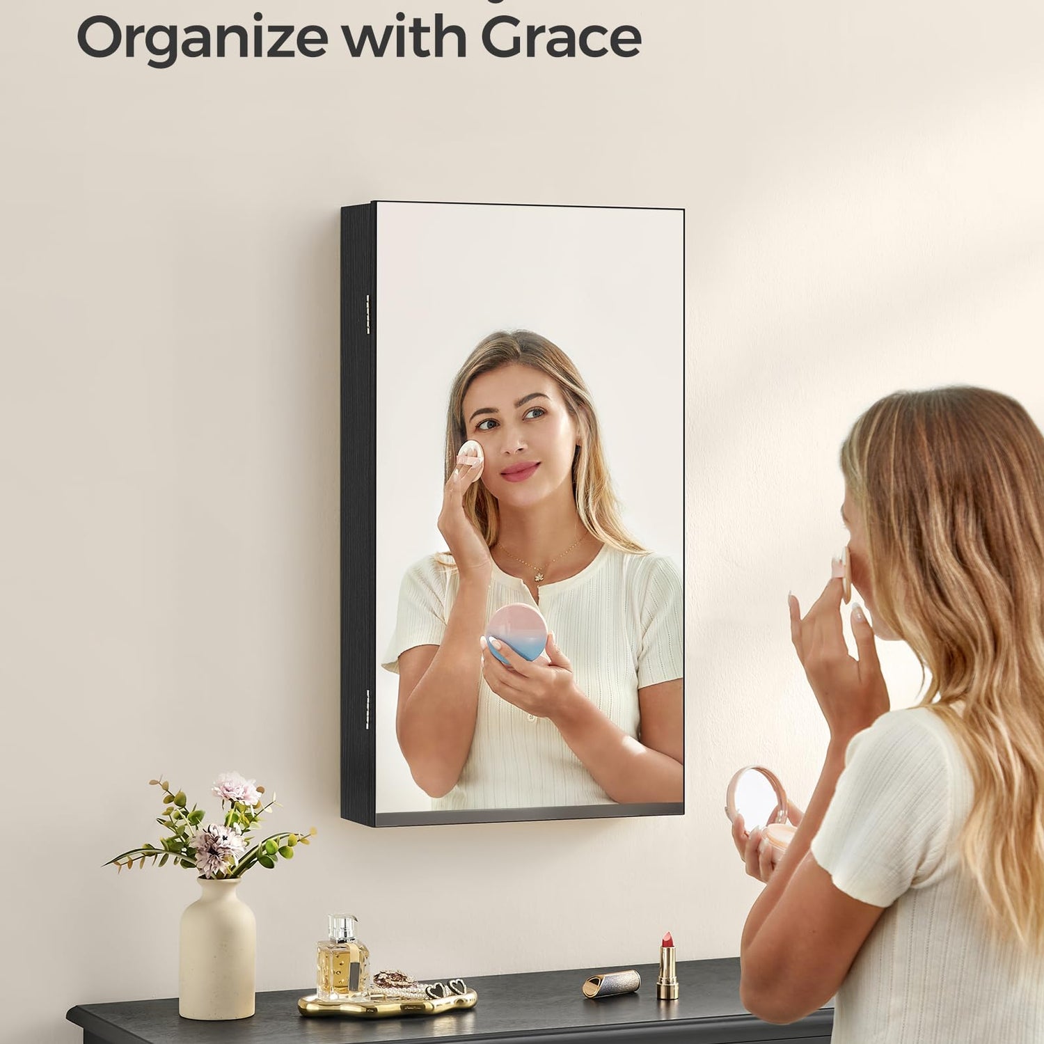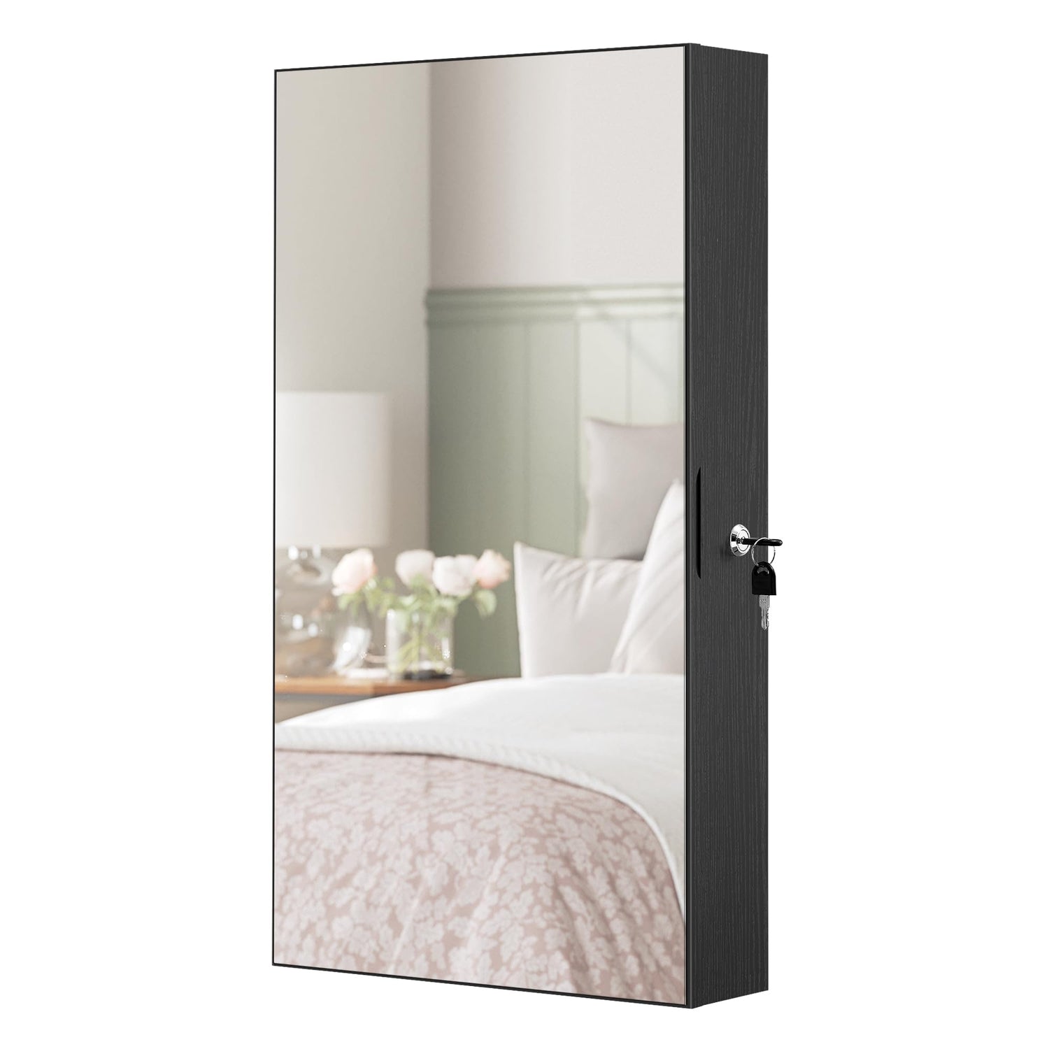 - [Storage and Mirror in One] With this 2-in-1 jewelry cabinet, you get a 14.6" x 26.4" large frameless mirror and tons of storage behind it, which saves you space as well as time by allowing you to pick, wear, and check out matching jewels all in one place