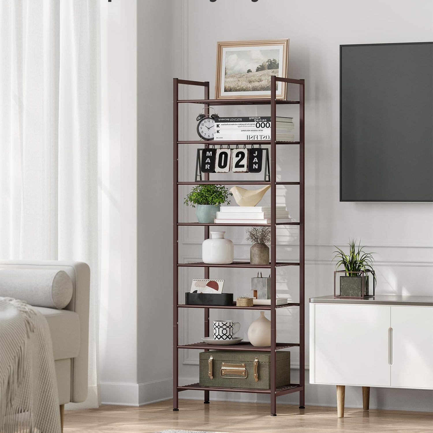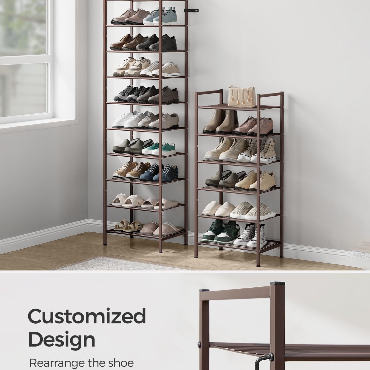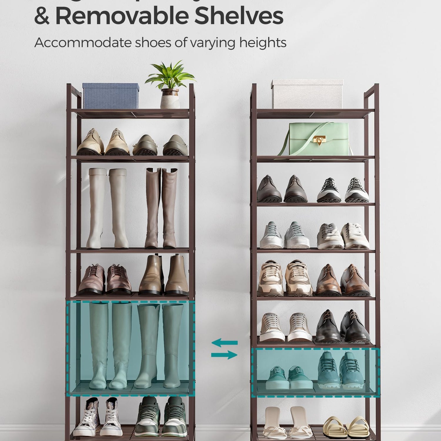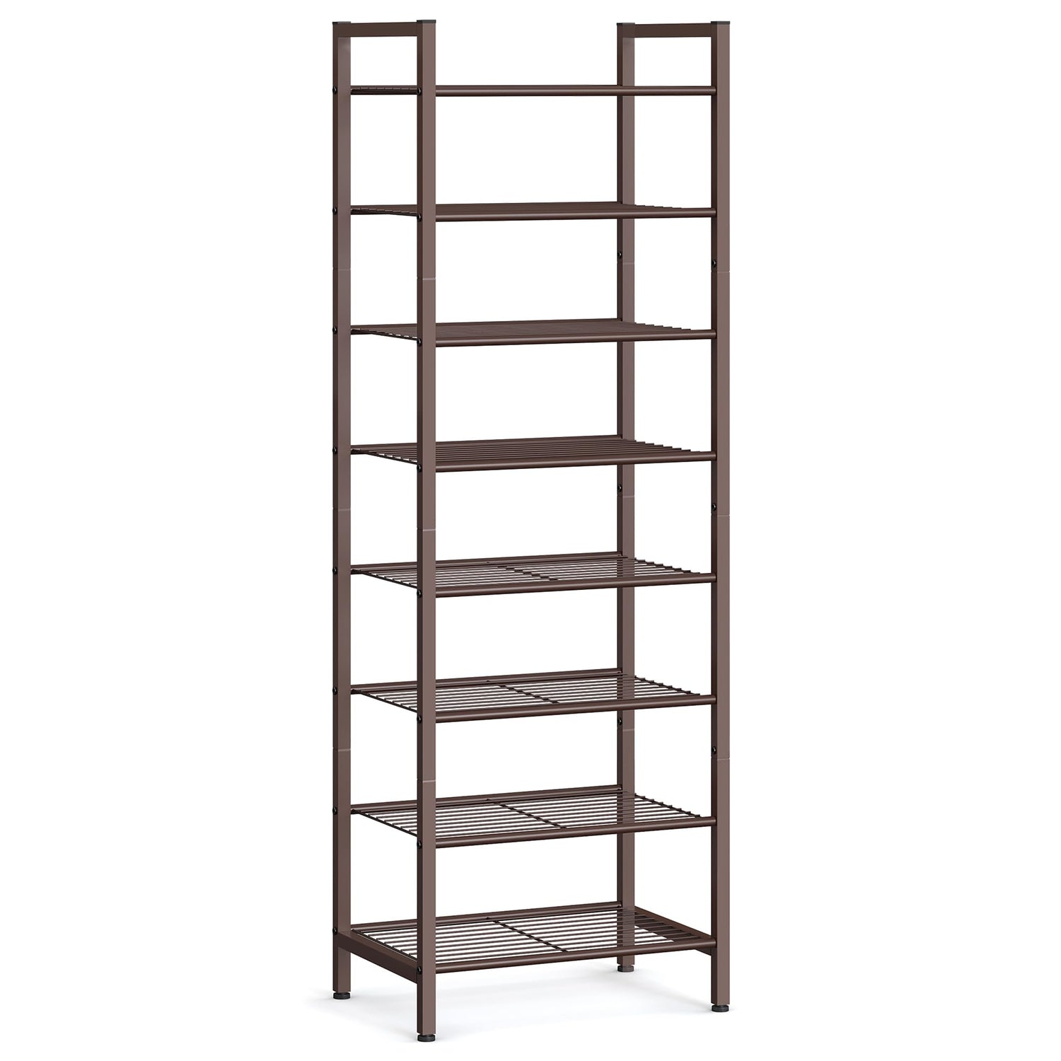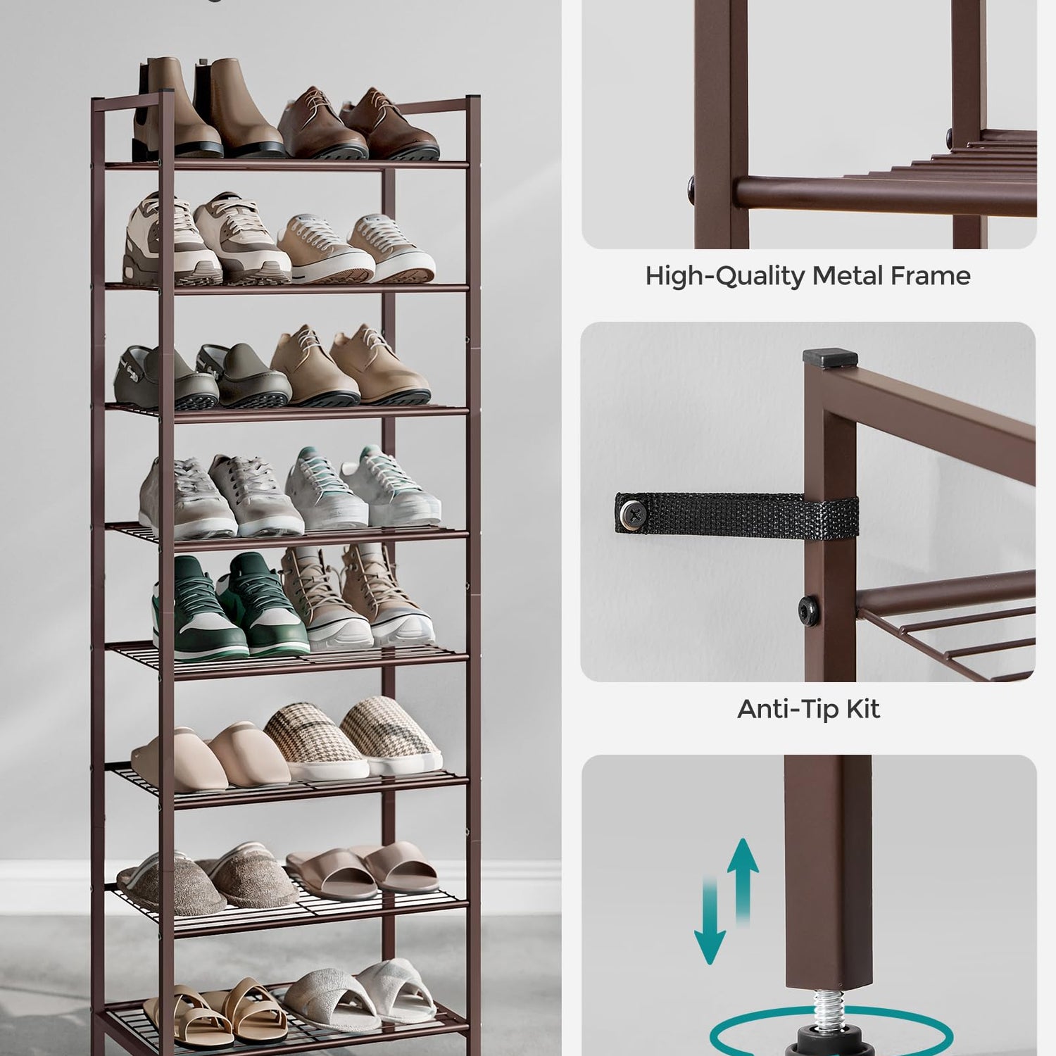 SONGMICS Narrow Shoe Rack - Sturdy 8 Tier Metal Tall Shoe Rack Shelf, Slim Shoe Storage Organizer for Closet Entryway Small Spaces, Bronze