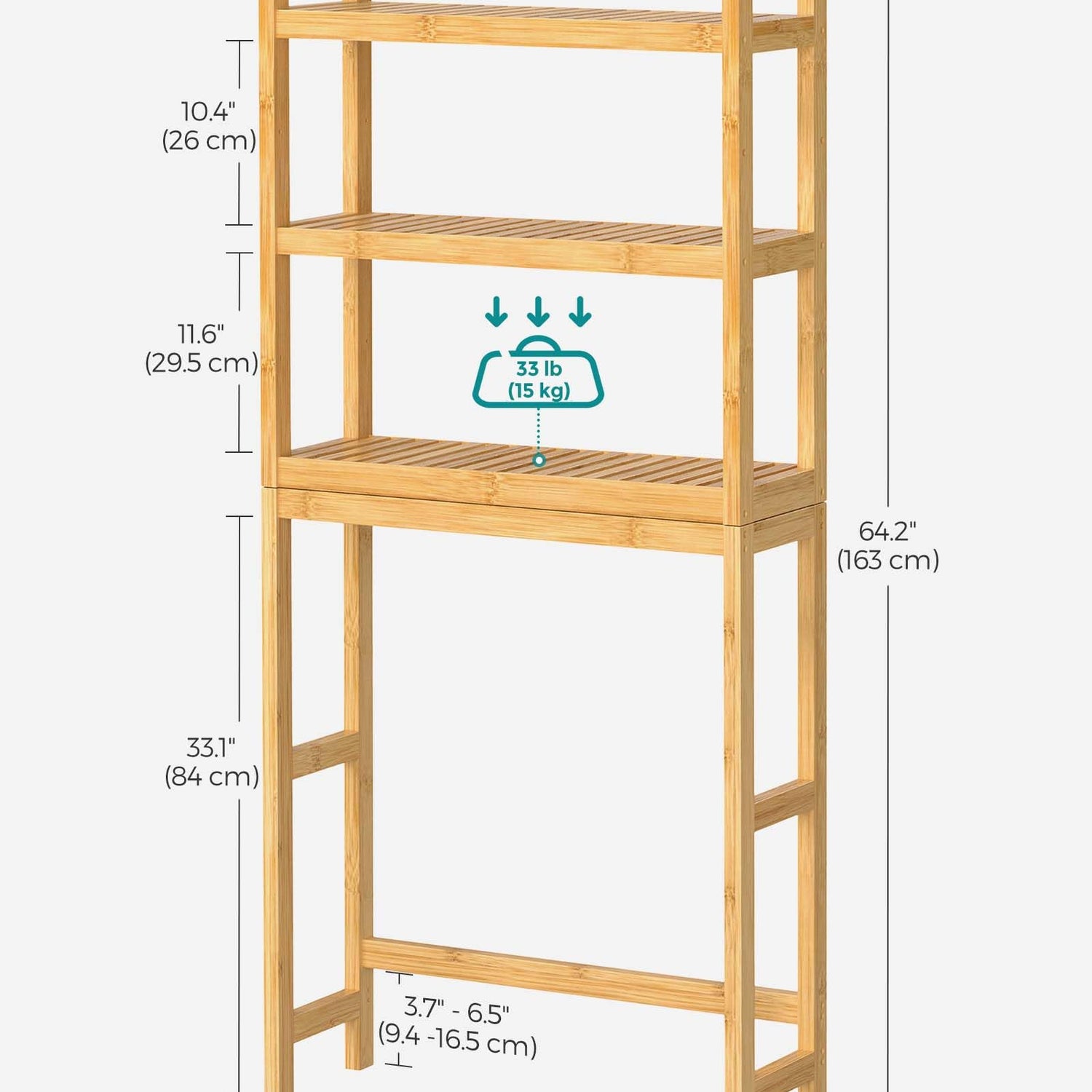 - Bamboo structure: The over-the-toilet shelf made of natural bamboo is strong, solid, and durable for years to come.