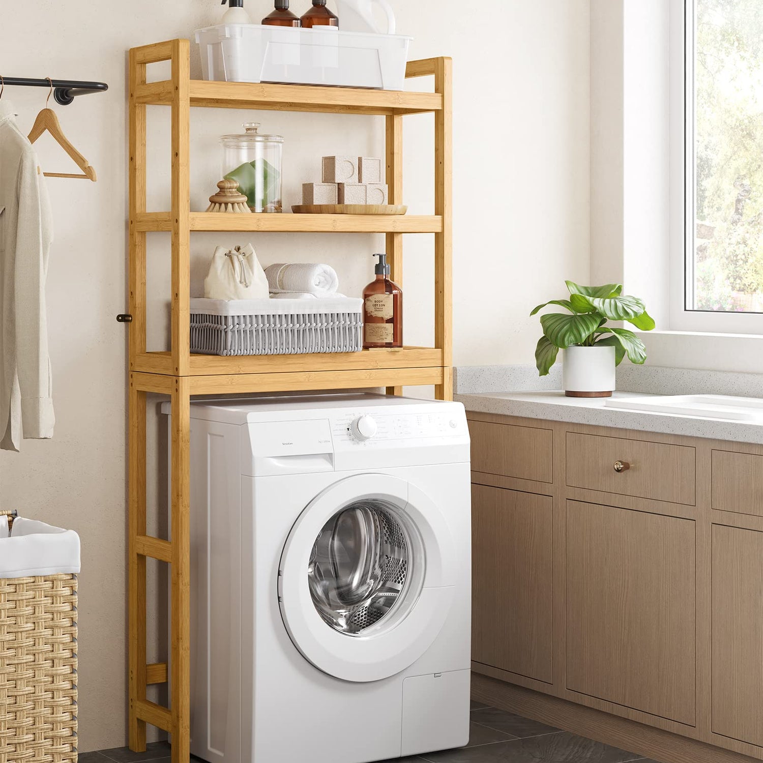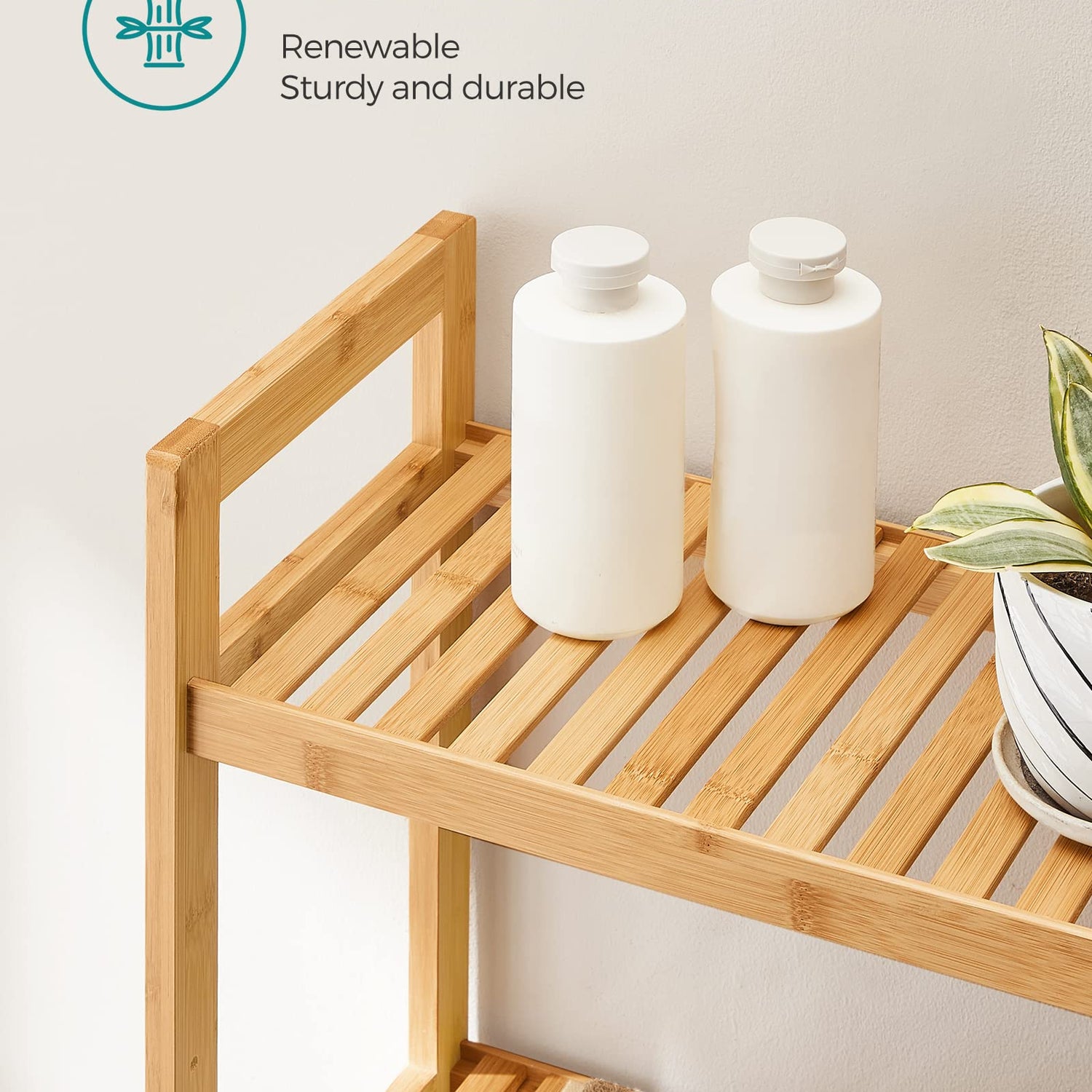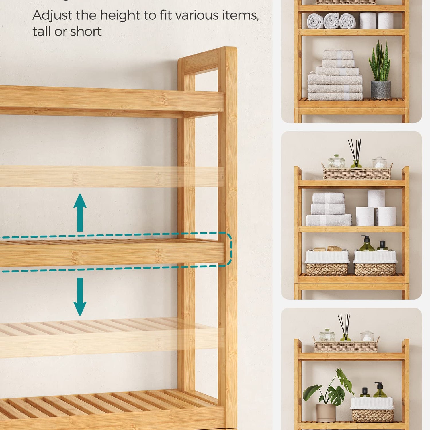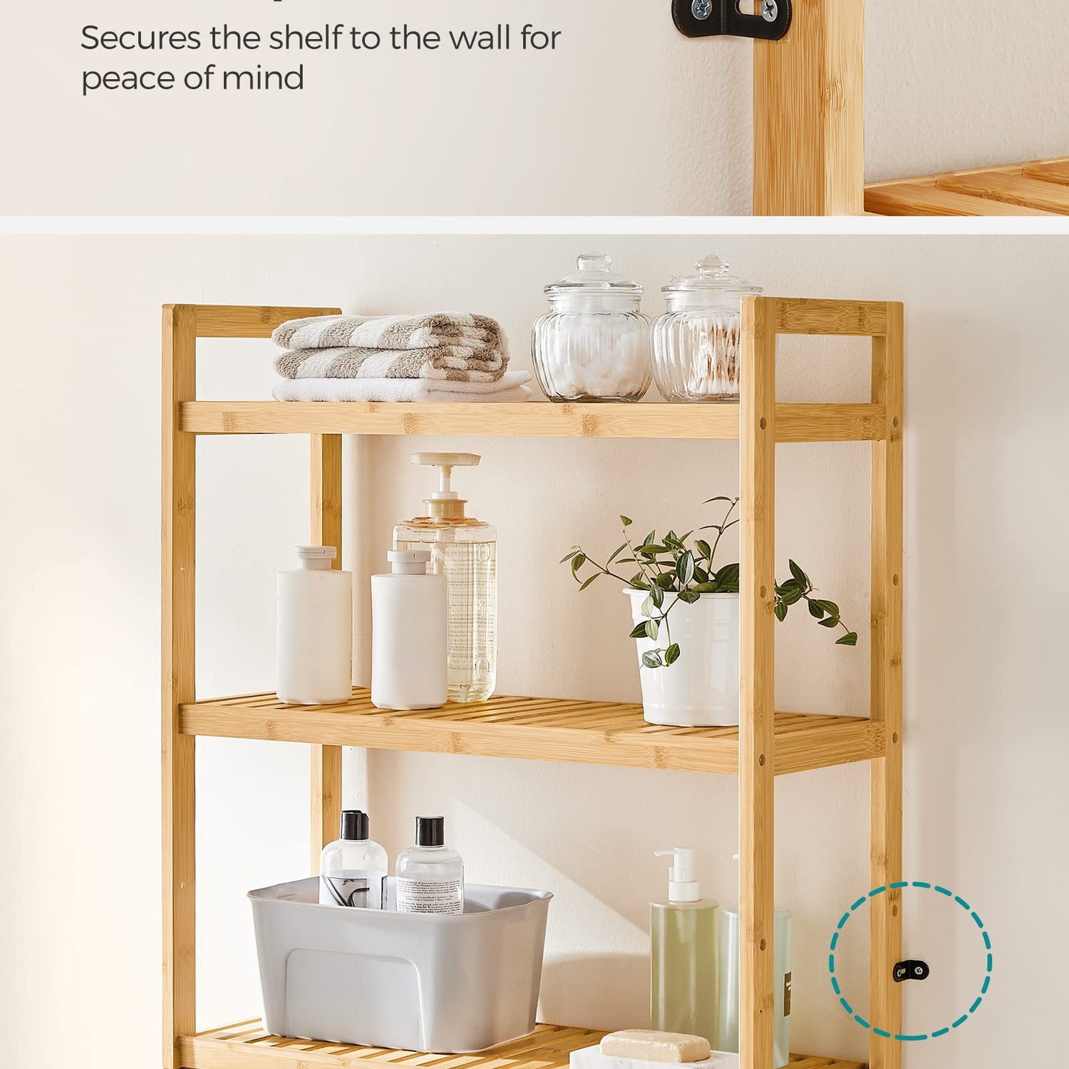 SONGMICS Over The Toilet Storage, 3-Tier Bamboo Over Toilet Bathroom Organizer with Adjustable Shelf, Fit Most Toilets, Space-Saving, Easy Assembly, Natural UBTS001N01