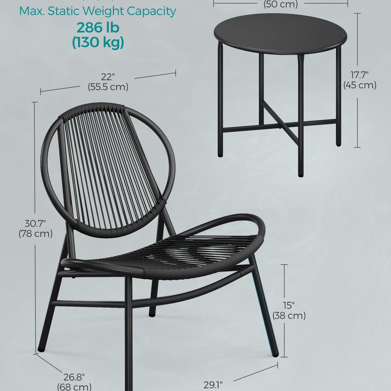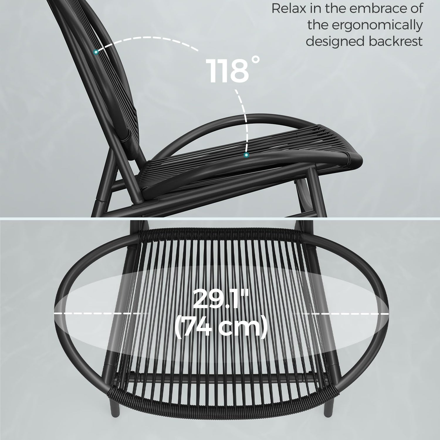 - [Sink Into Its Coziness] With its ergonomic 118° backrest angle and 29.1" wide seat, this outdoor chair set is your personal comfort zone. Just lean back, cross your legs, and let all your stress float away!