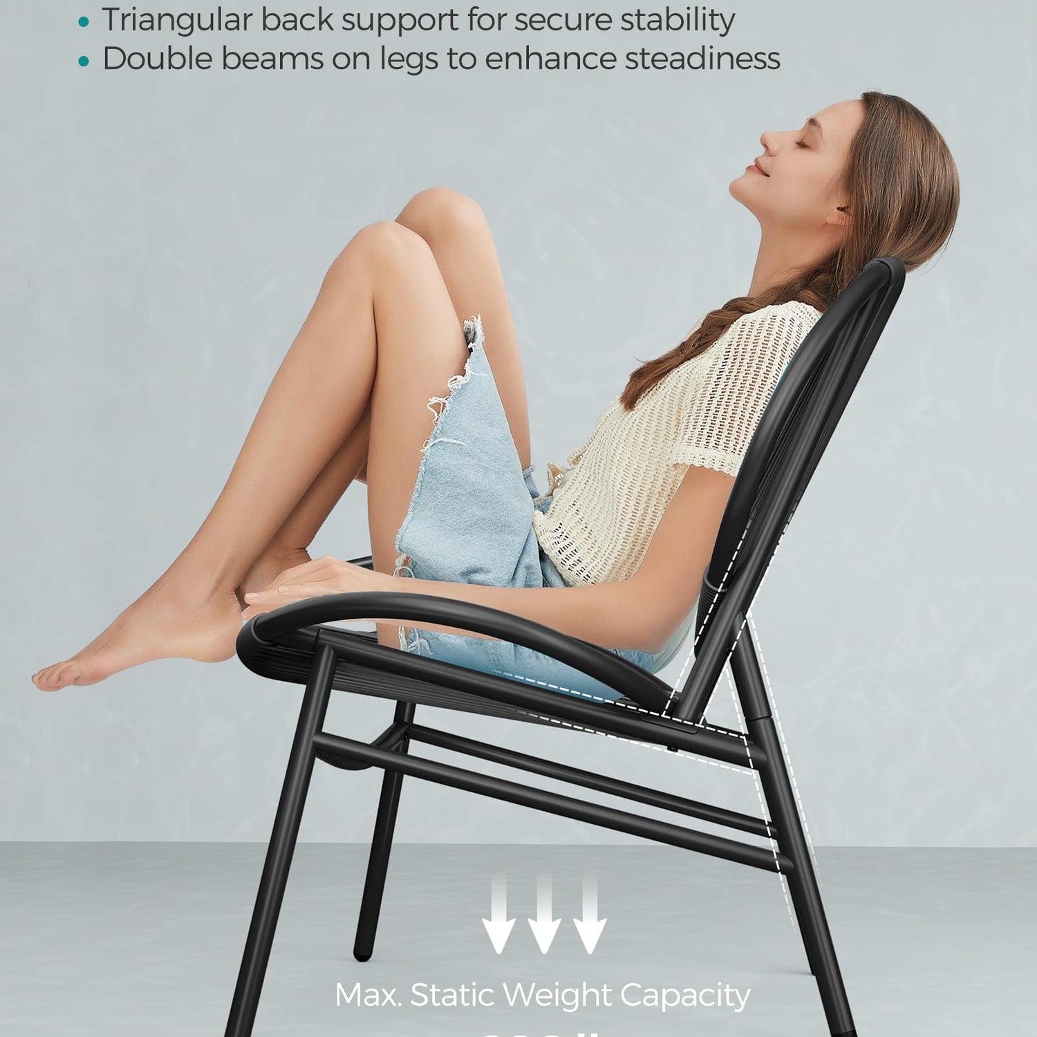 - [Sturdy and Strong] Designed with triangular back supports and double beams on the legs, each Acapulco chair can comfortably hold up to 286 lb. The added anti-slip pads and adjustable feet ensure stability, even on slightly uneven surfaces