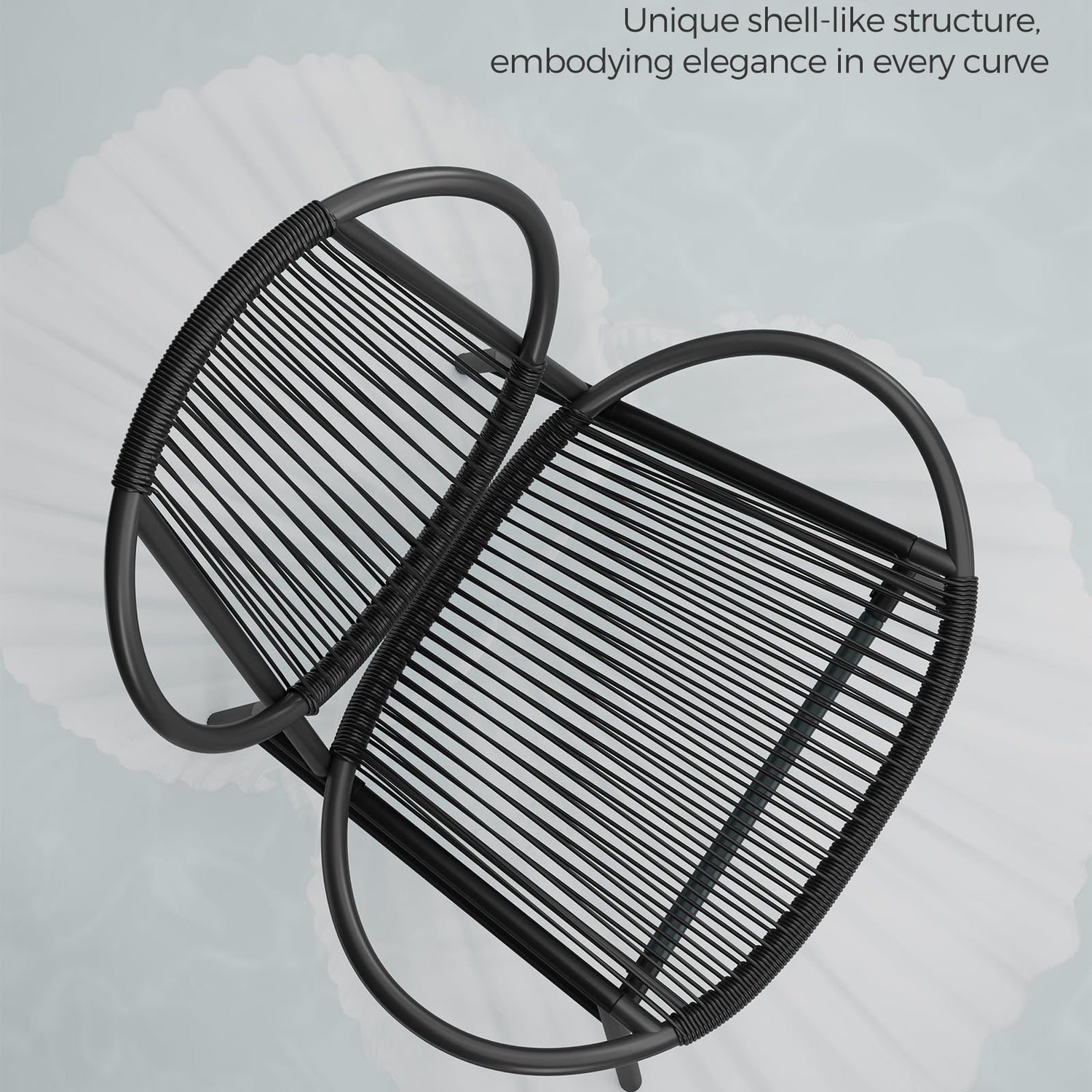 - [Elegant Design] Experience modern elegance with our unique shell-like structure. Its airy design and simple geometric lines make this patio furniture set a harmonious match for various styles