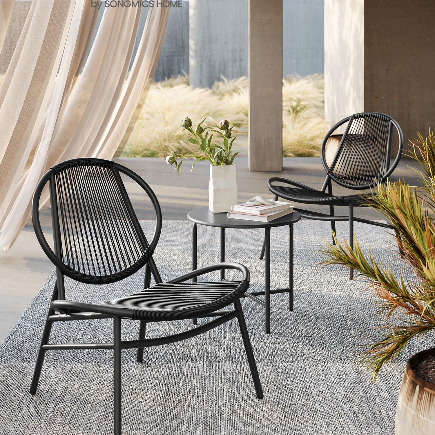 SONGMICS Patio Furniture Set 3 Pieces, Garden Bistro Set, Acapulco Chairs, Outdoor Seating, Side Table and 2 Chairs, Indoor and Outdoor Conversation Set, Balcony Porch, Ink Black UGGF021B01