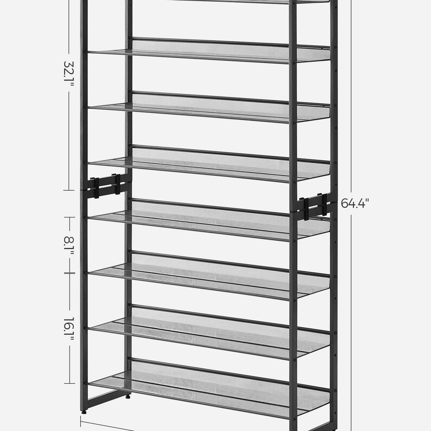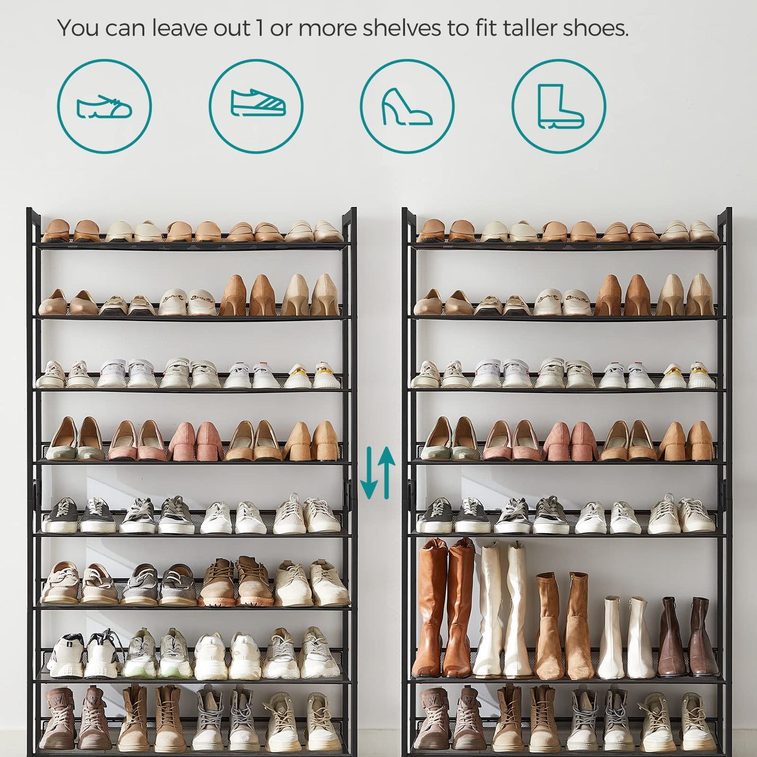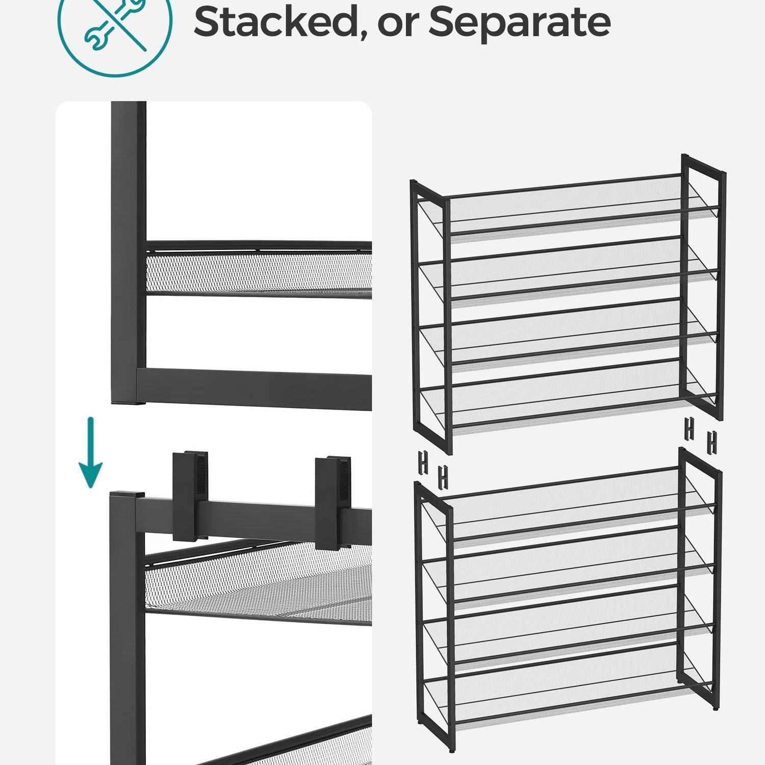 SONGMICS Shoe Rack, 8-Tier Shoe Organizer, Metal Rack for Garage, Set of 2, 4-Tier Stackable Shelf, with Adjustable Flat or Angled Shelves, 32-40 Pairs, Ink Black ULMR08B