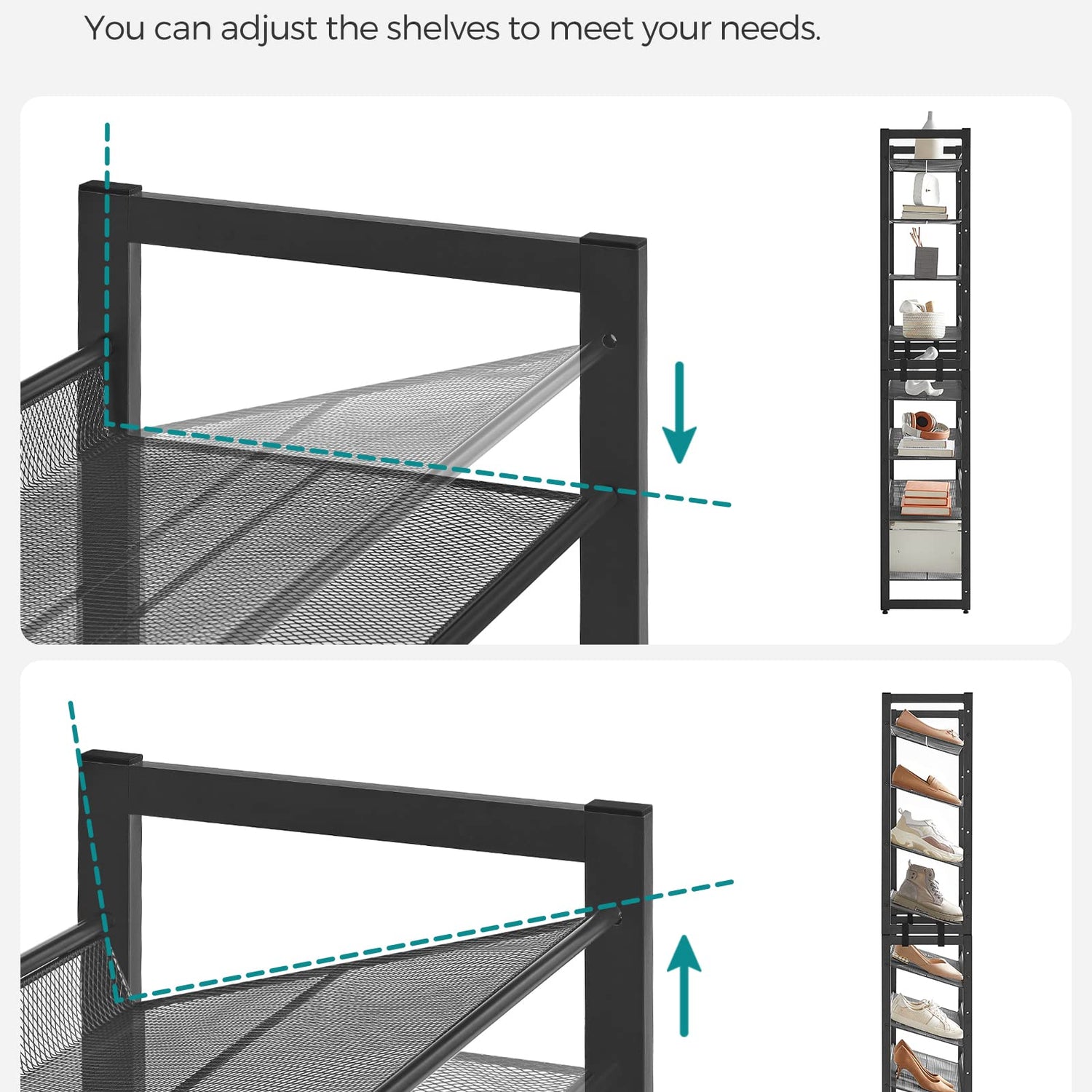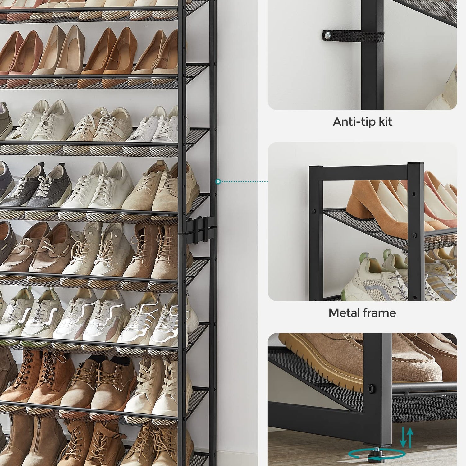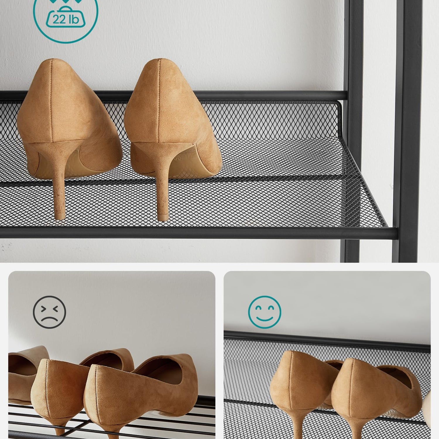 - [Sturdy, Stable, Safe] With a strong metal frame and dense mesh shelves, this shoe organizer can hold up to 22 lb on each shelf. Even better, it comes with adjustable feet to keep it stable even on uneven floors and an anti-tip kit for a safe home