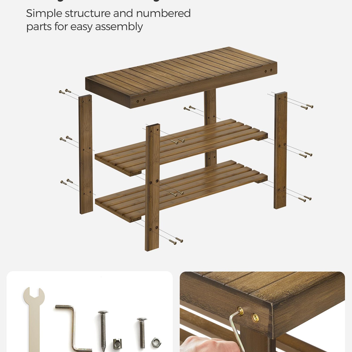 - 【EASY TO ASSEMBLE】With a simple structure and clear instructions, this shoe rack bench can be assembled in just a few minutes. Enjoy your new shoe rack right away!