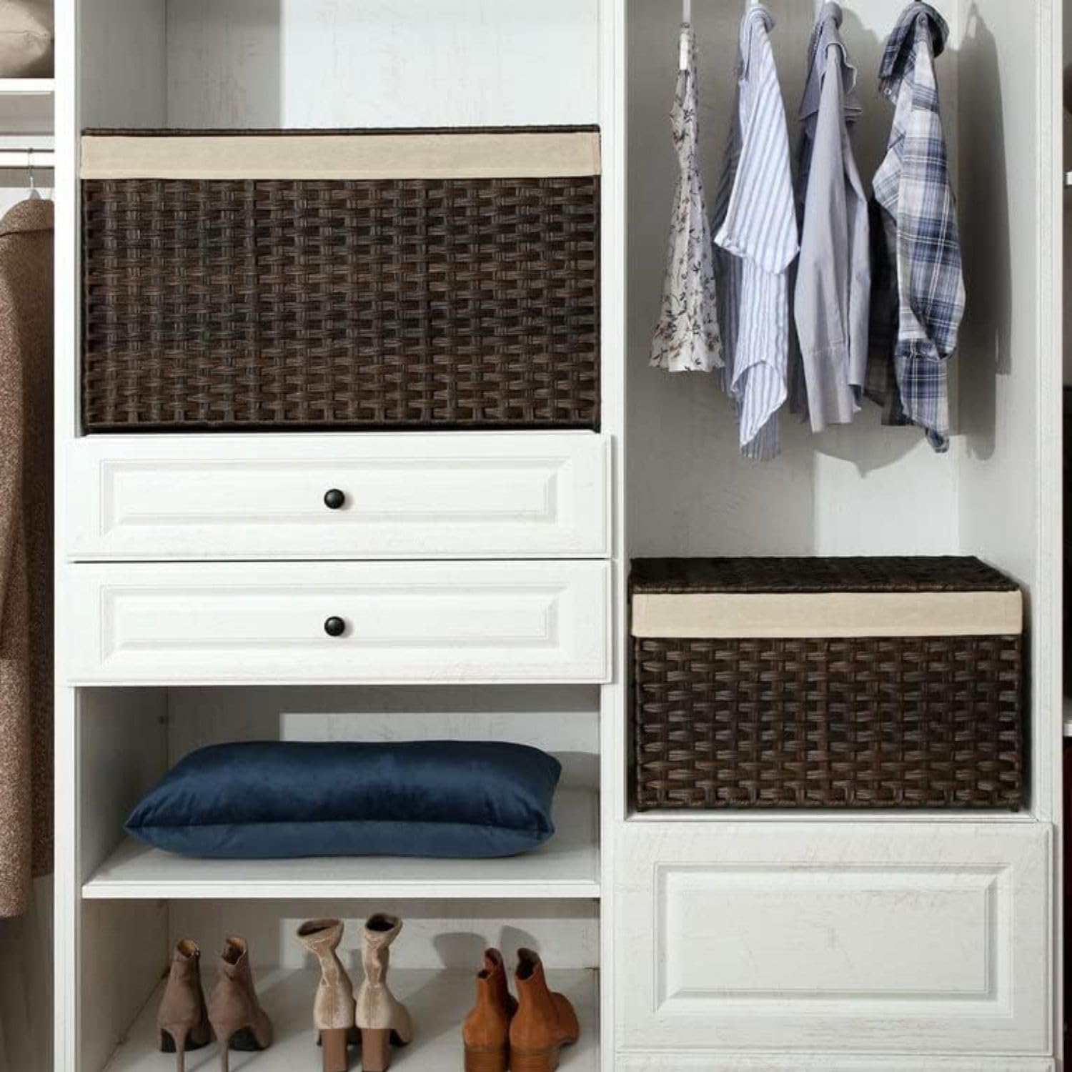 This beautiful hand-woven storage basket with a rustic rattan-like surface will serve as the focal centerpiece of any closet, kid's room, bedroom, living room, or laundry room.