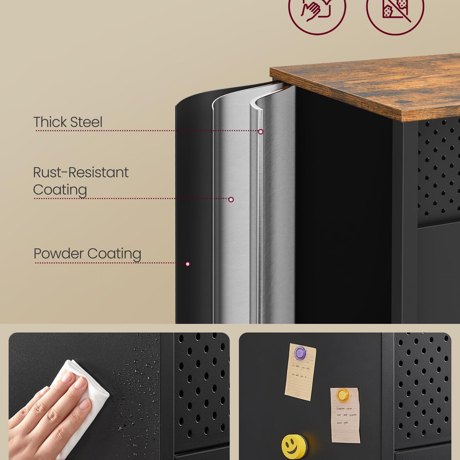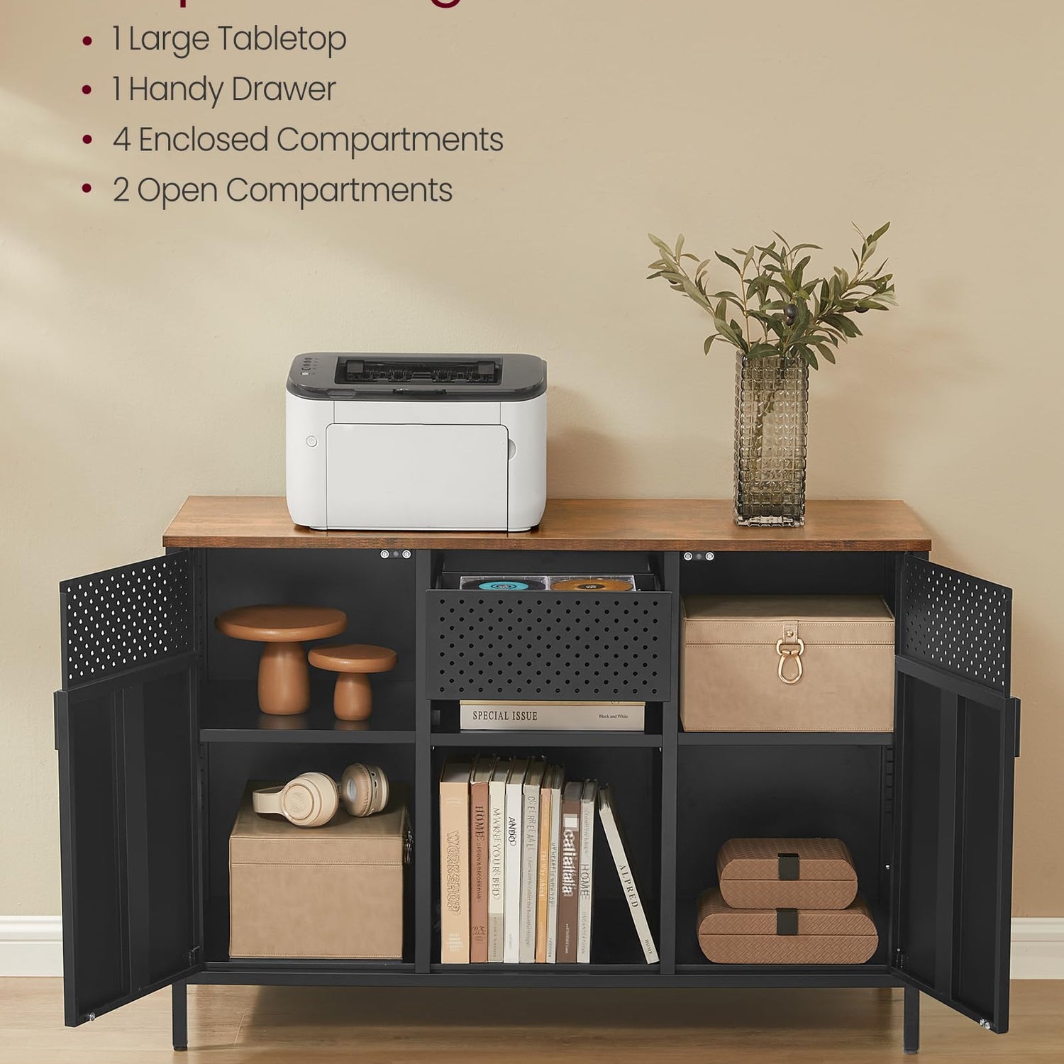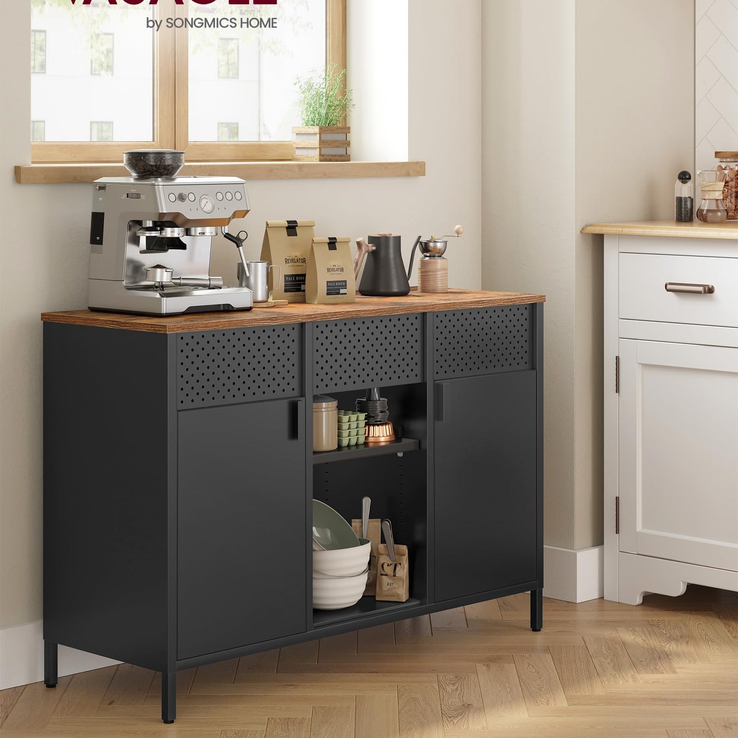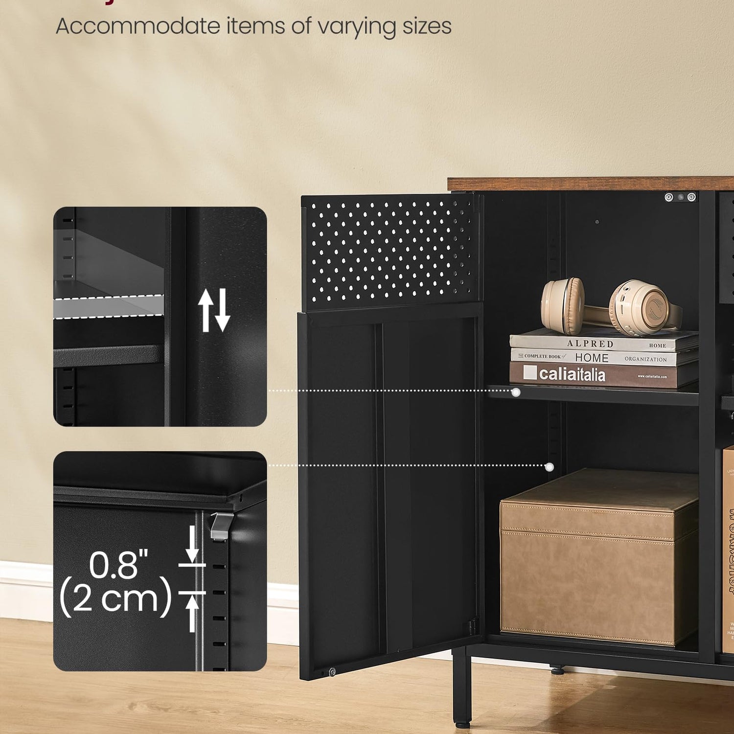 SONGMICS Storage Cabinet, Metal Cabinet, Sideboard with 2 Doors, Magnetic Closure, Adjustable Shelves, Steel Frame, Rustic Brown and Matte Black ULSC204B01