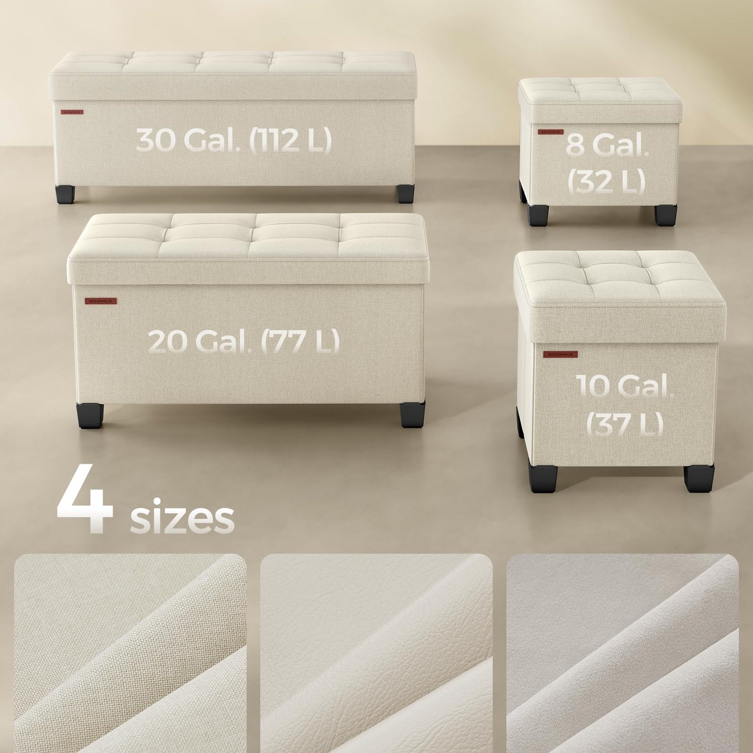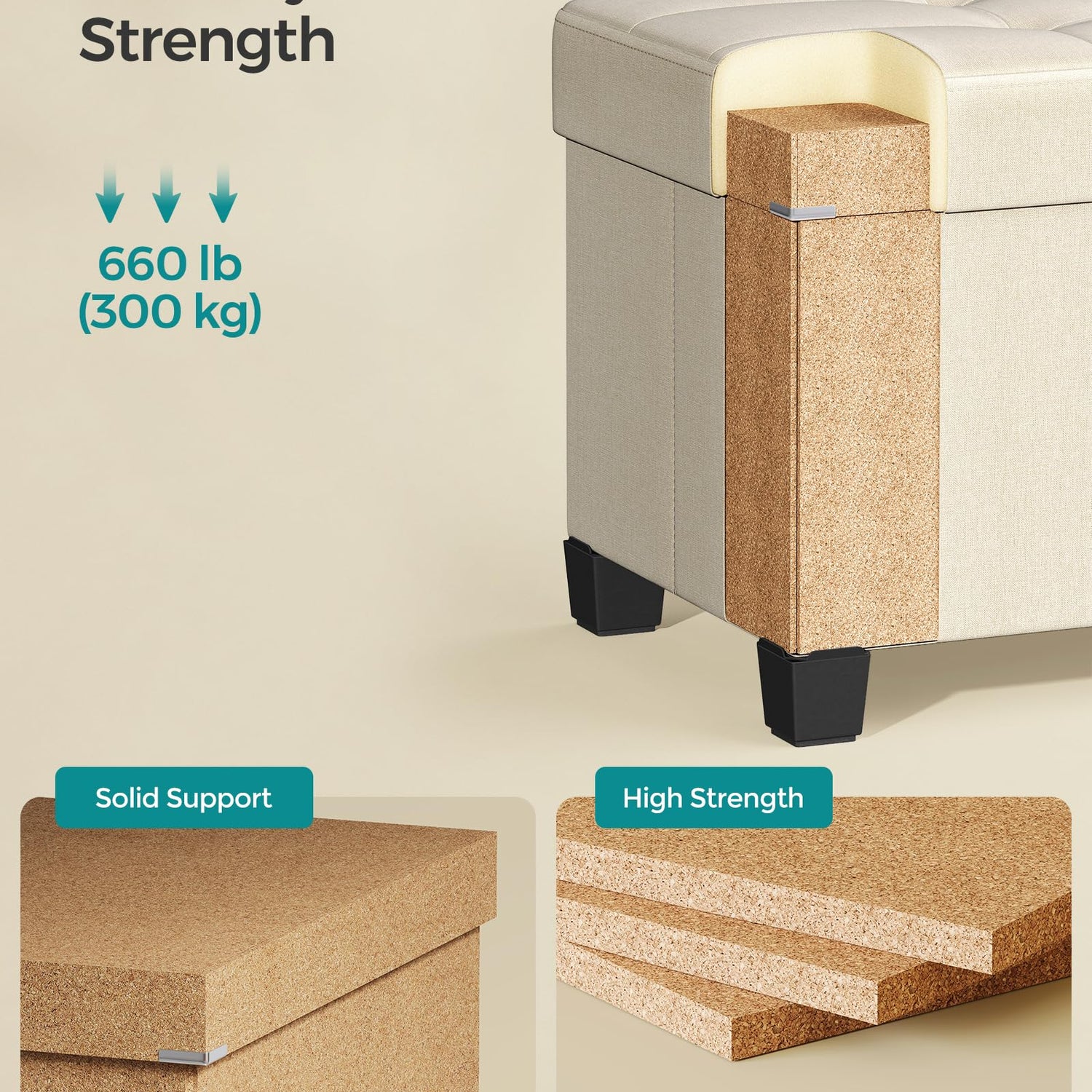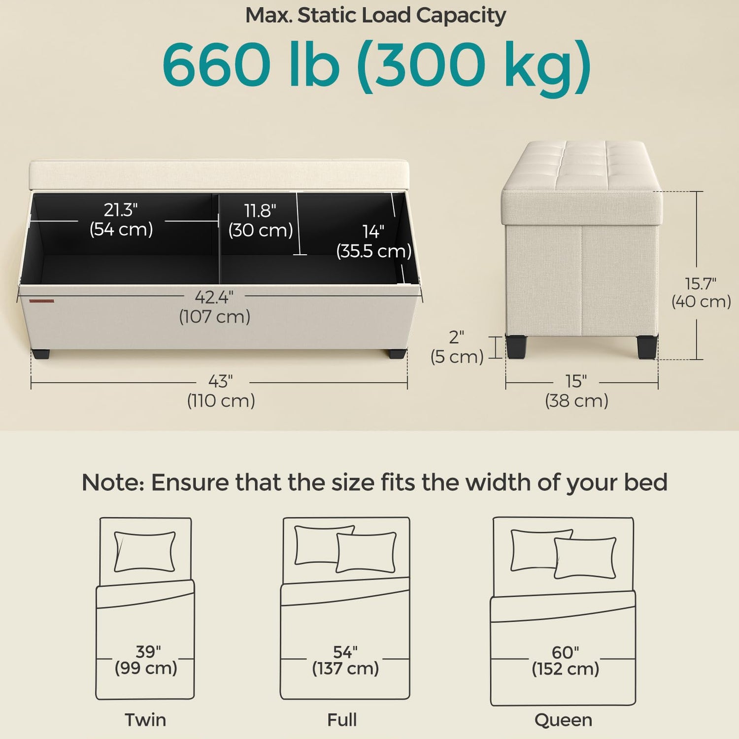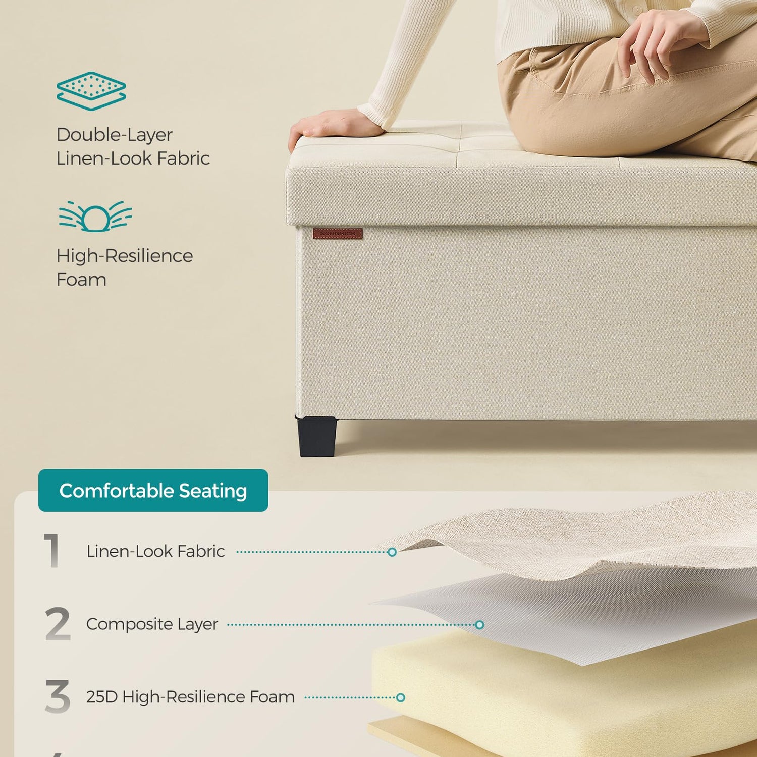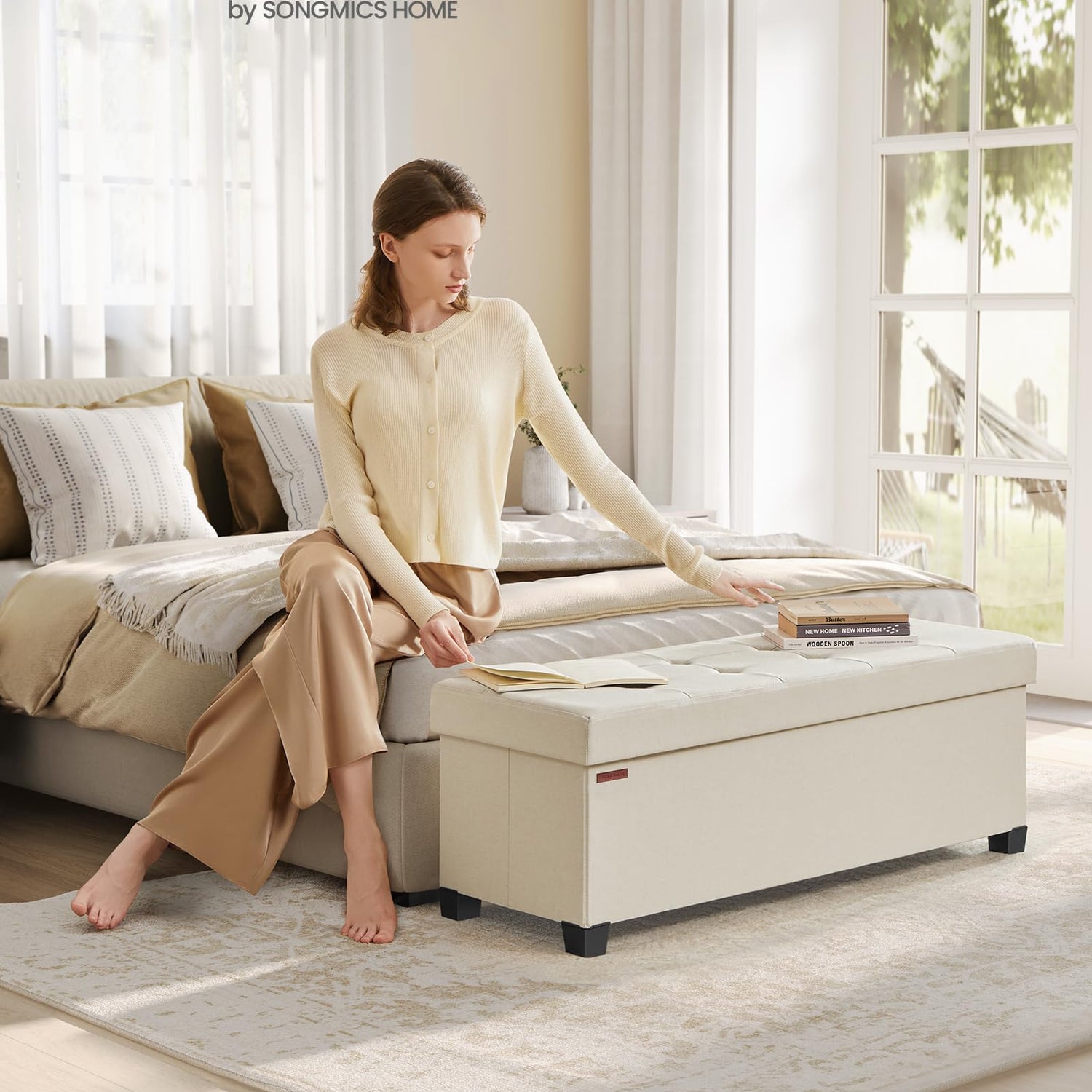 SONGMICS Storage Ottoman Bench, Foldable Foot Rest with Legs, 15 x 43 x 15.7 Inches, End of Bed Bench, Storage Chest, Load up to 660 lb, for Living Room, Bedroom, Entryway, Cream White ULSF018W01