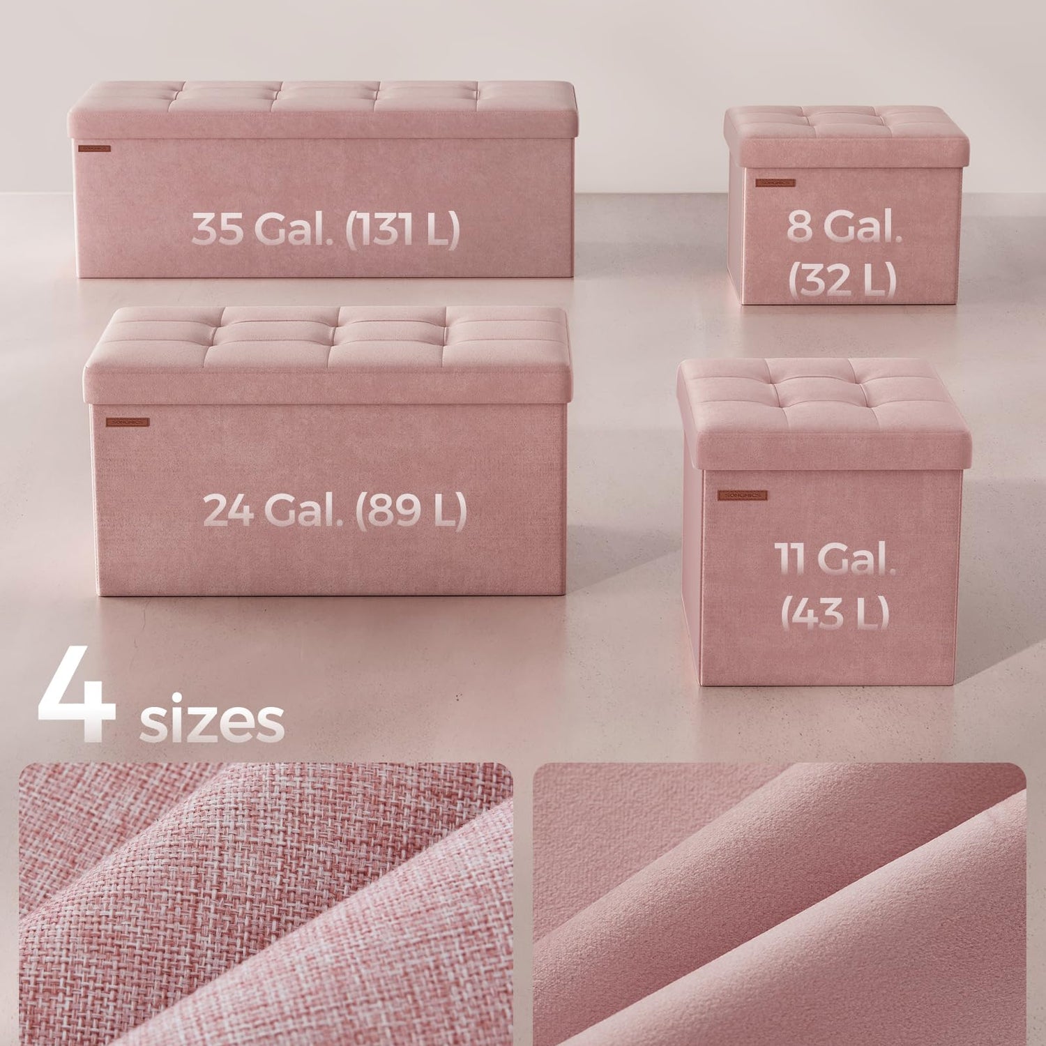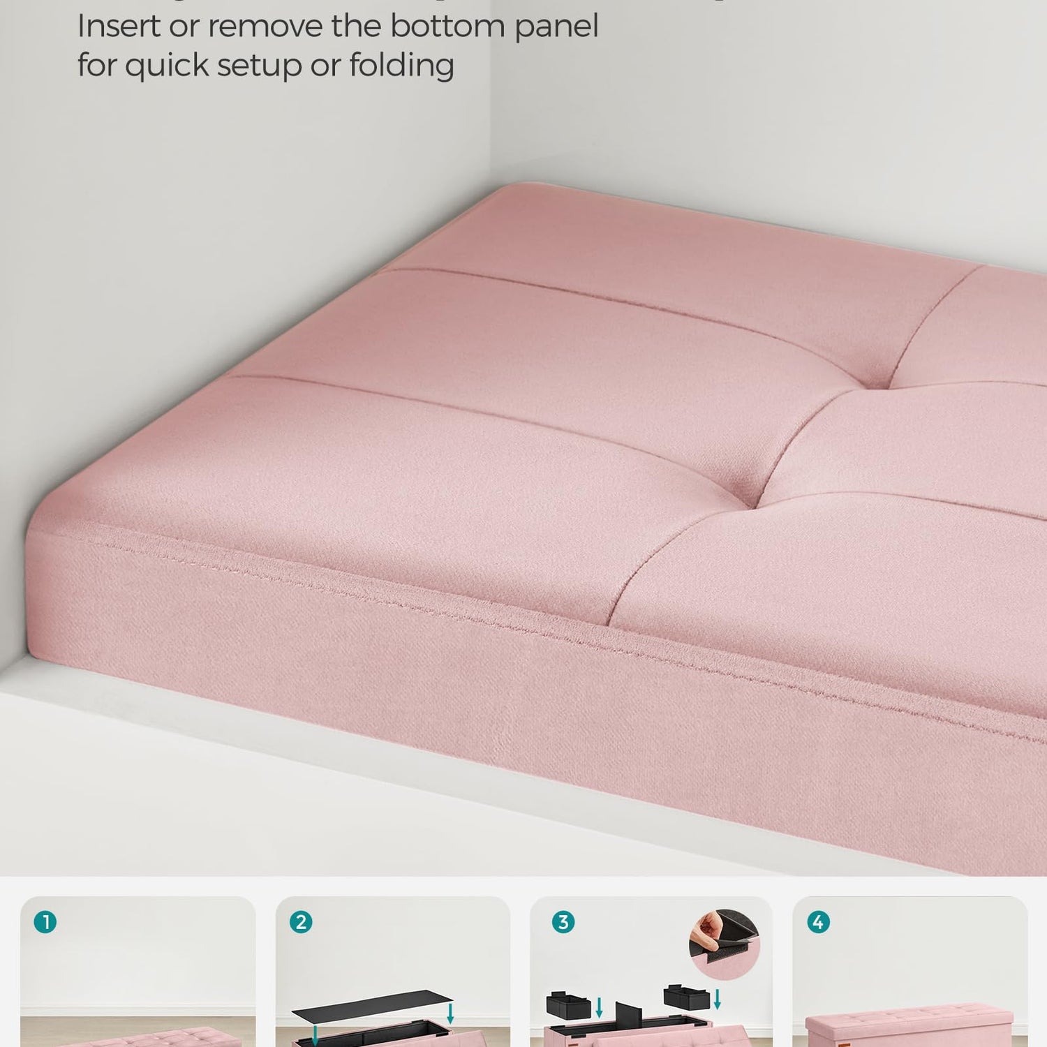 SONGMICS Storage Ottoman Bench, Foldable Ottoman Foot Rest, 15 x 43 x 15 Inches, End of Bed Bench, Storage Chest, Load up to 660 lb, for Living Room, Bedroom, Entryway, Jelly Pink ULSF277R01