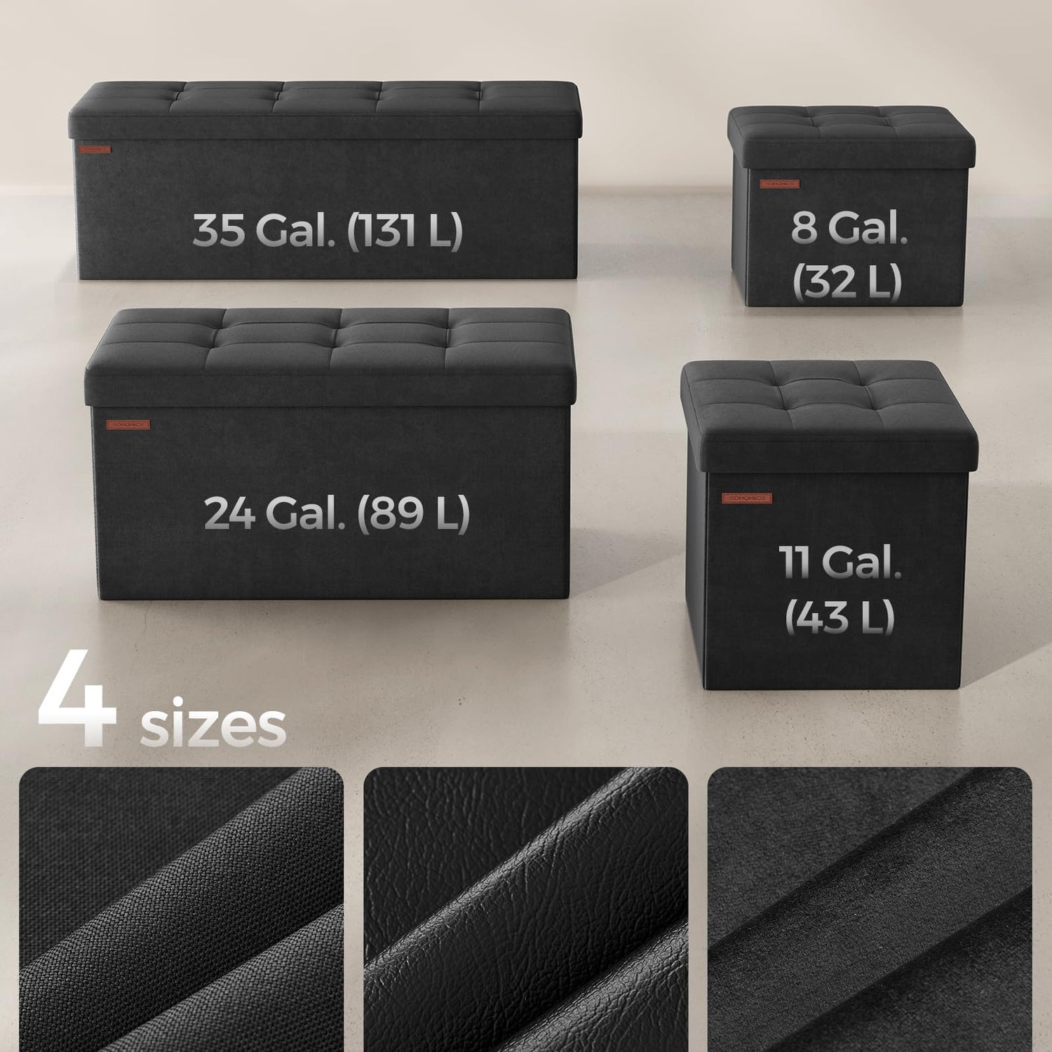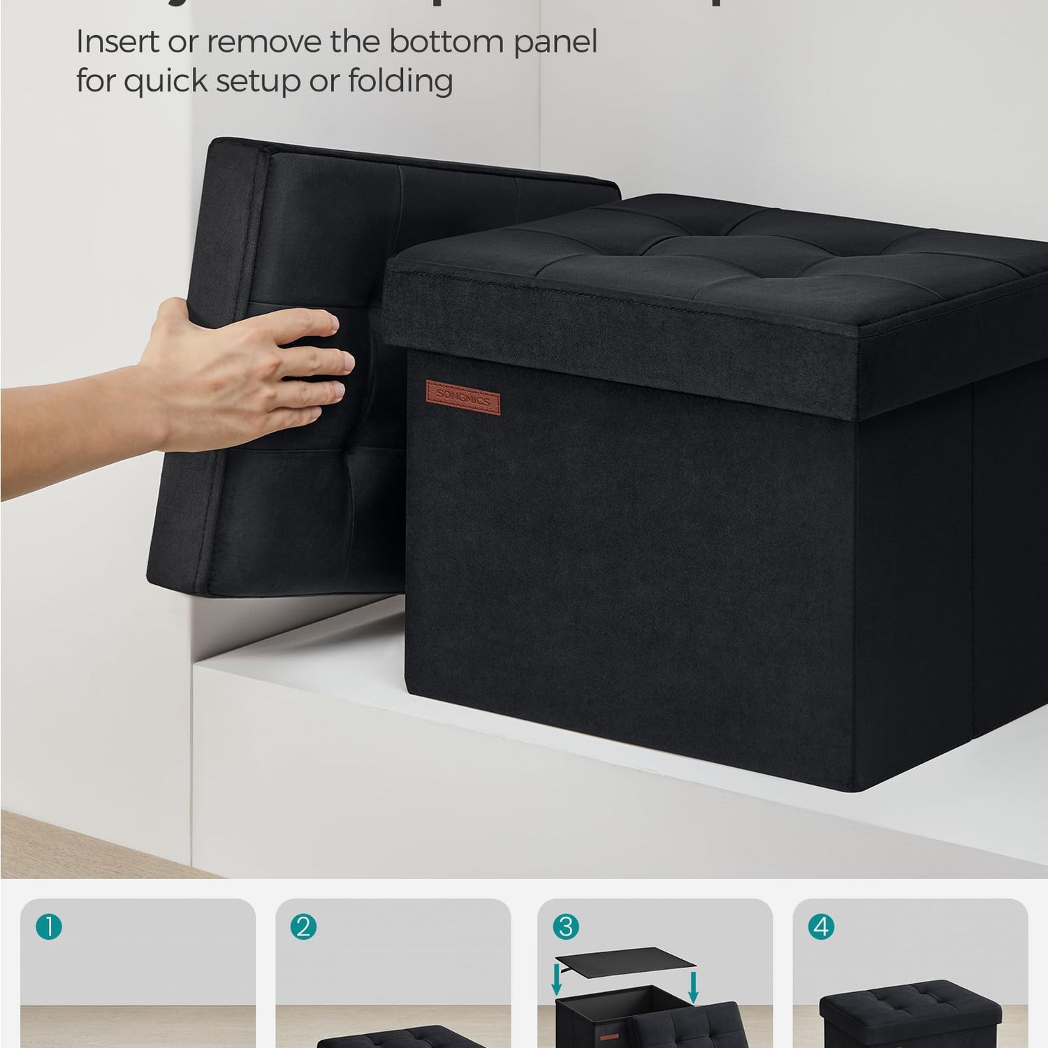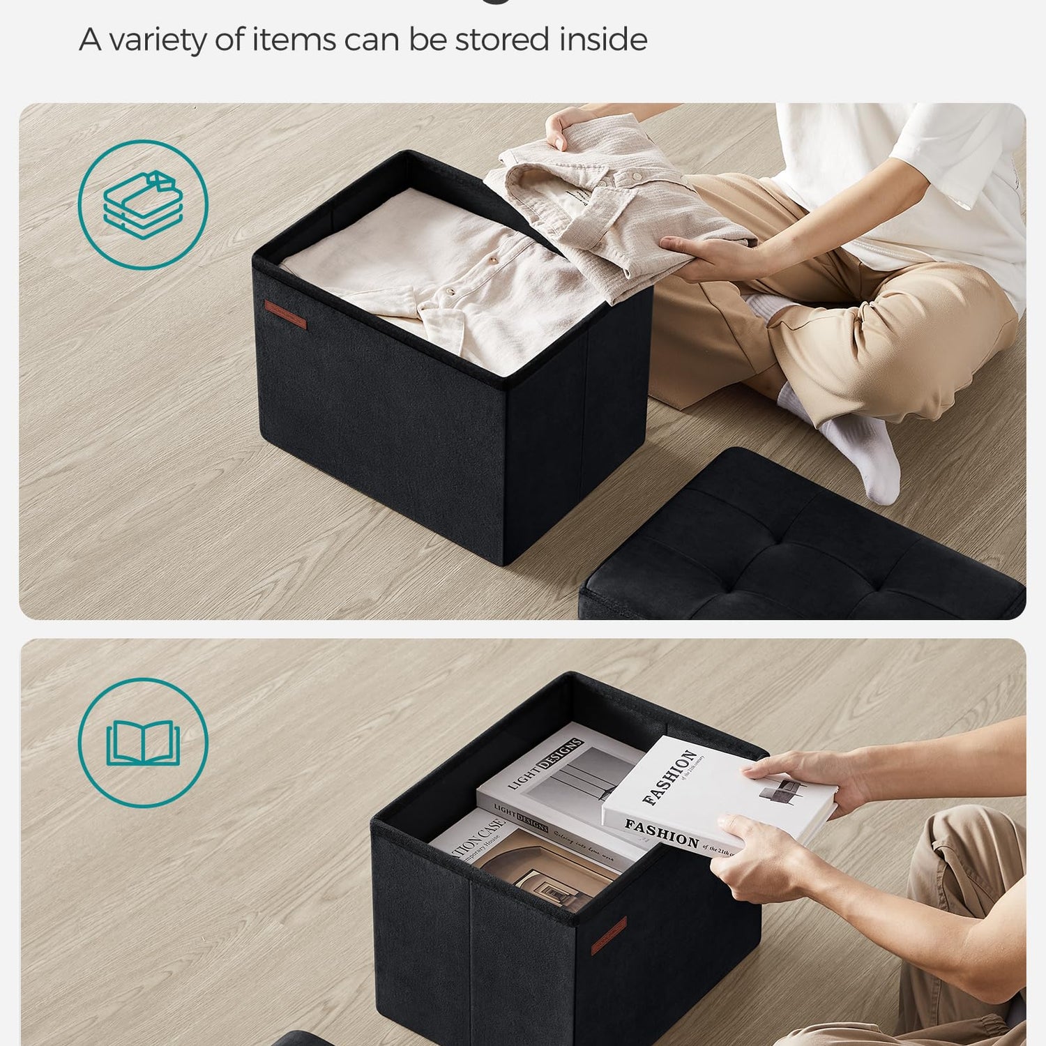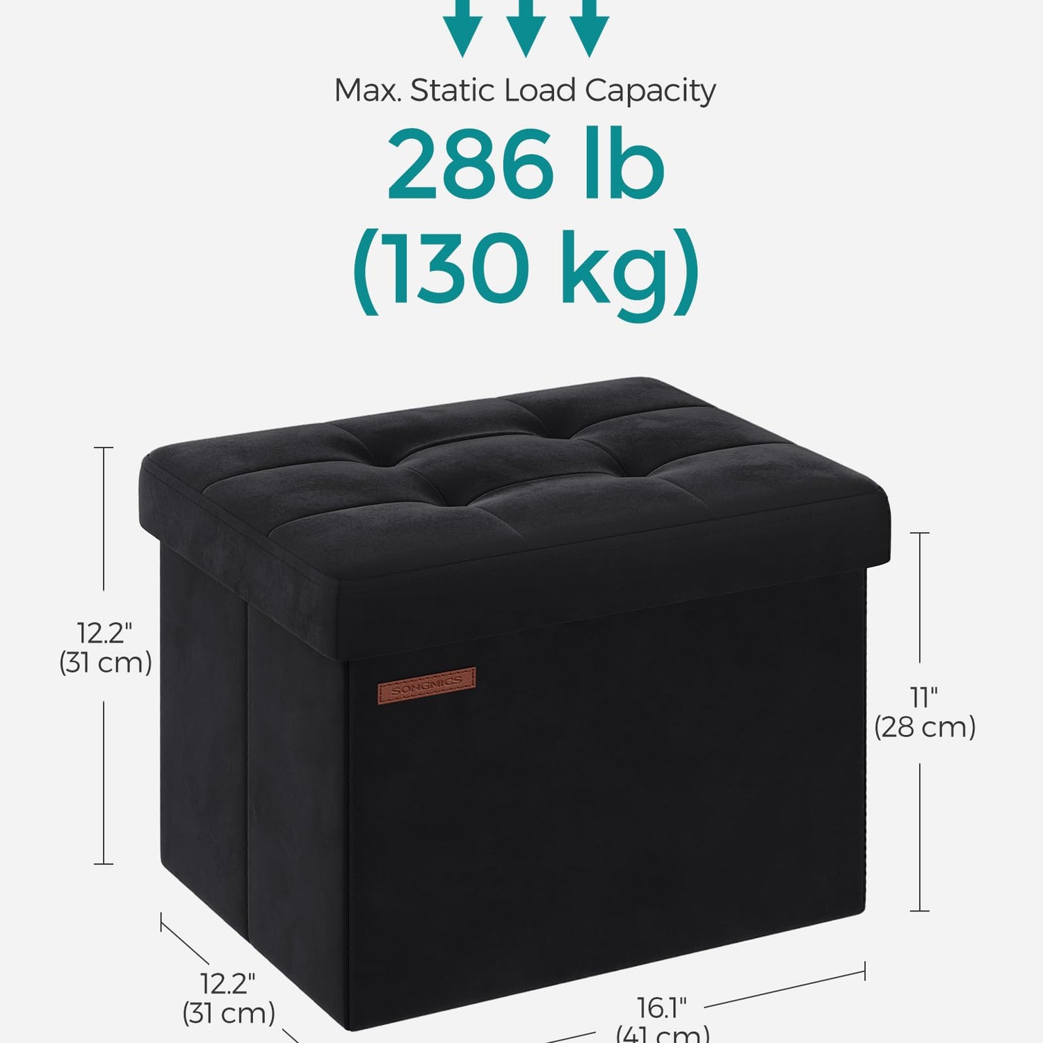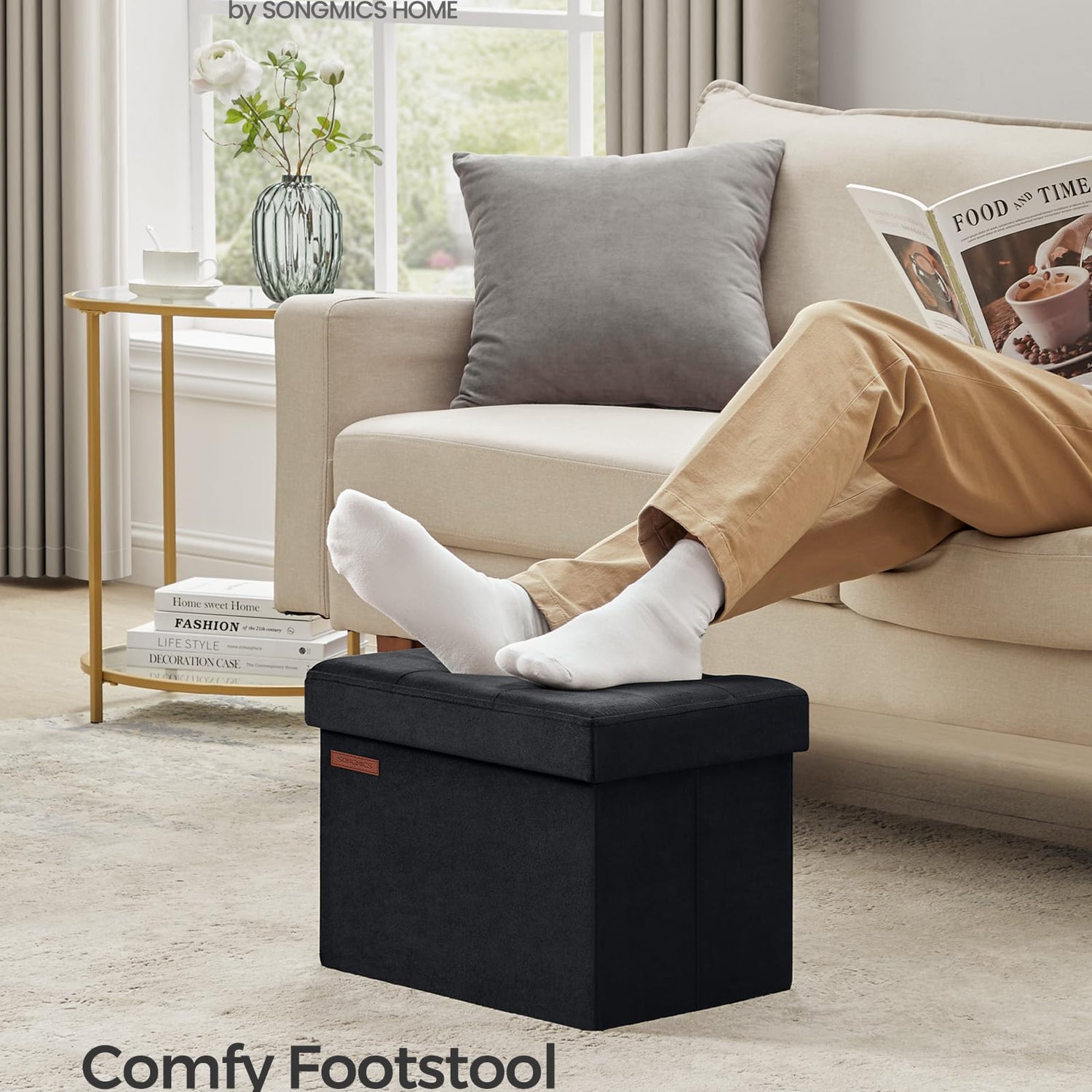 SONGMICS Storage Ottoman, Foldable Small Ottoman Foot Rest, 12.2 x 16.1 Inches Foot Stool, Load up to 286 lb, for Living Room, Bedroom, Dorm, Ink Black ULSF200B01
