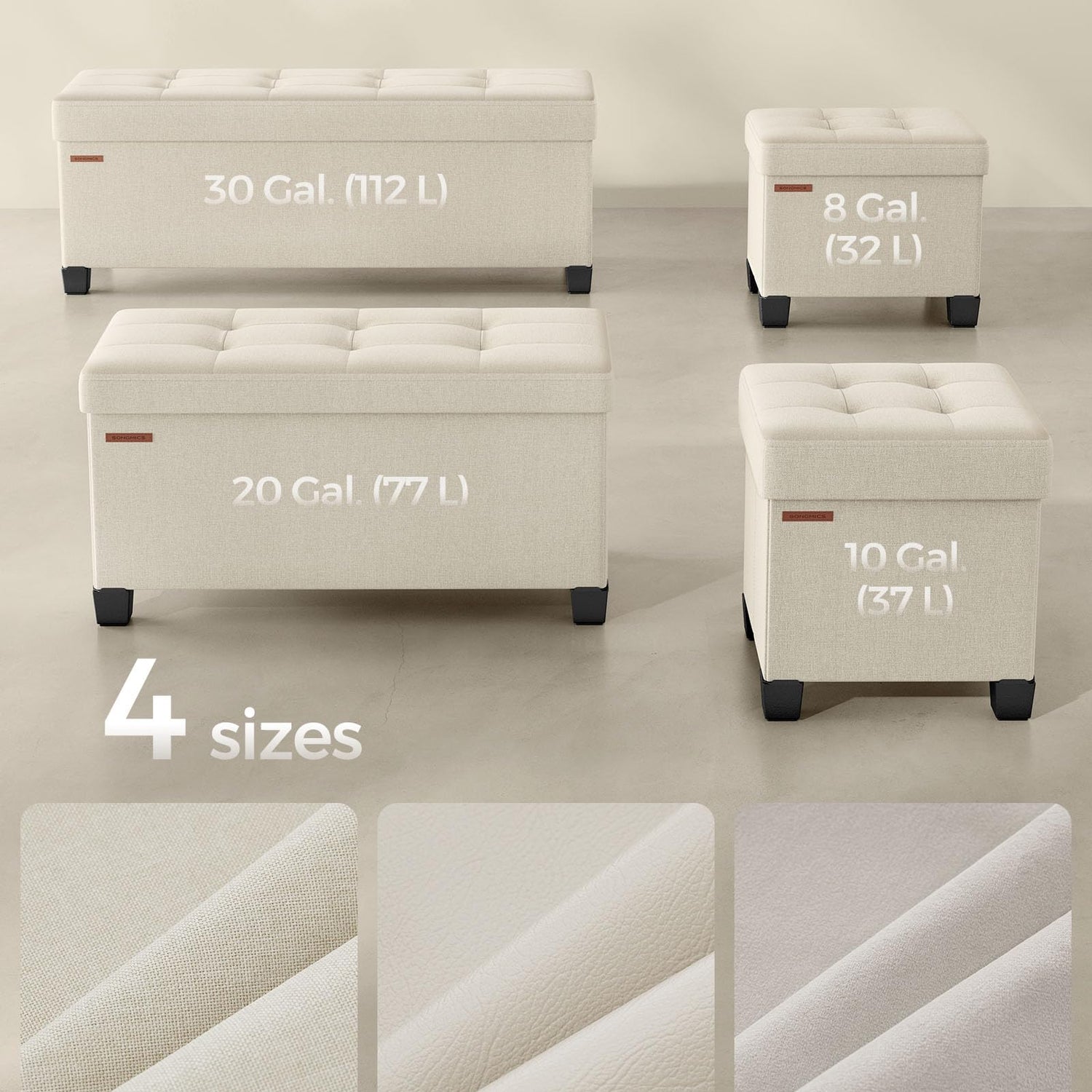 - 【EXTRA STORAGE】With a volume of 10 gallons (37 L) and a size of 15"D x 15"W x 15.7"H (38 x 38 x 40 cm), this foot stool is ideal for stowing away your clothes, books, and more
