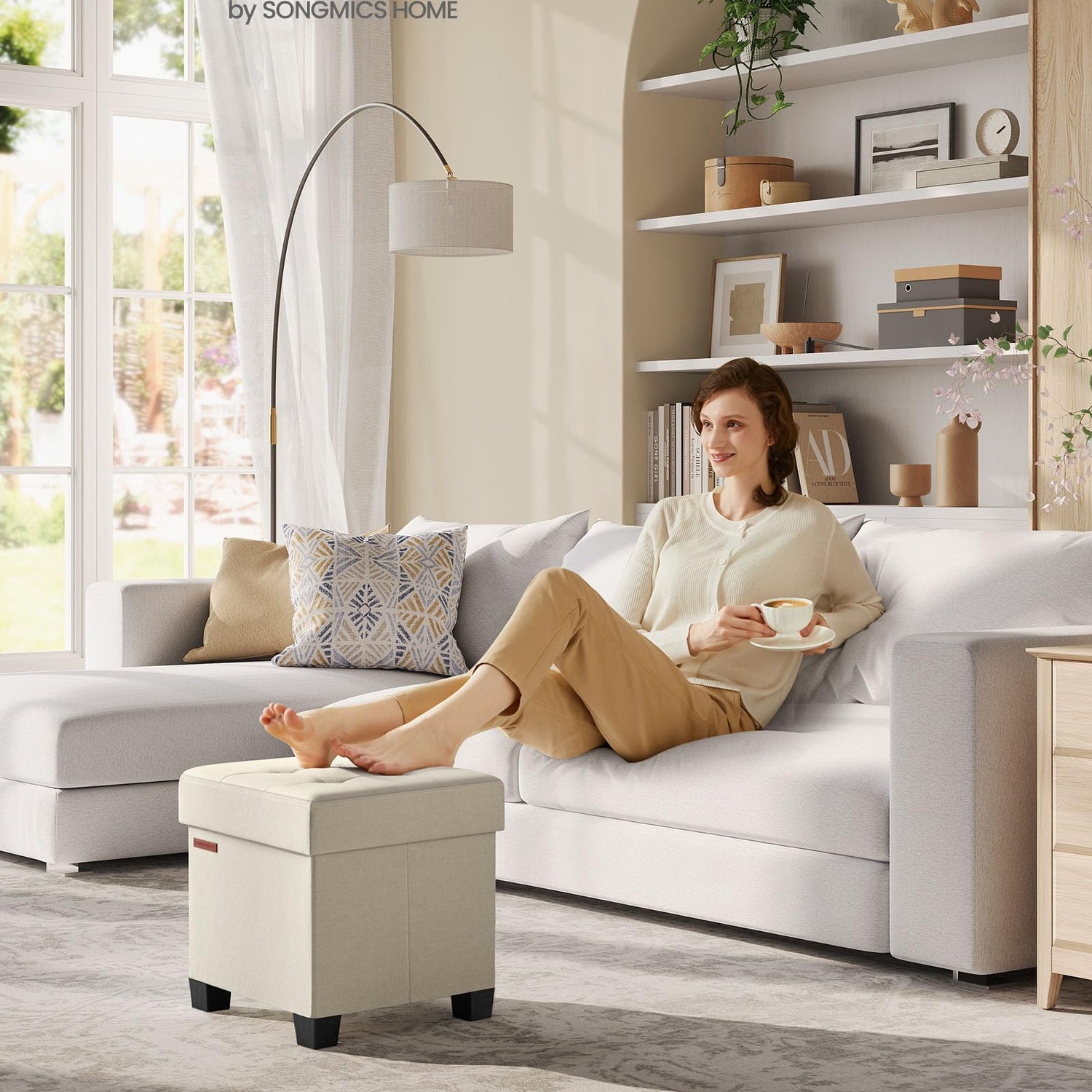 SONGMICS Storage Ottoman, Small Ottoman Foot Rest with Legs, 15 x 15 x 15.7 Inches Foot Stool, Ottoman with Storage, Load up to 660 lb, for Living Room, Bedroom, Dorm, Cream White ULSF014W01