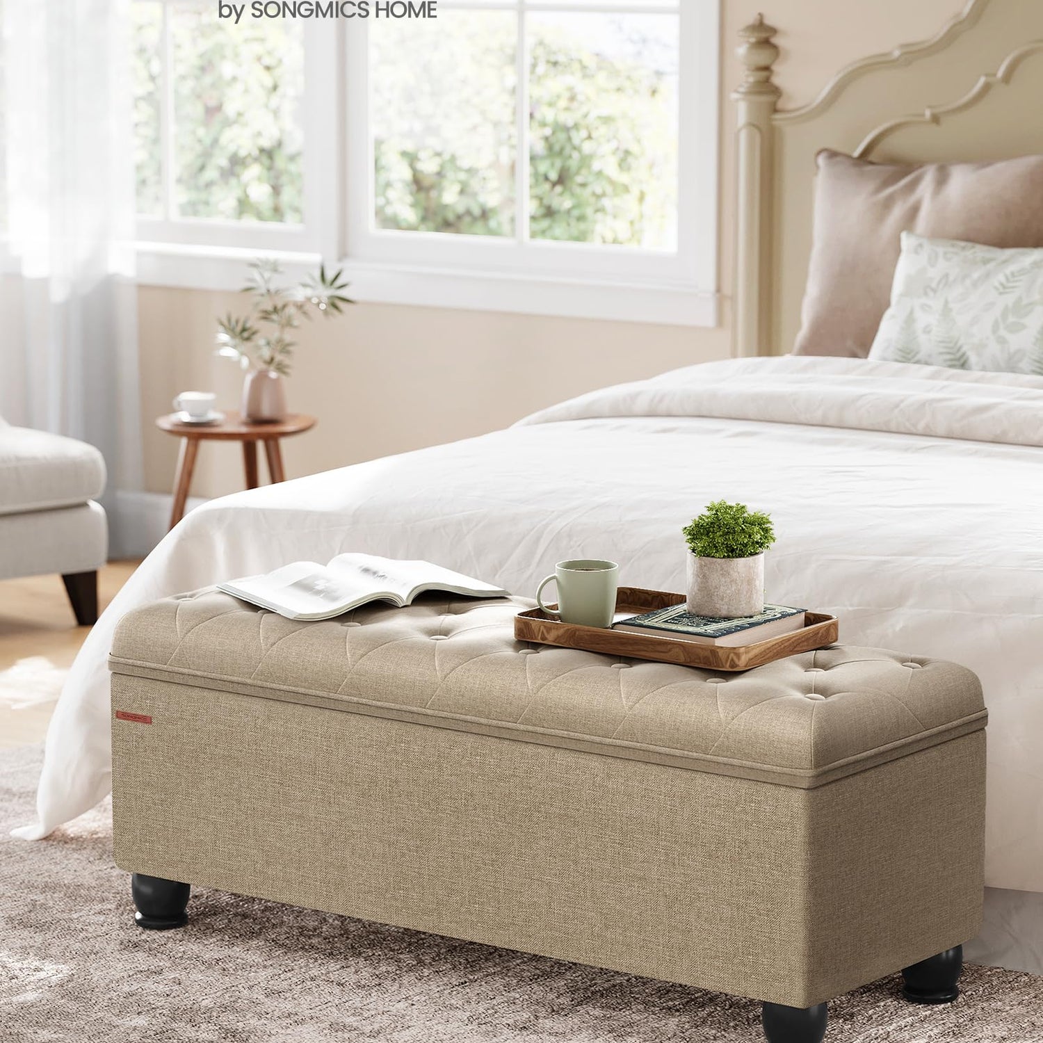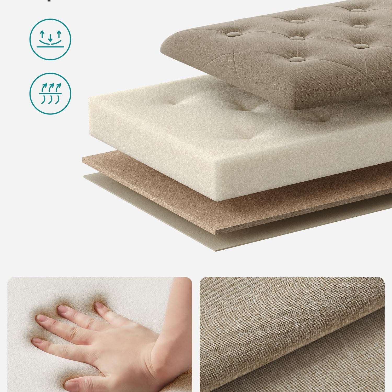 - [Comfort Meets Style] Sit in comfort with a 2.4" (6 cm) thick high-density foam seat that resists deformation. Coupled with a premium linen-look fabric and a tastefully tufted design, this storage bench blends comfort with style effortlessly
