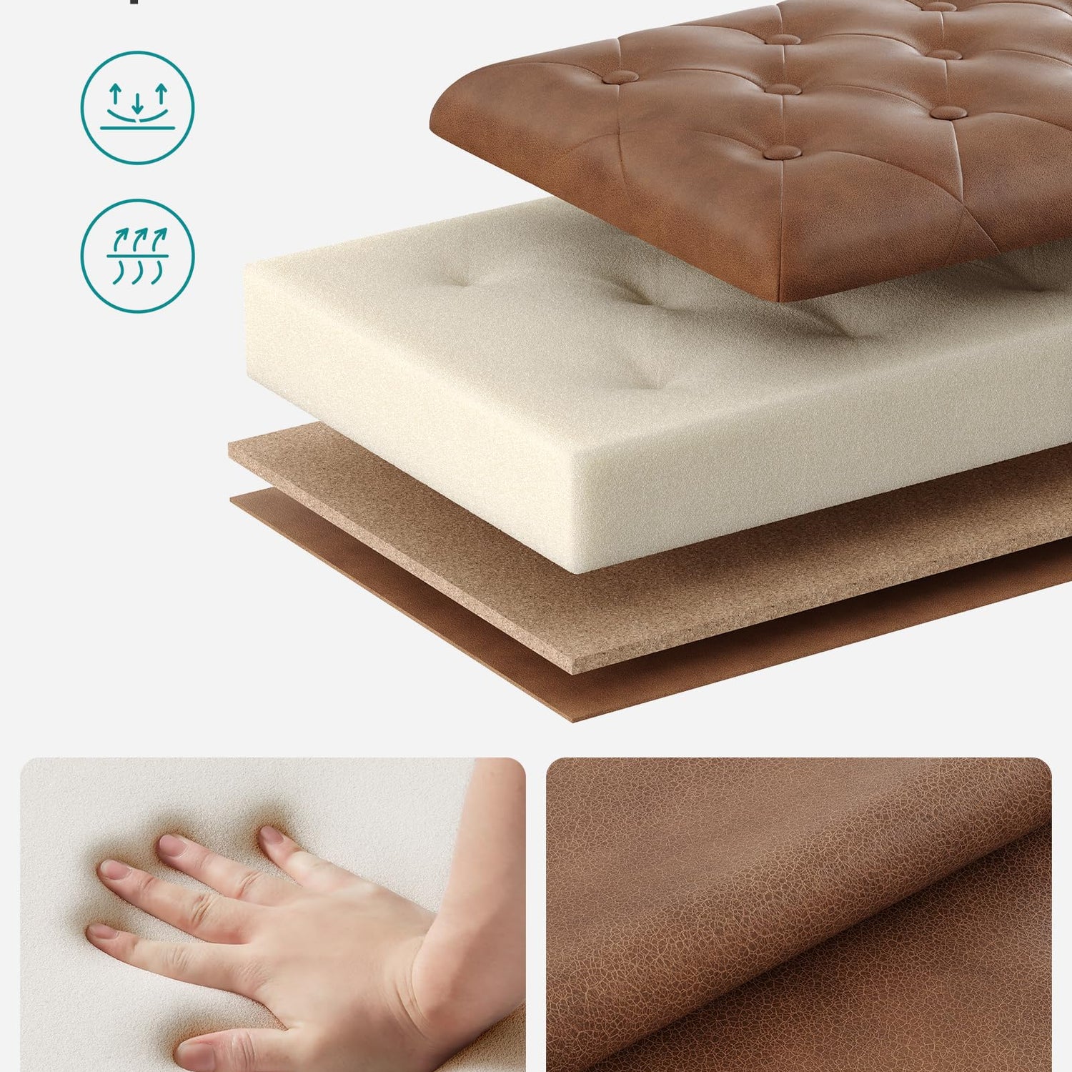 - [Comfort Meets Style] Sit in comfort with a 2.4" (6 cm) thick high-density foam seat that resists deformation. Coupled with a premium synthetic leather and a tastefully tufted design, this storage bench blends comfort with style effortlessly