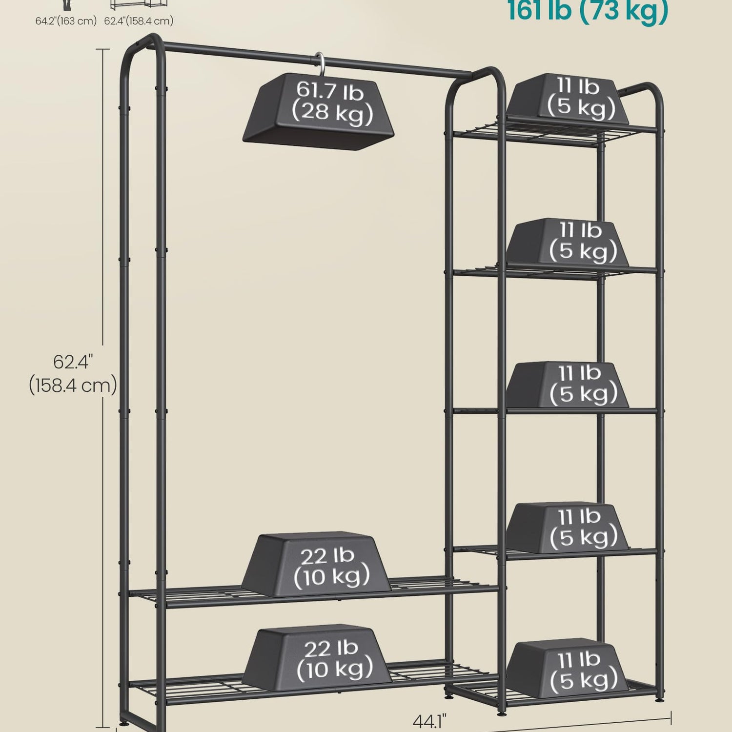 SONGMICS Wardrobe Closet, 44.1 Inch Large Portable Closet, Clothes Rack for Hanging Clothes,Heavy Duty Garment Rack, Storage Organizer with Shelves, 44.1 x 11.4 x 62.4 Inches, Black ULGR462B01