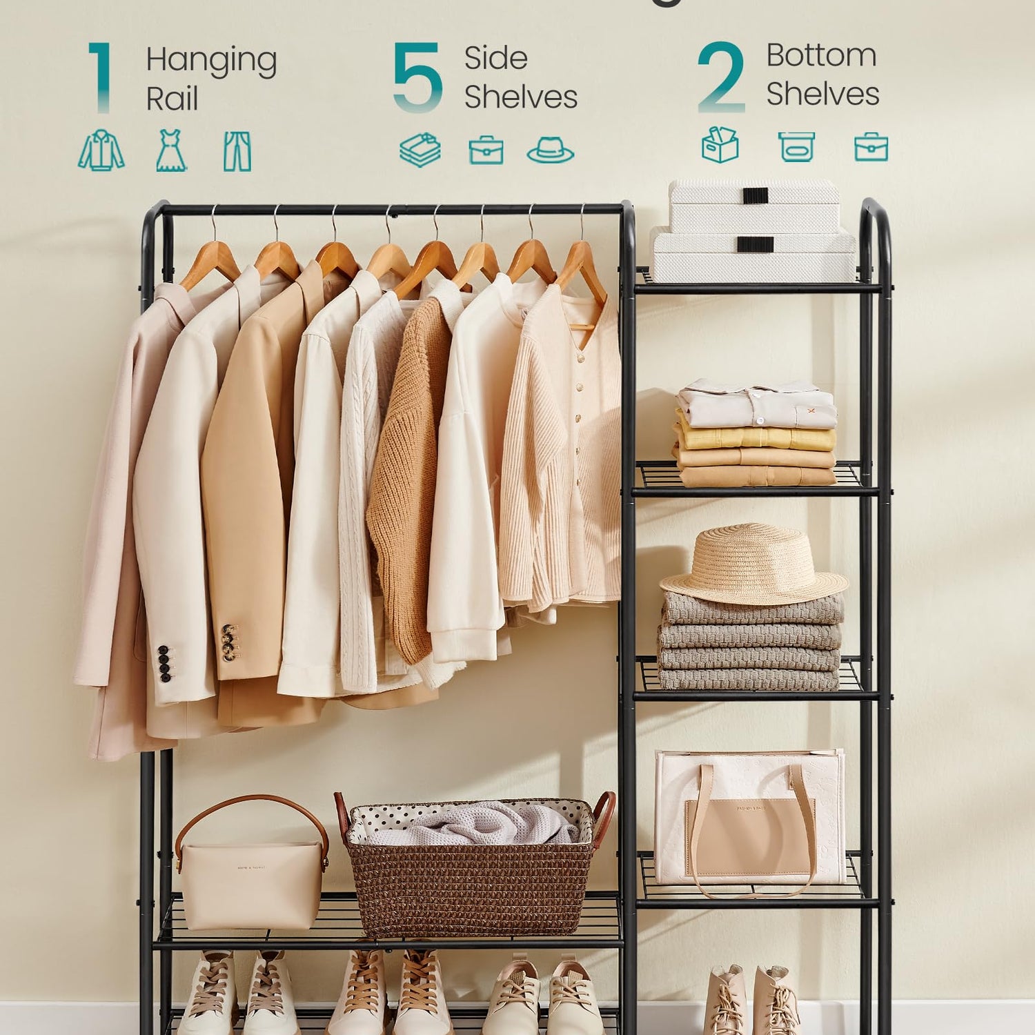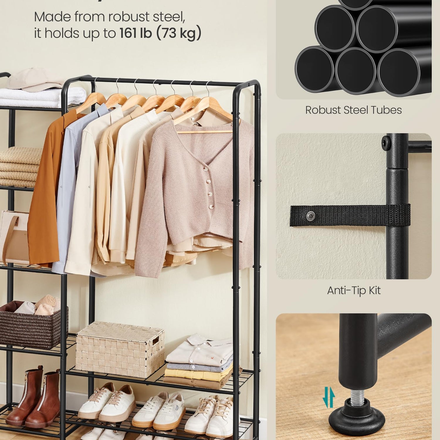- 【STURDY AND DURABLE】Constructed from reinforced steel, this clothes rack is built to last and can support heavy clothing items. Unlike plastic connectors, the steel tubes are connected with screws to ensure a stable structure