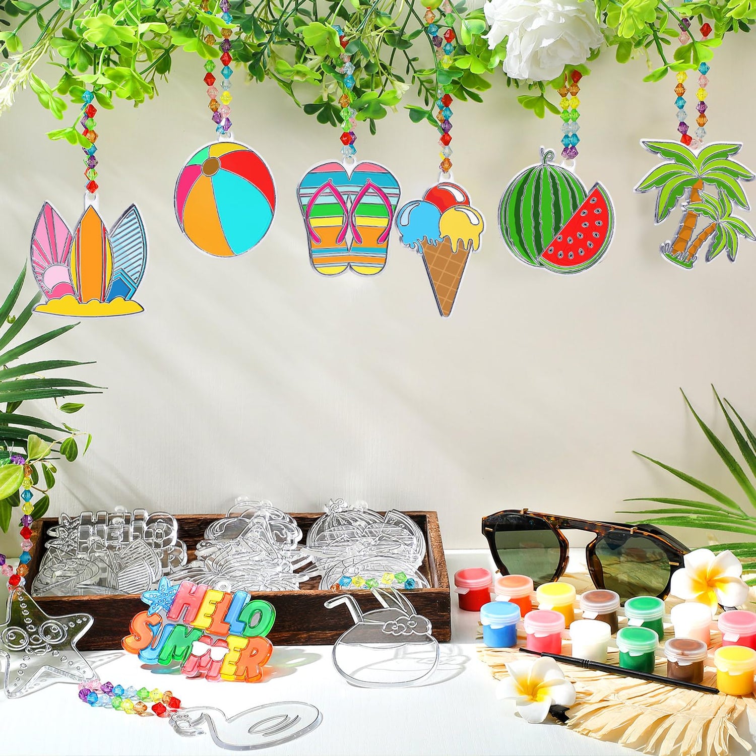 - Summer Theme Designs: the DIY painting sun catcher is designed with ten classic summer patterns and matched with 12 different paints; Use your imagination to design the summer sun catcher you want; Painting summer suncatchers is not only a fun activity but also a great way to relax and reduce stress