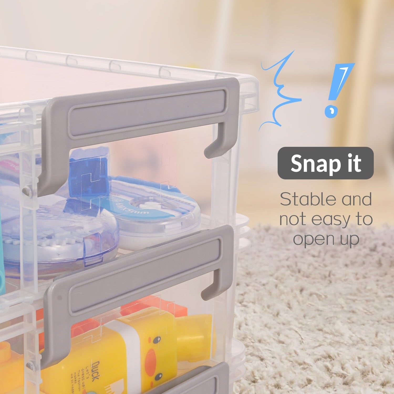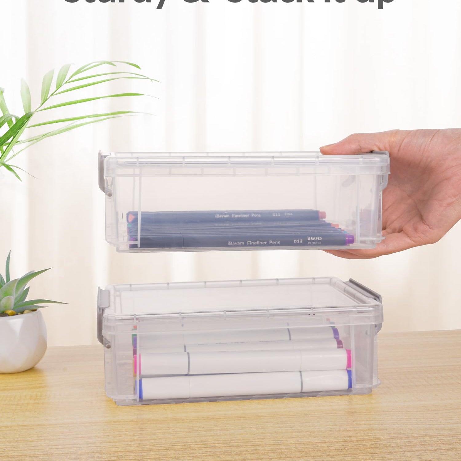 - Secure Snap-tight Lid and Handles: With bilateral secure latch handles, the lids can be tightly closed. The well-made lip makes it easy to open and close. The tight-fitting lid keeps the art supplies for a secure hold when it falls.