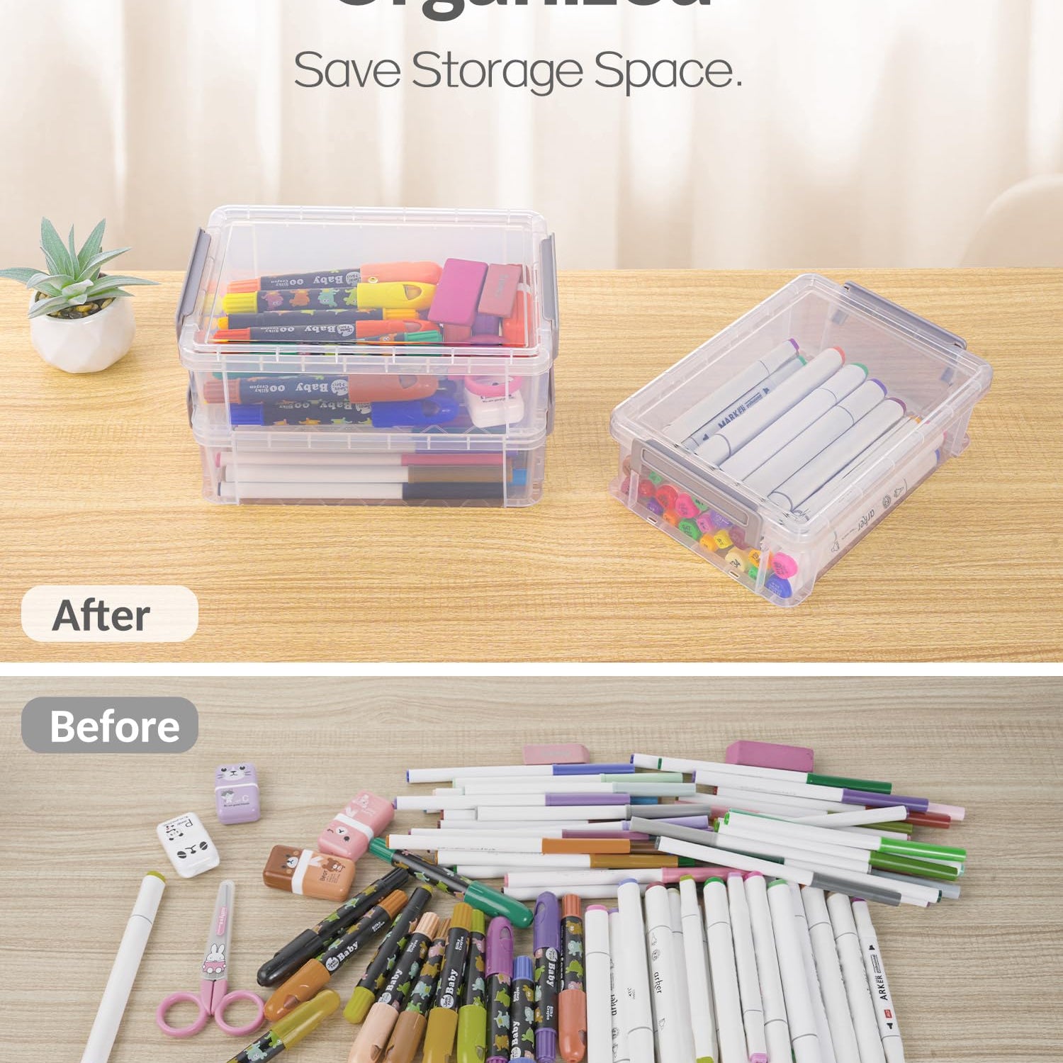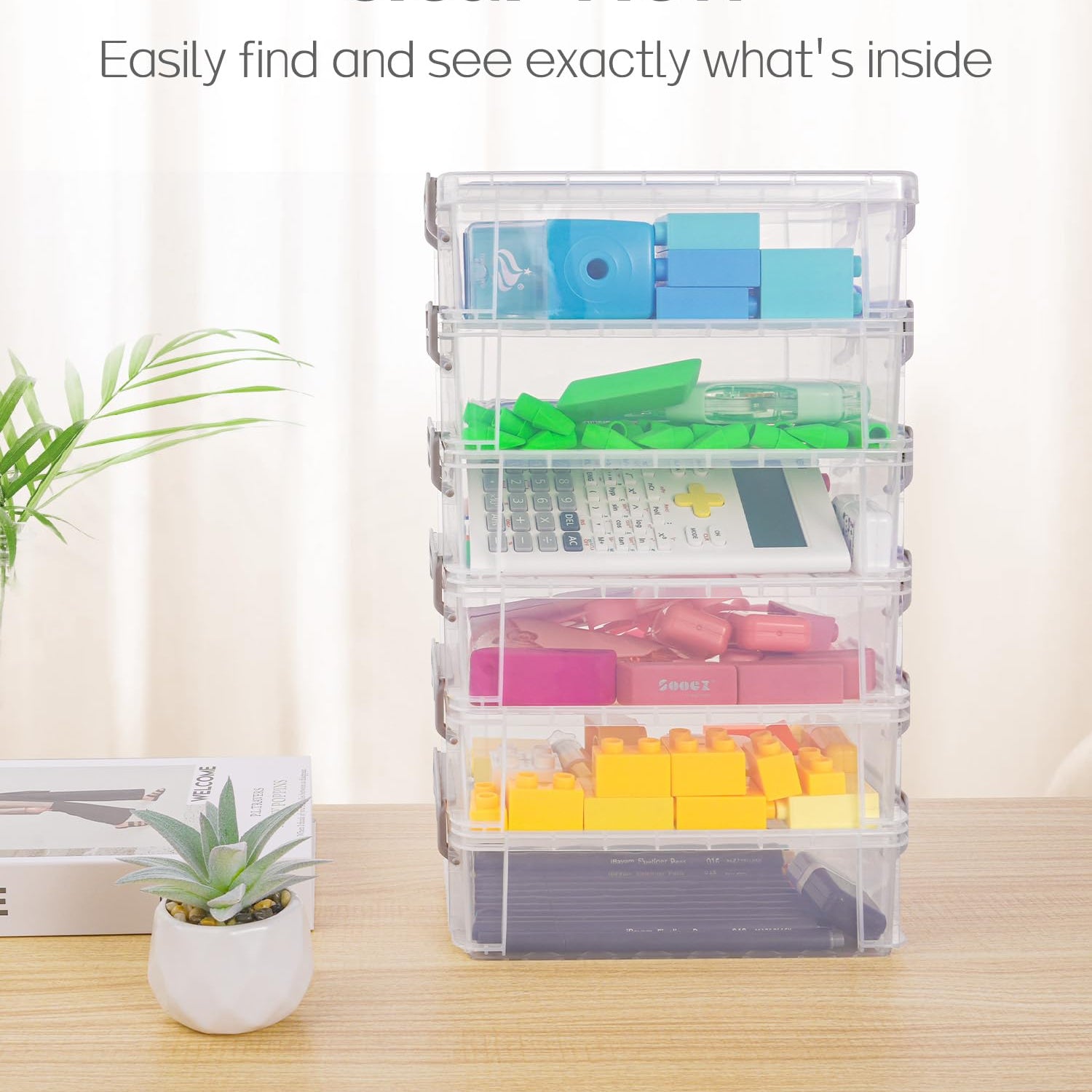 - 6 Pack Pencil Box: Pack of 6 meets your daily needs! Clear view, large capacity, 6 stacked together to save space, can be categorized to organize a variety of small objects. It is a convenient helper for life!