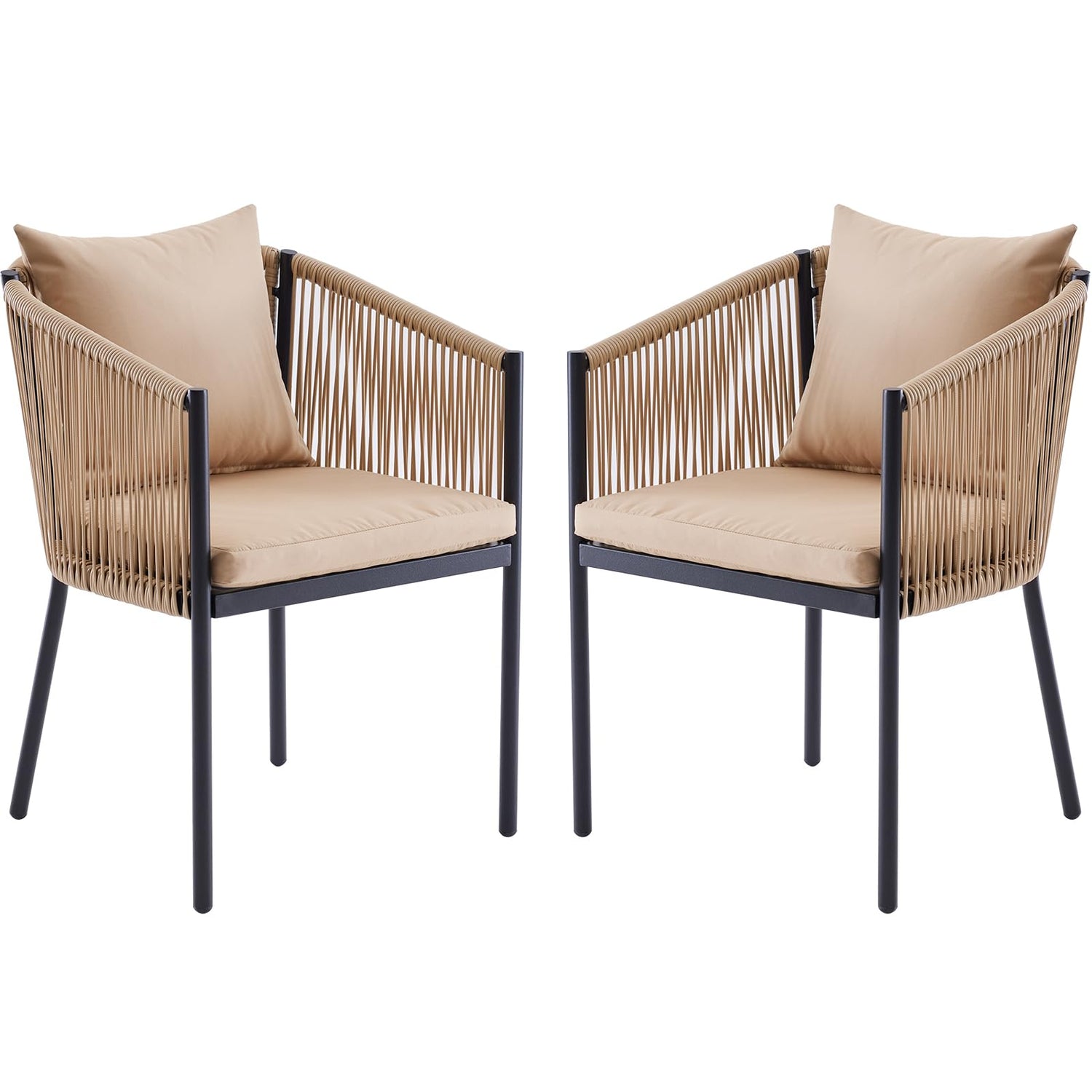 Soohow Outdoor Furniture Set for 2, Outdoor Dining Set Patio Chairs 2 Piece, Rattan Wicker Patio Furniture Chairs with Cushions for Garden, Deck, Backyard, Poolside