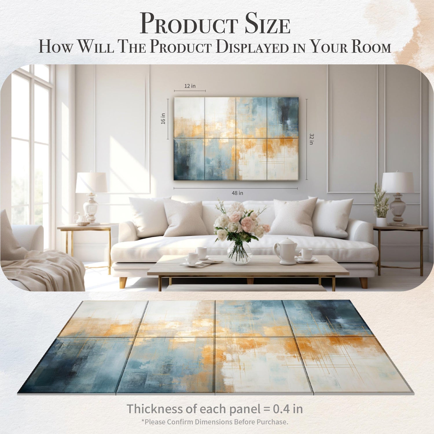 Soon Global 8-Pack Acoustical Wall Panels, 48 X 32 Inches Art Acoustic Panels, Decorative Acoustic Panels, Acoustic Wall Panels, Sound Absorbing Wall Art, Teal Aura