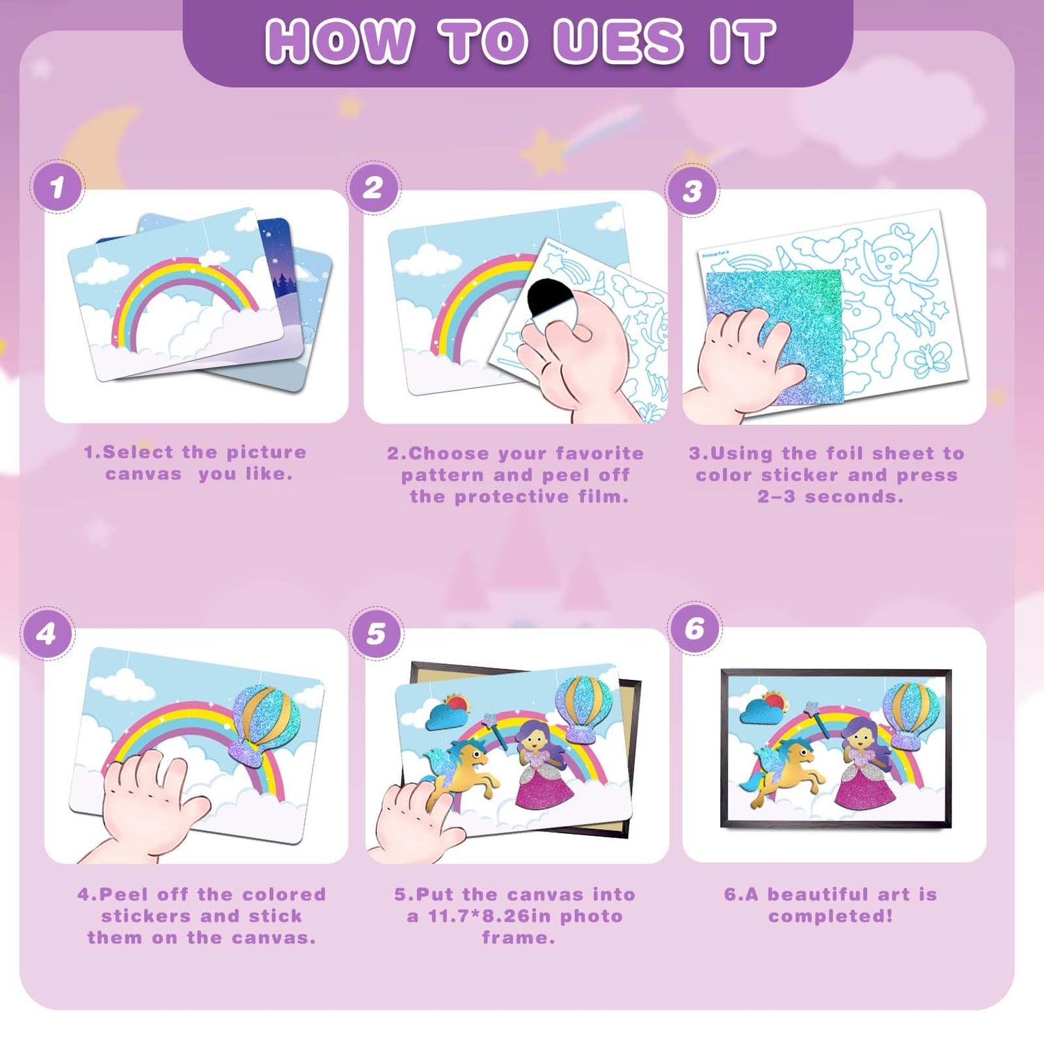 - 【Foil Art & Craft Activity】Let your child's imagination run wild with the amazing, mess free foil arts and crafts activity. They can create beautiful pictures featuring Unicorn, Princess, Cloud, Clothing, Butterfly and more , inspiring hours of creative fun for kids.