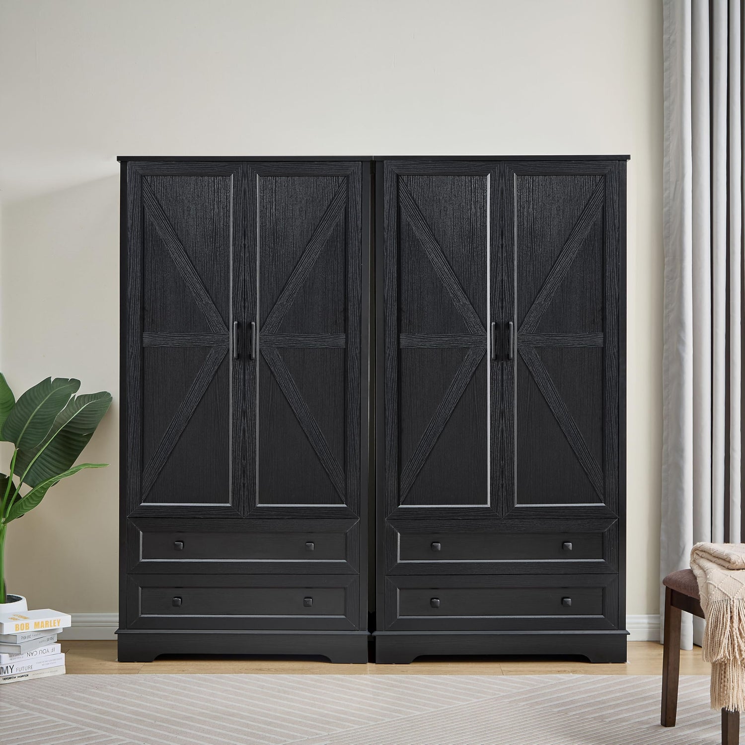 SOOWERY Dresser for Bedroom, 71 Inches Wood Armoire with 2 Drawers and Multiple Storage Cabinets, Farmhouse Dressers & Chests of Drawers for Bedroom, Living Room, Hallway, Black
