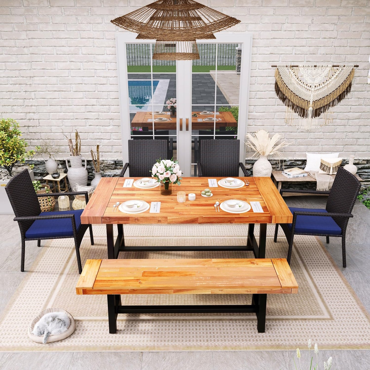 - Well-made Garden Bench: Oil finished seat-top can better showcase the natural beauty of Acacia wood and it also has a good water repellent effect.Black painted wood legs are classic and elegant.The wooden bench is lightweight and easy to move and store